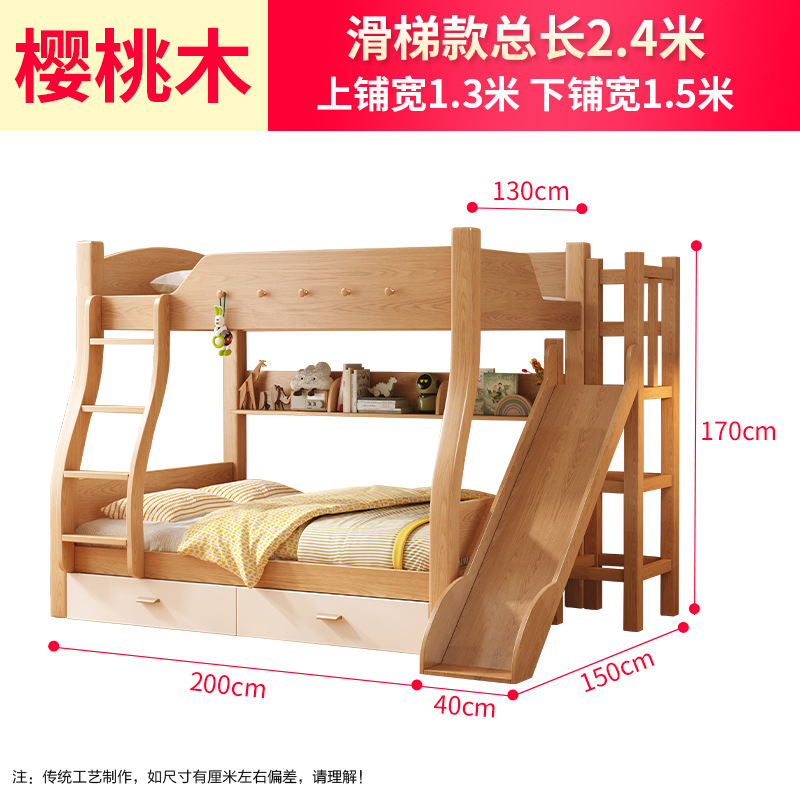 • 이중 사다리 슬라이드 모델 - 상부 침대 너비 1.3m - 하부 침대 너비 1.5m
