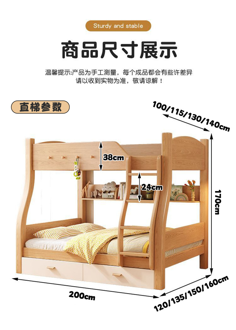 • 직선사 슬라이드 모델 - 상부 침대 너비 1.4m - 하부 침대 너비 1.6m