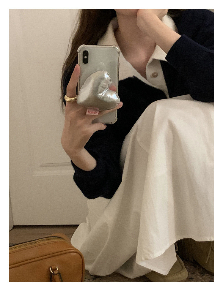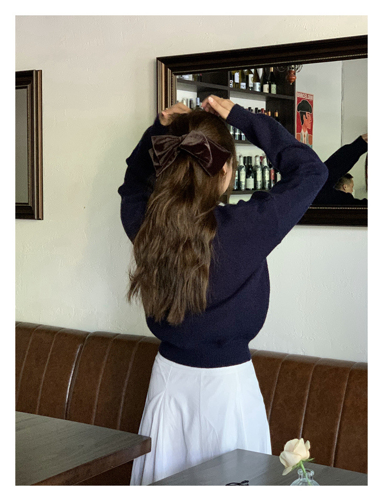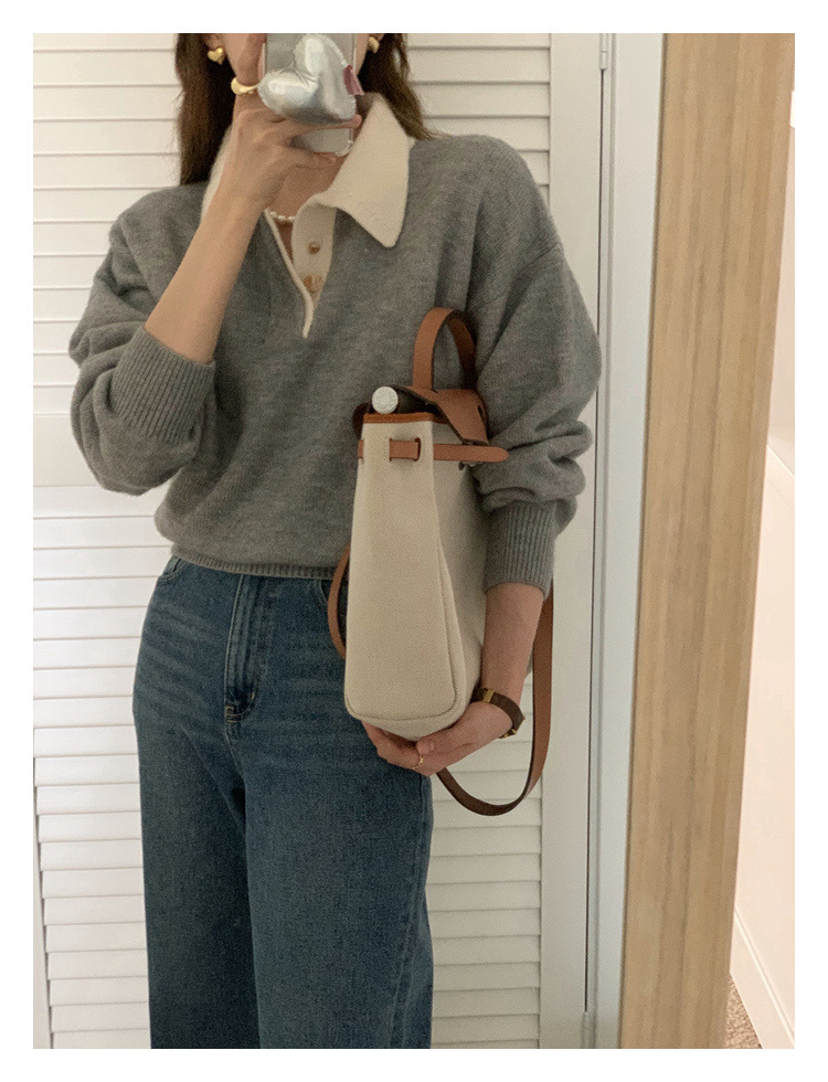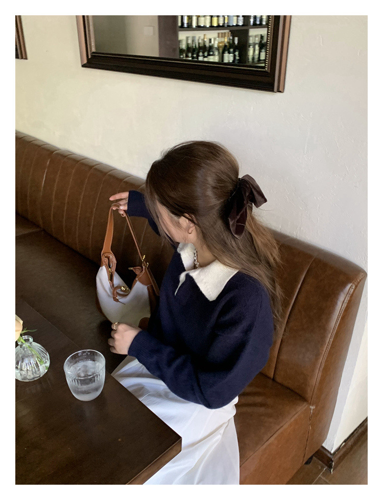 프랑스 레트로 폴로 칼라 니트 베이스 셔츠 여성의 가을과 겨울 느슨한 게으른 스타일 내부 짧은 우아한 긴팔 탑