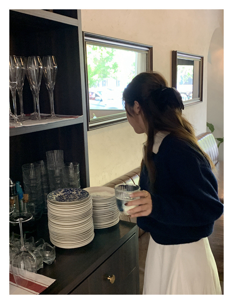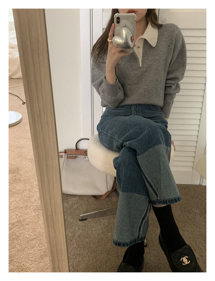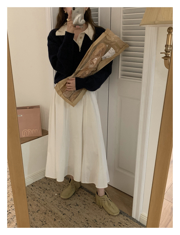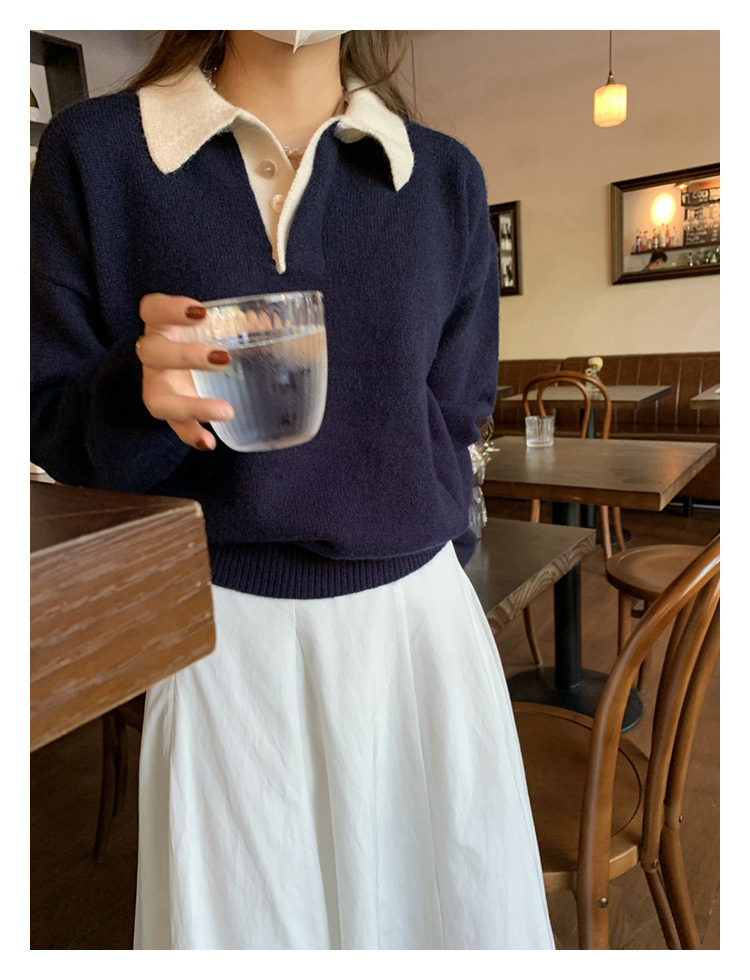 프랑스 레트로 폴로 칼라 니트 베이스 셔츠 여성의 가을과 겨울 느슨한 게으른 스타일 내부 짧은 우아한 긴팔 탑스토어 가기