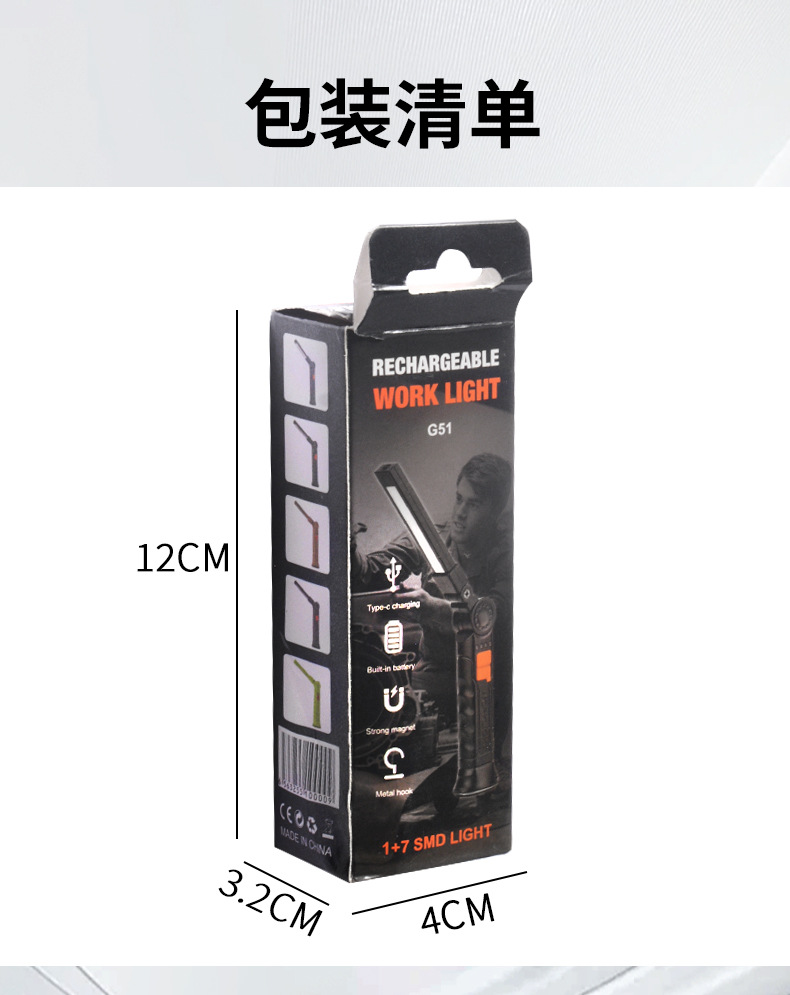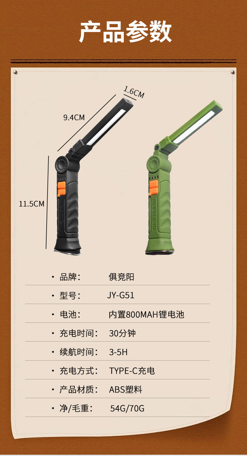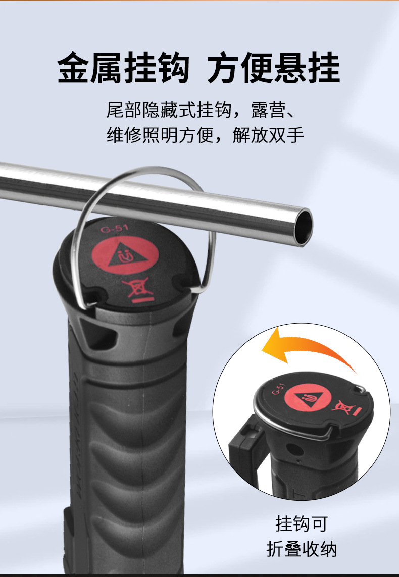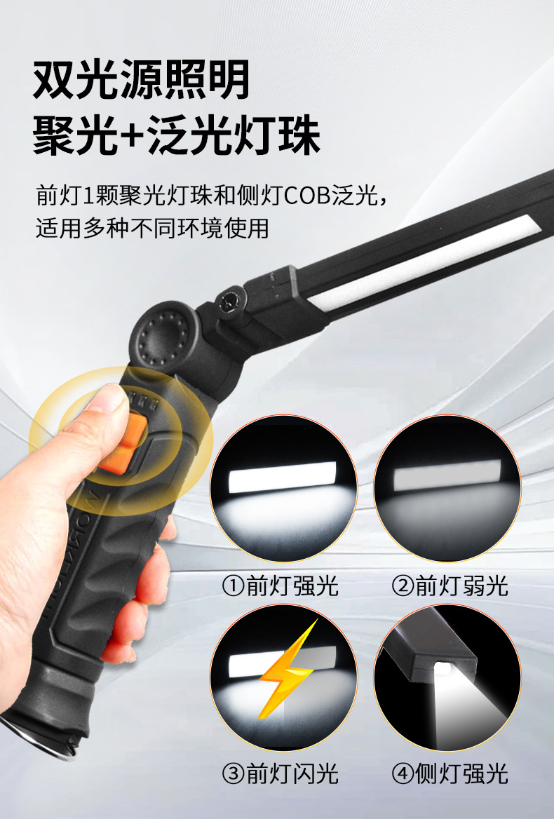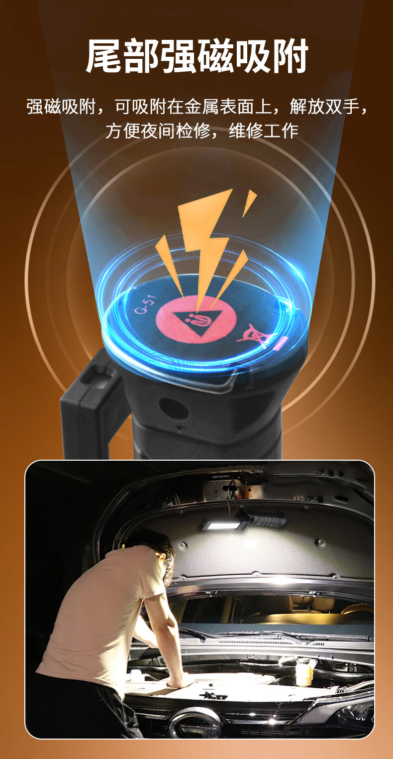 다기능 자기 매력 이중 광원 자동 수리 작업 램프 필드 캠핑 모험 실속 정전 비상 충전식 손전등