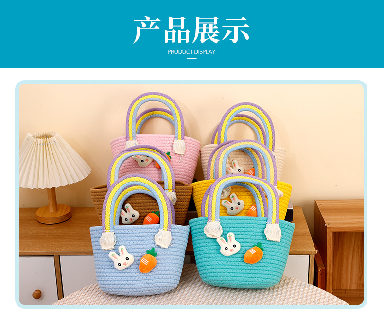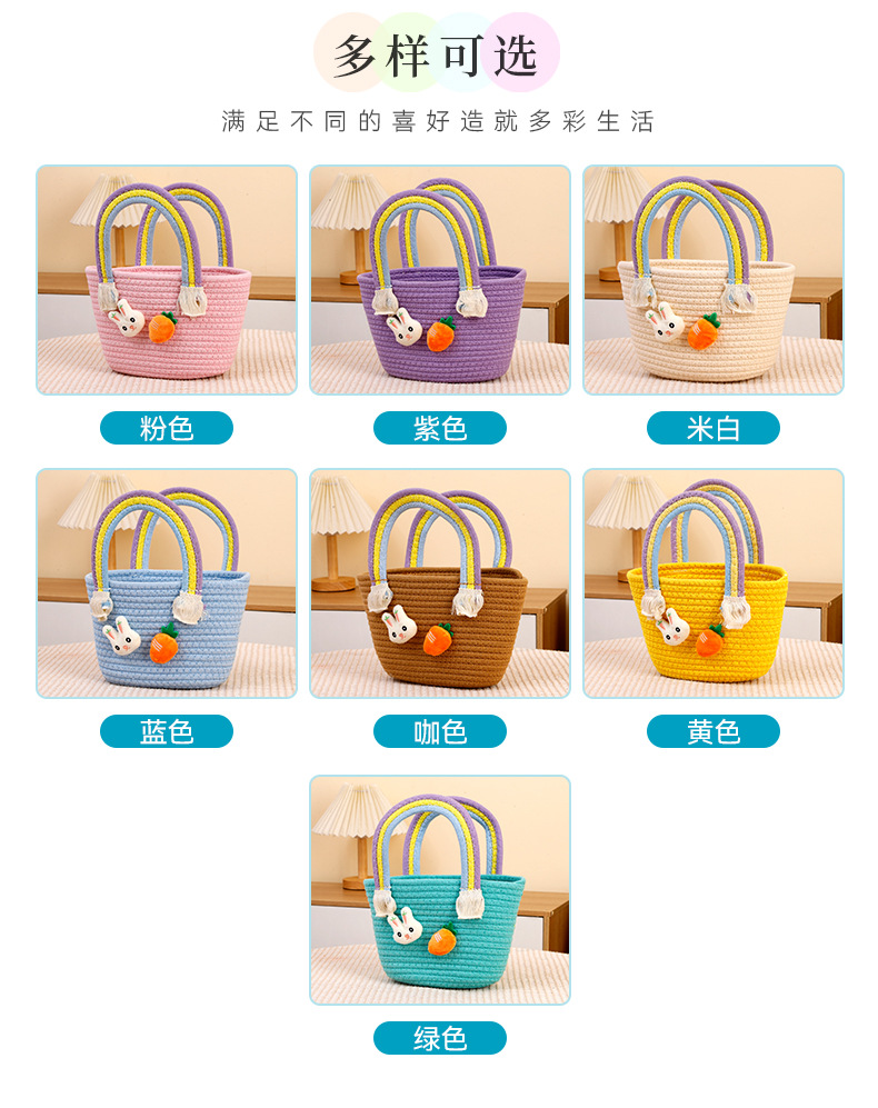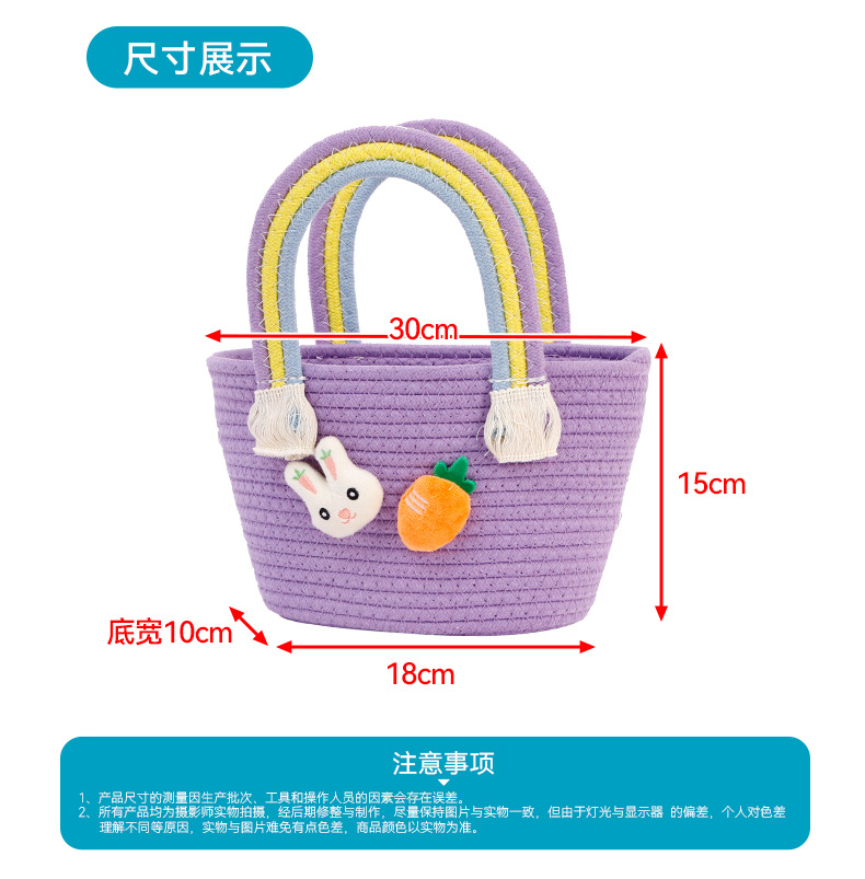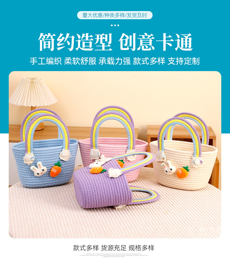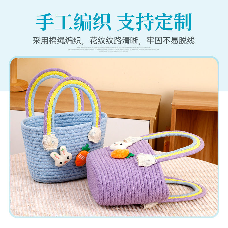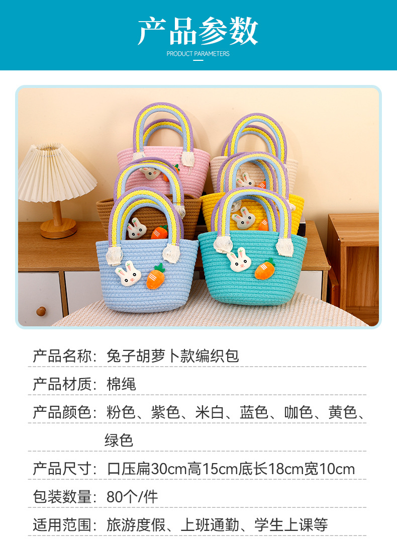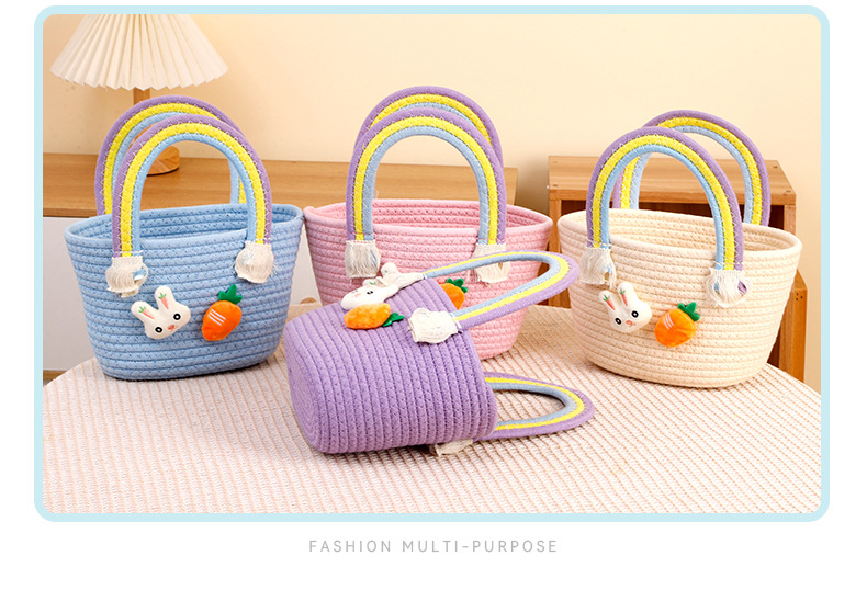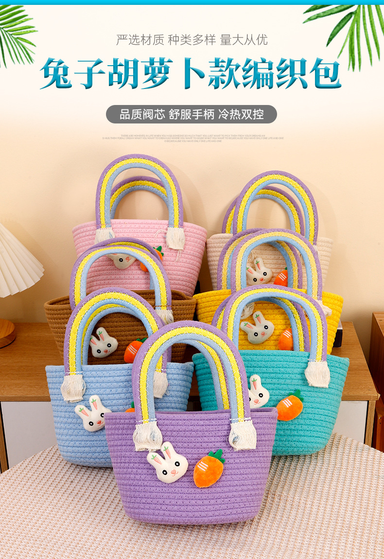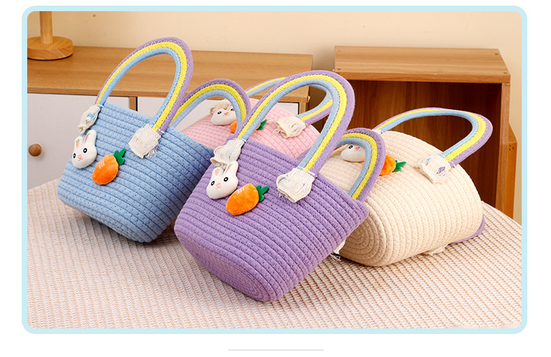 토끼 당근 디자인 뜨개질 가방 수제 바구니 만화 핸드백 면사 가방 손잡이