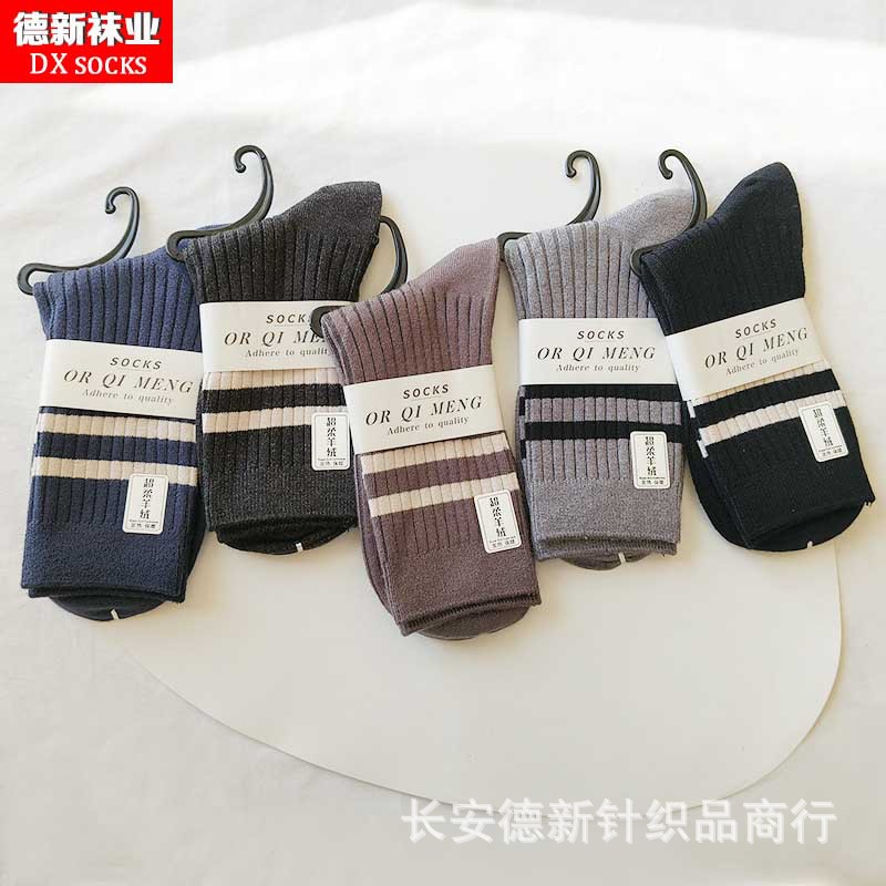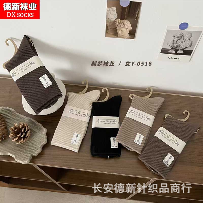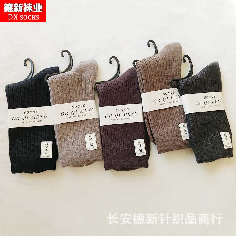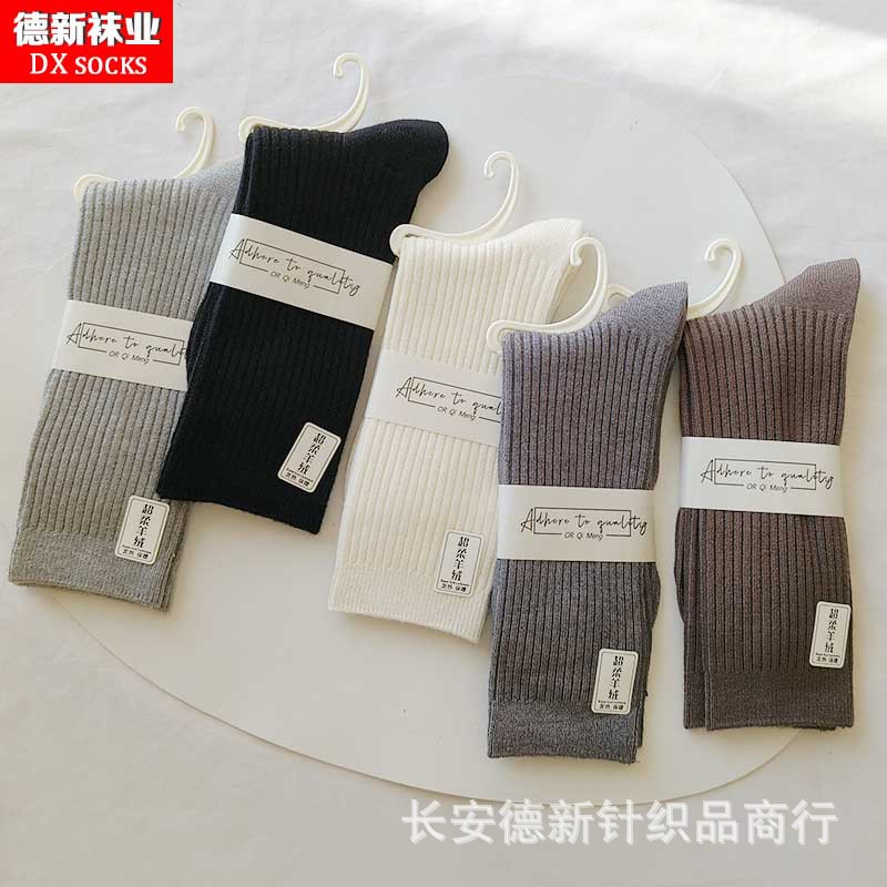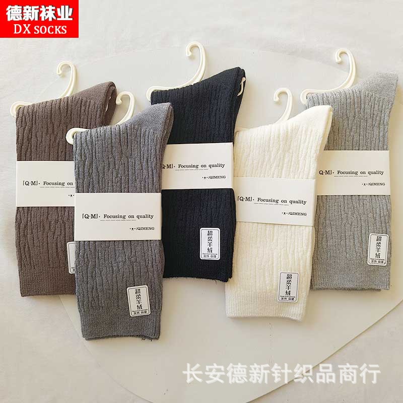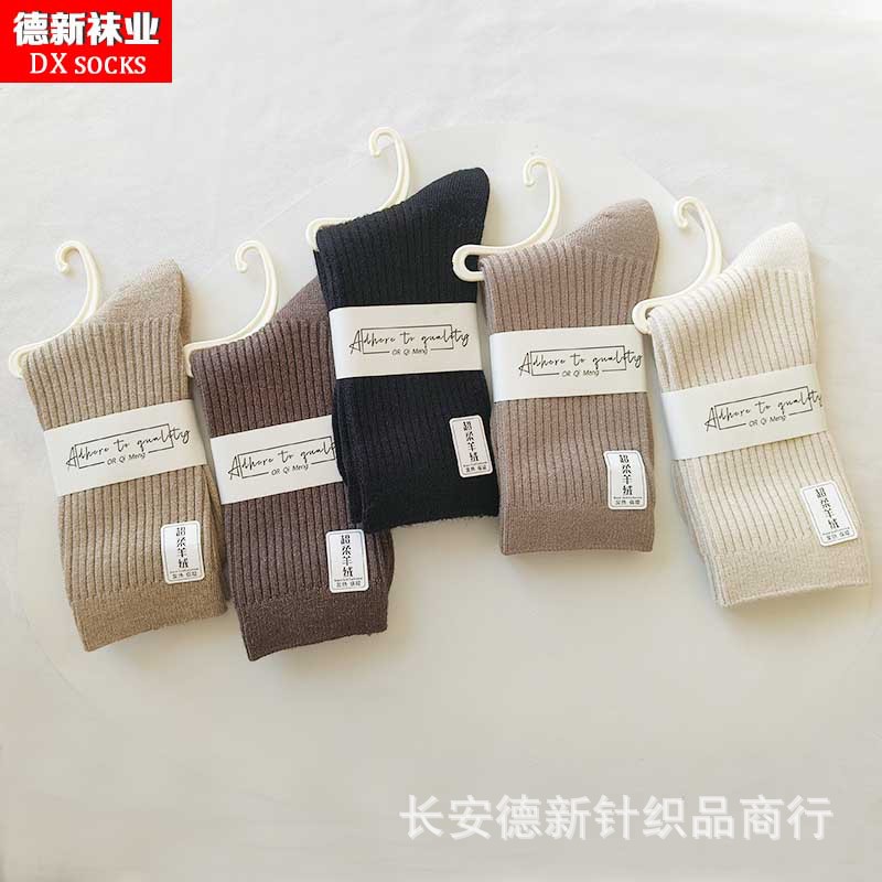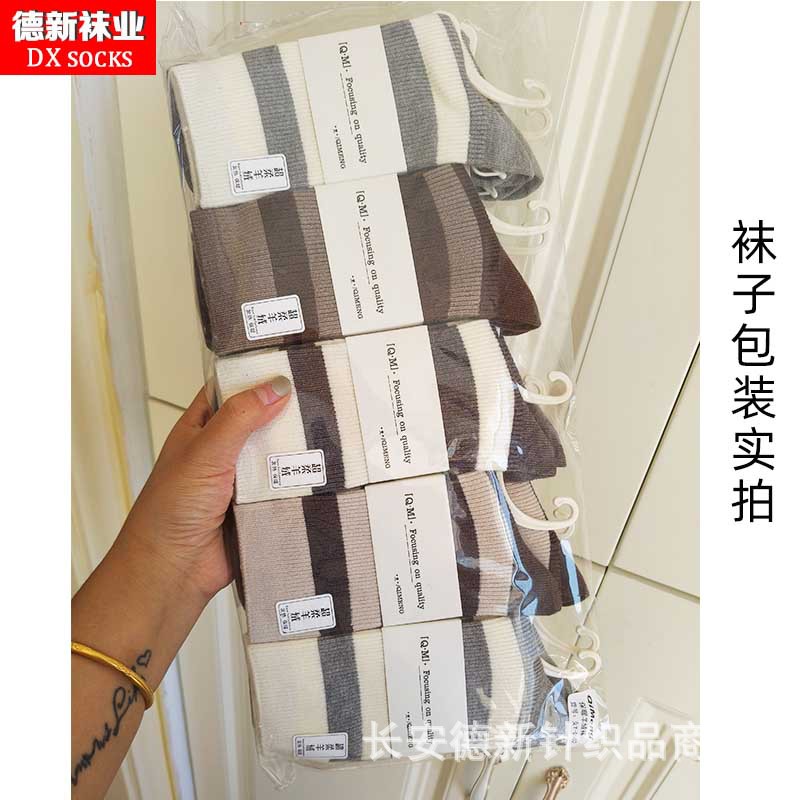 양말 여성 가을과 겨울 새로운 두꺼운 캐시미어 하이 허리 양말 일본 여성 줄무늬 양말 따뜻한 면화 양말 도매