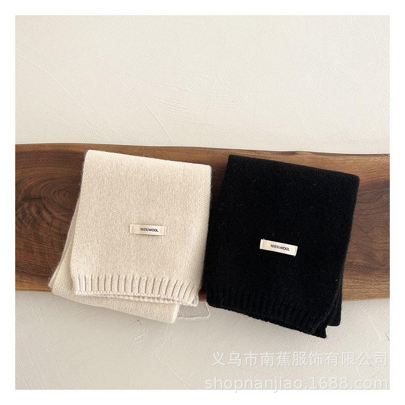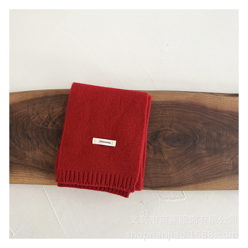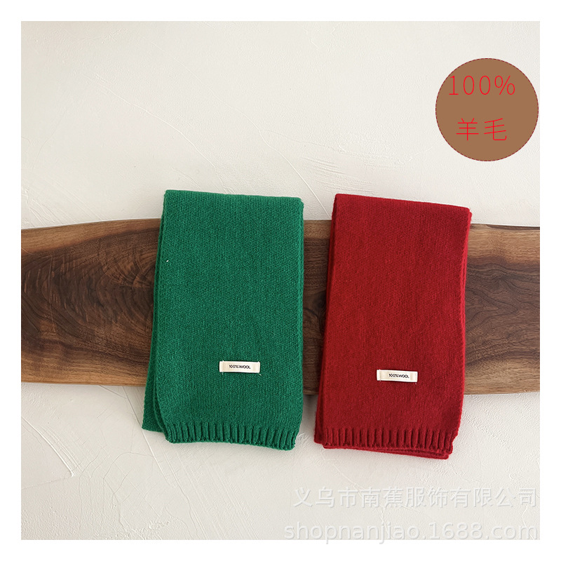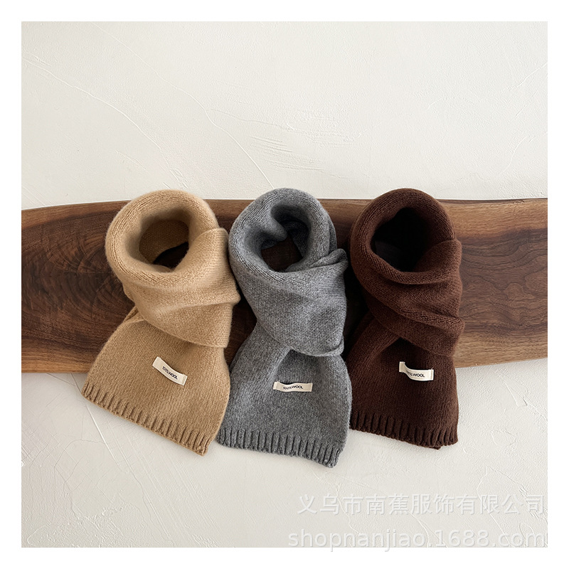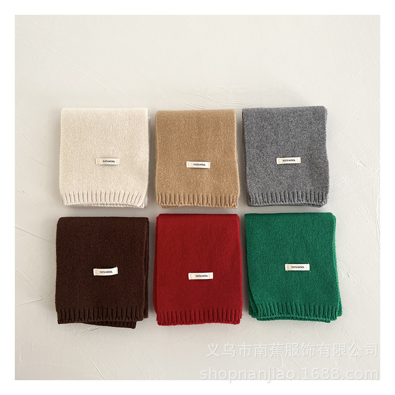 어린이 스카프 겨울 순수 양모 따뜻한 인즈 한국 스타일 간단한 단색 소년과 소녀의 분위기 스카프 착용
