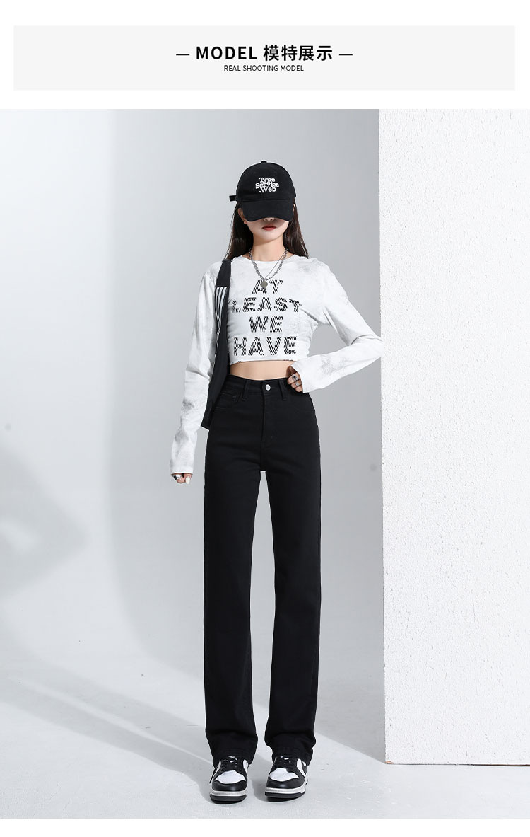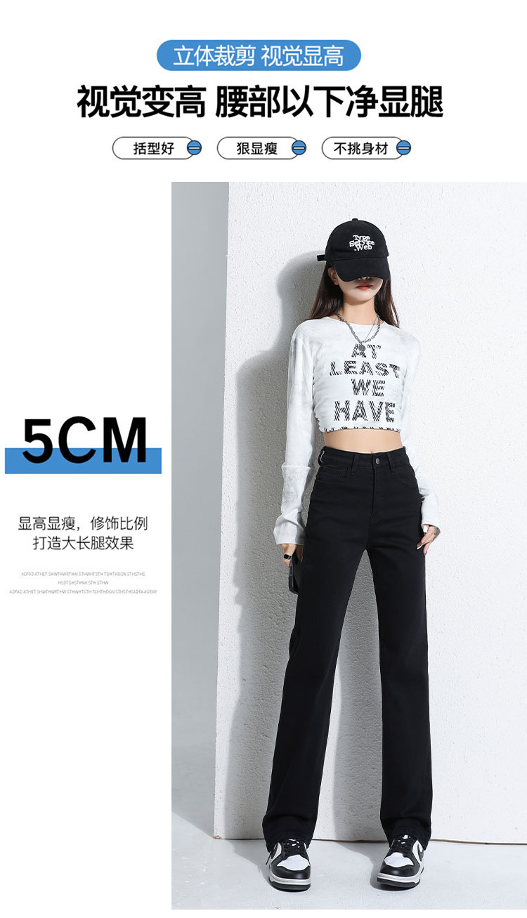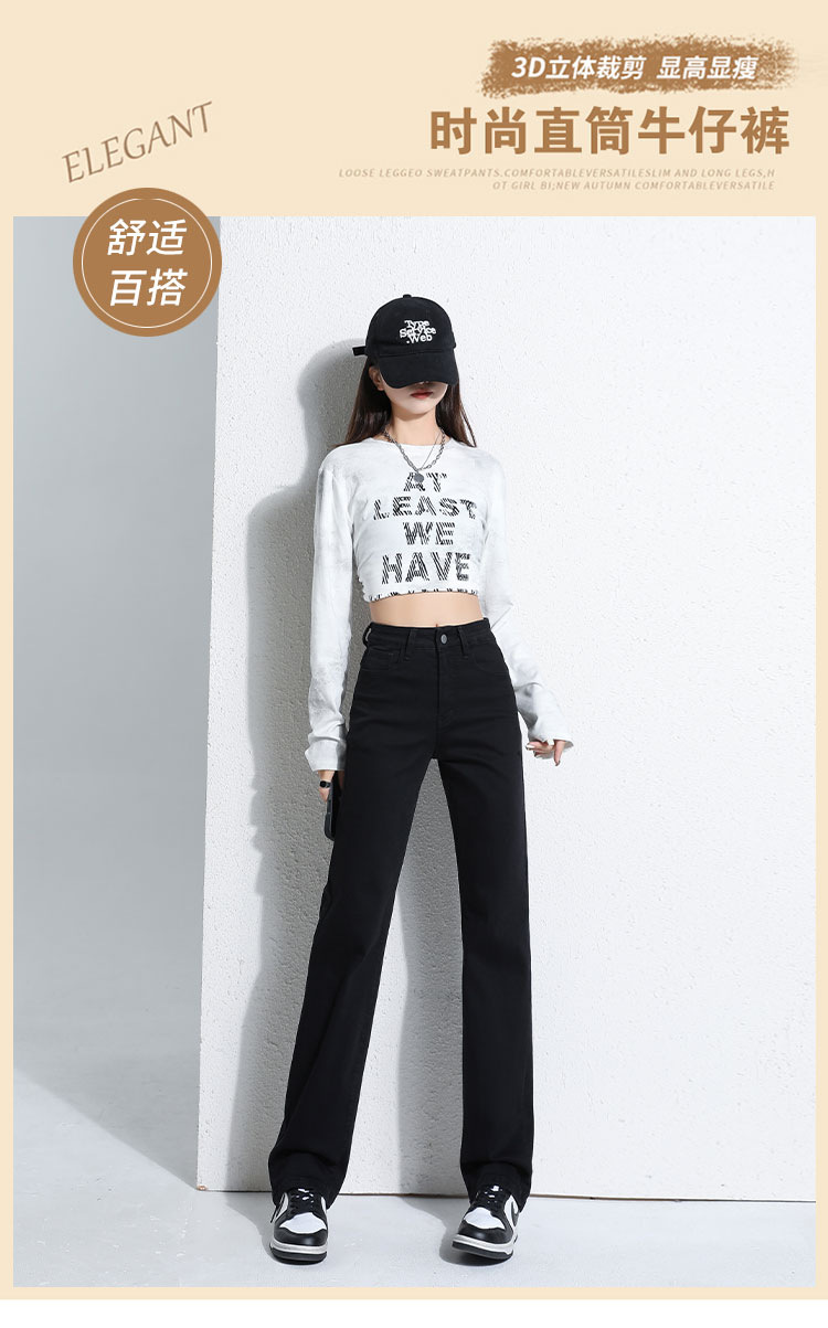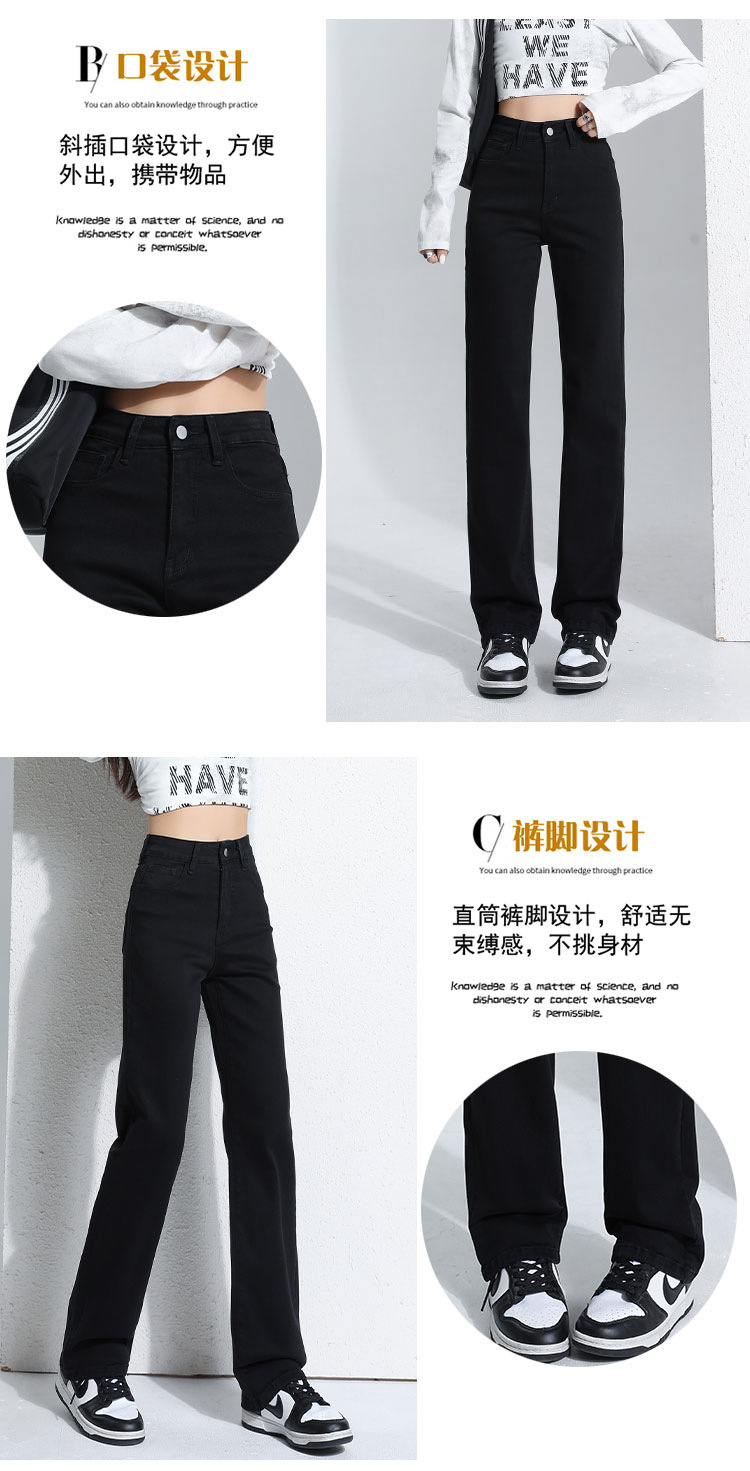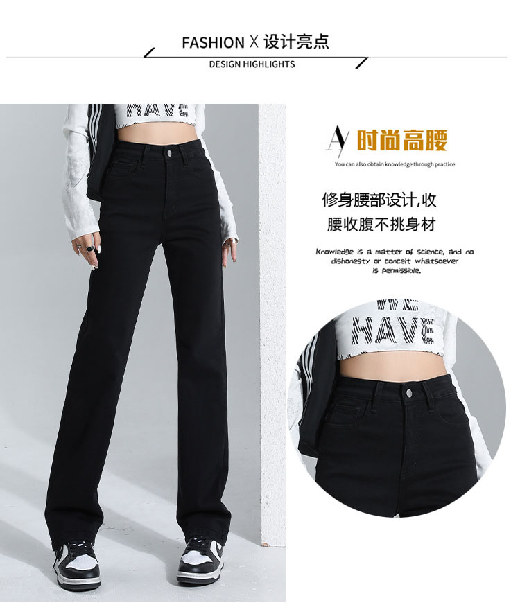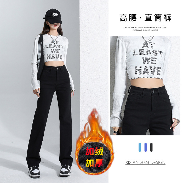 2024 가을과 겨울 검은 기모 스트레칭 청바지 여성의 높은 허리 좁은 슬림 핏 느슨한 스트레이트 바지 얇은 벨벳 바지스토어 가기