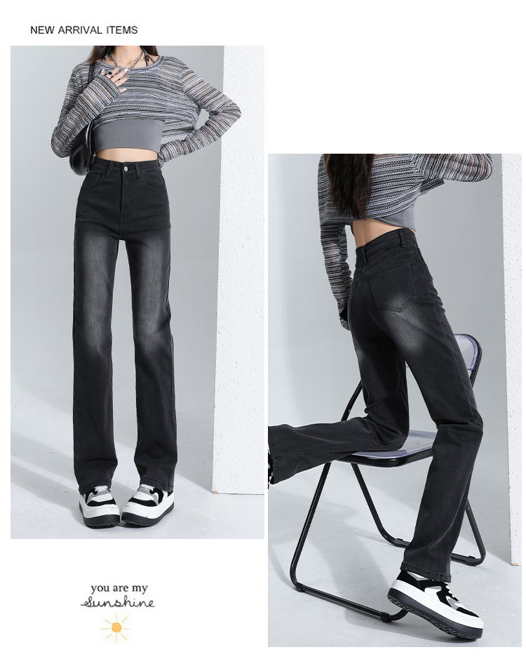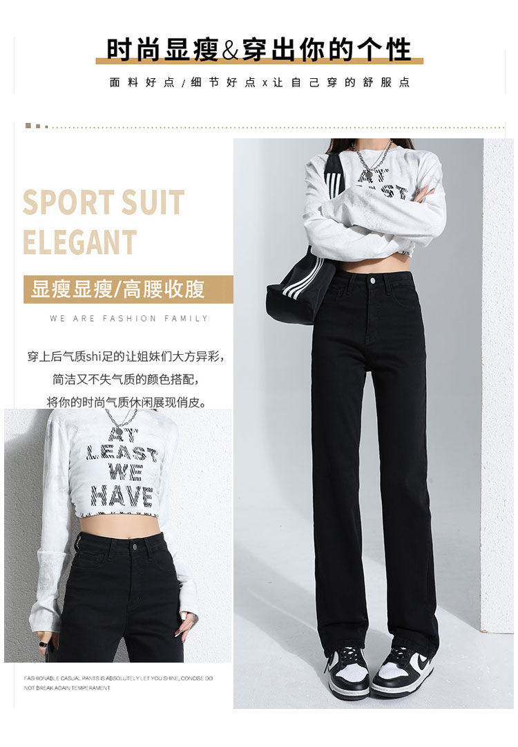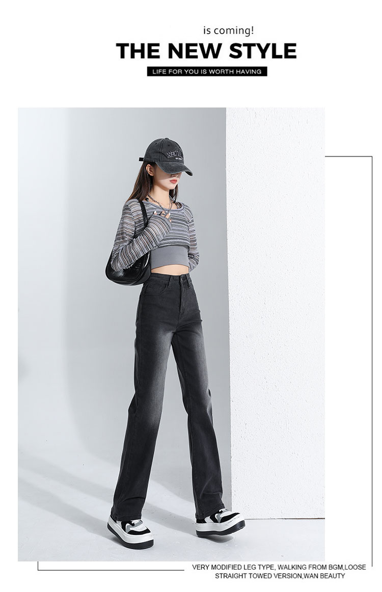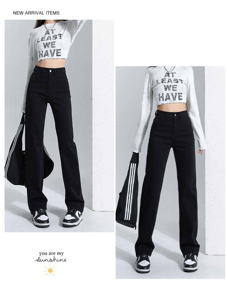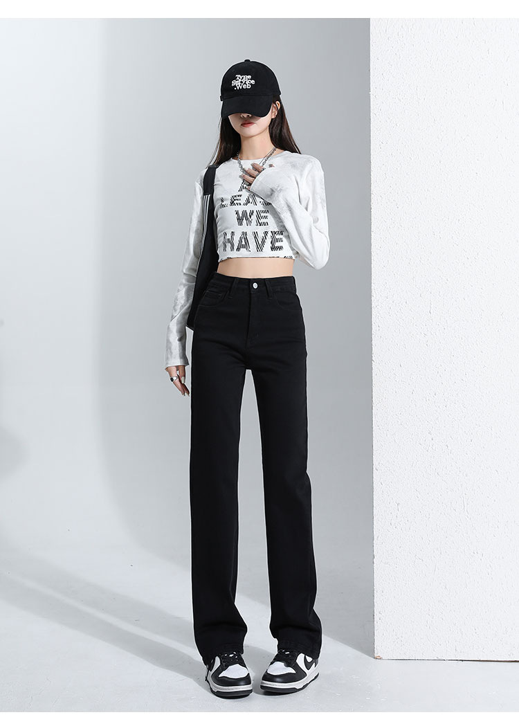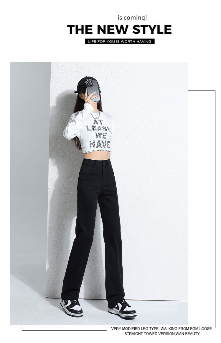2024 가을과 겨울 검은 기모 스트레칭 청바지 여성의 높은 허리 좁은 슬림 핏 느슨한 스트레이트 바지 얇은 벨벳 바지스토어 가기