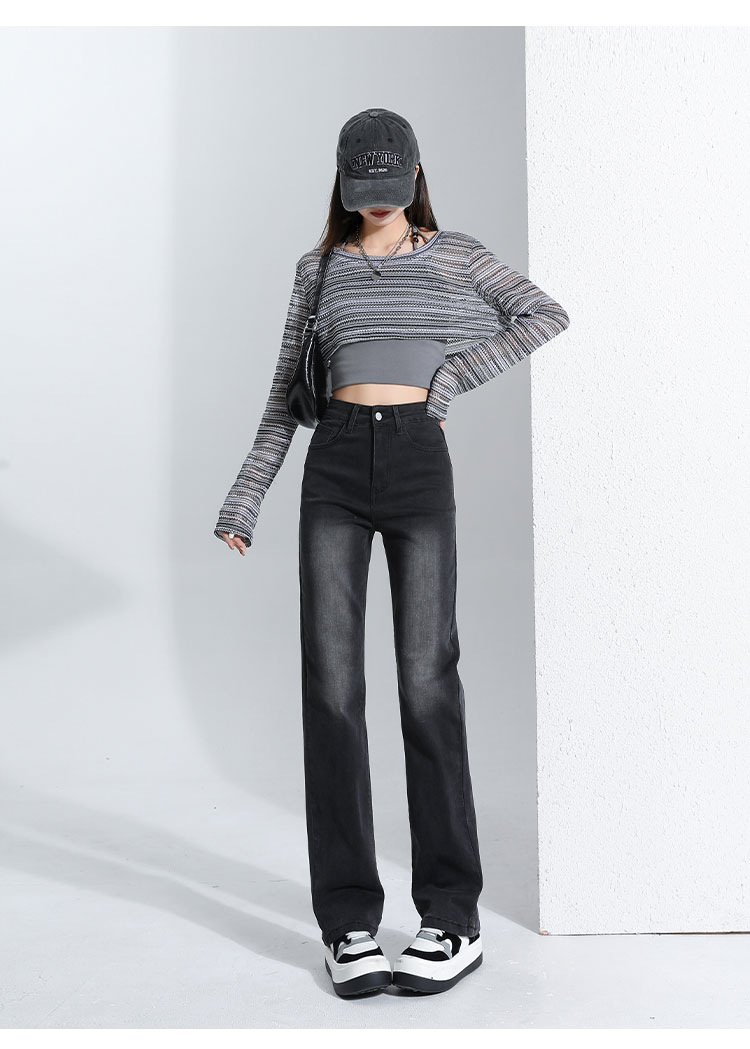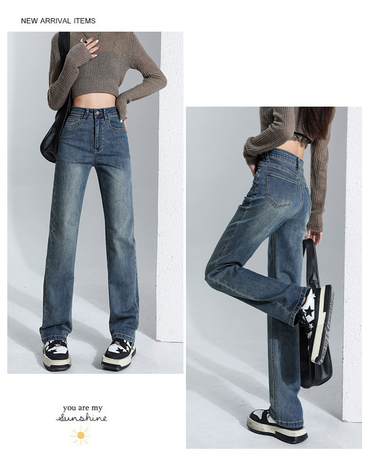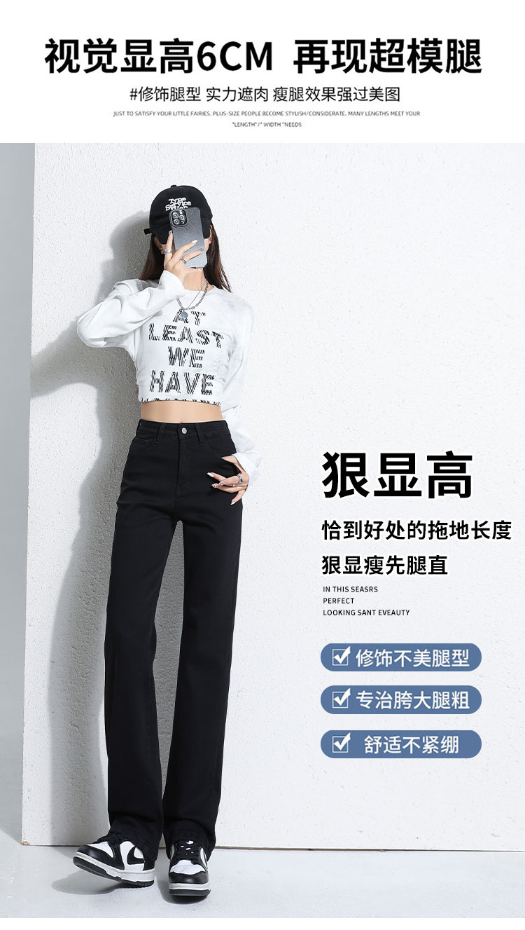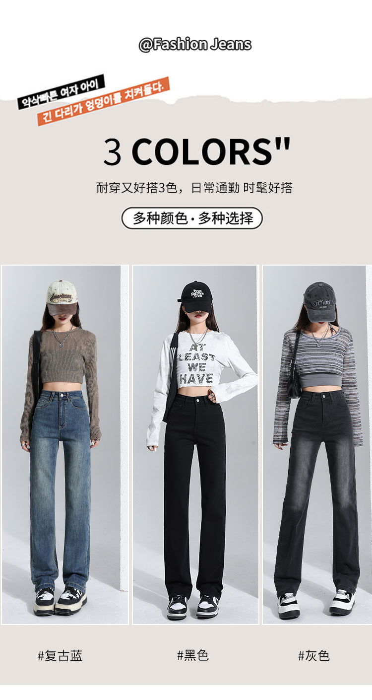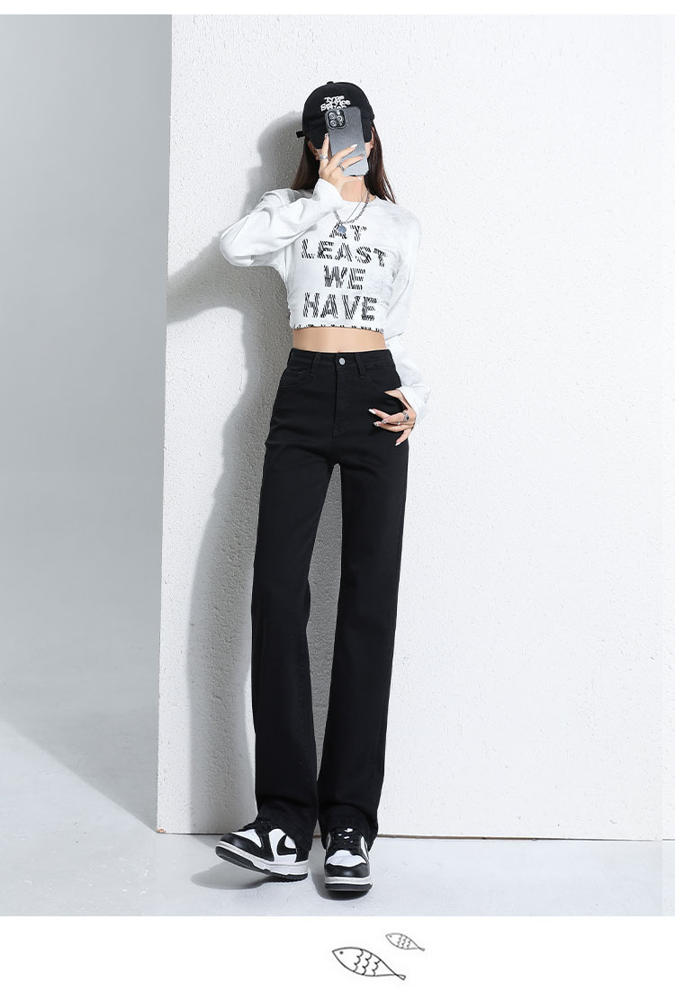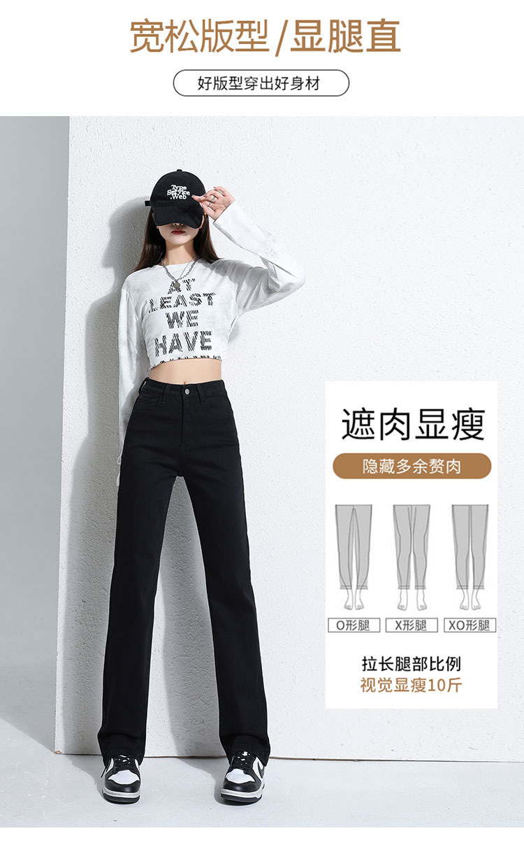 2024 가을과 겨울 검은 기모 스트레칭 청바지 여성의 높은 허리 좁은 슬림 핏 느슨한 스트레이트 바지 얇은 벨벳 바지스토어 가기