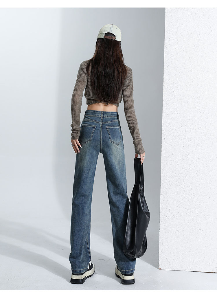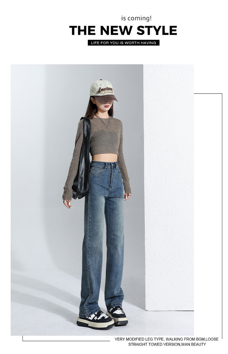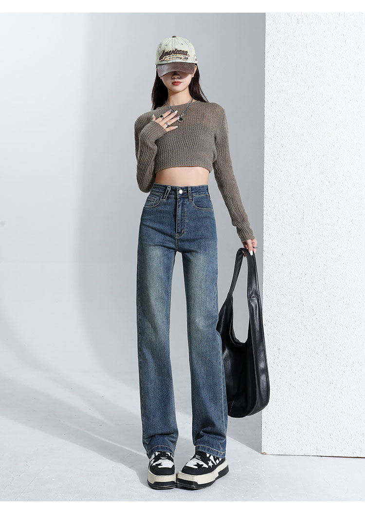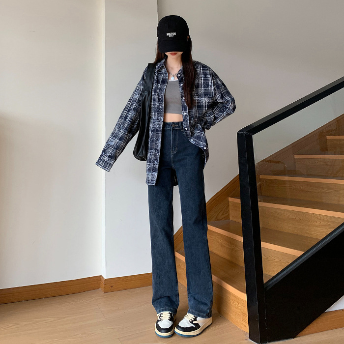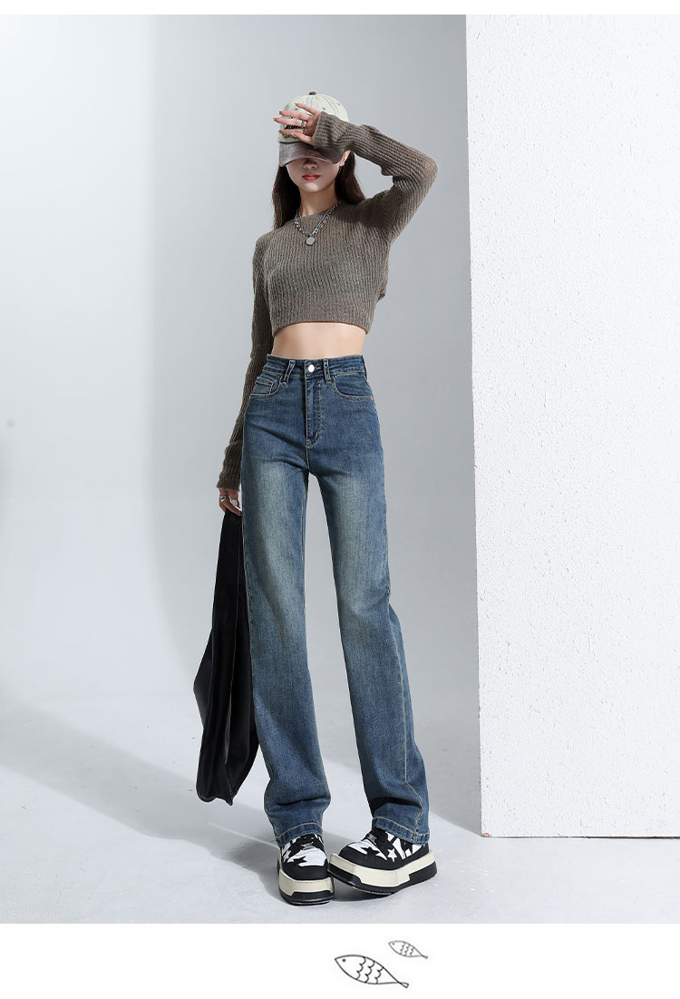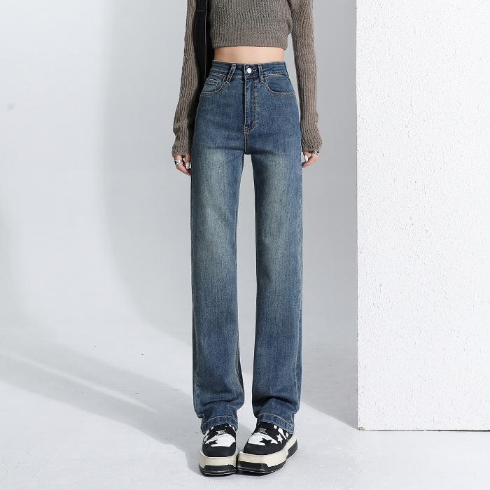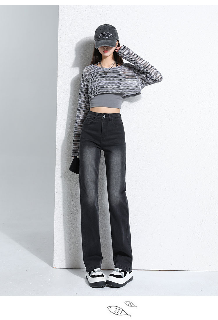 2024 가을과 겨울 검은 기모 스트레칭 청바지 여성의 높은 허리 좁은 슬림 핏 느슨한 스트레이트 바지 얇은 벨벳 바지스토어 가기