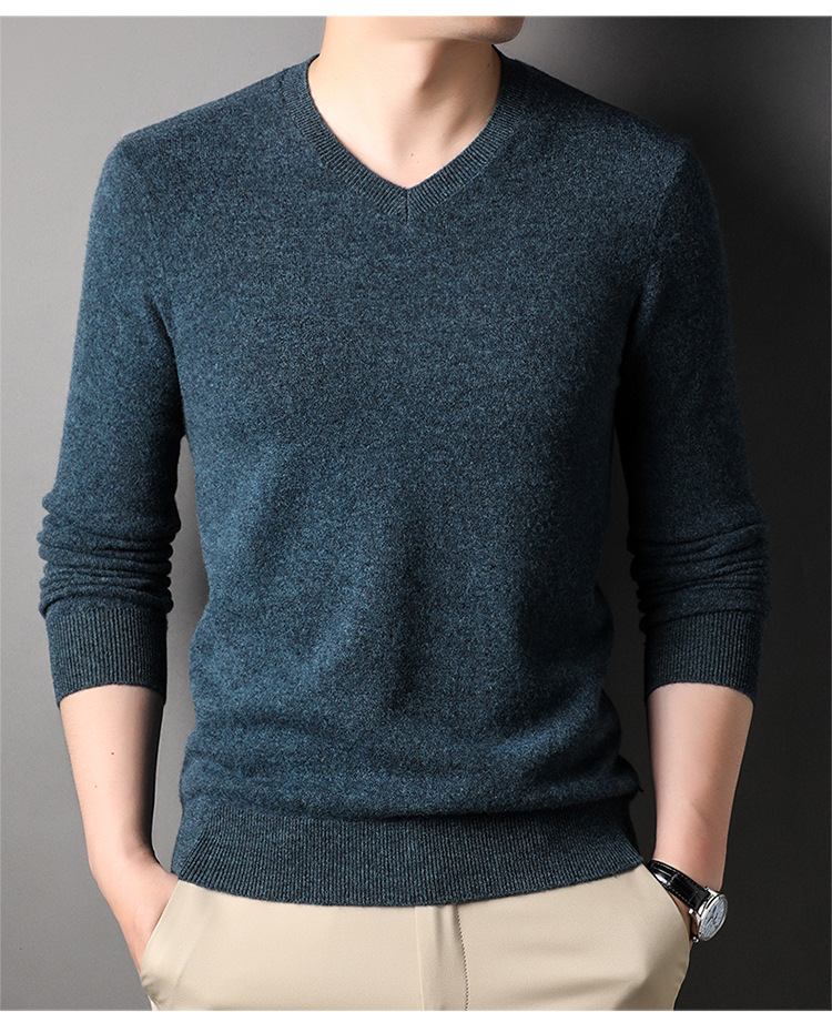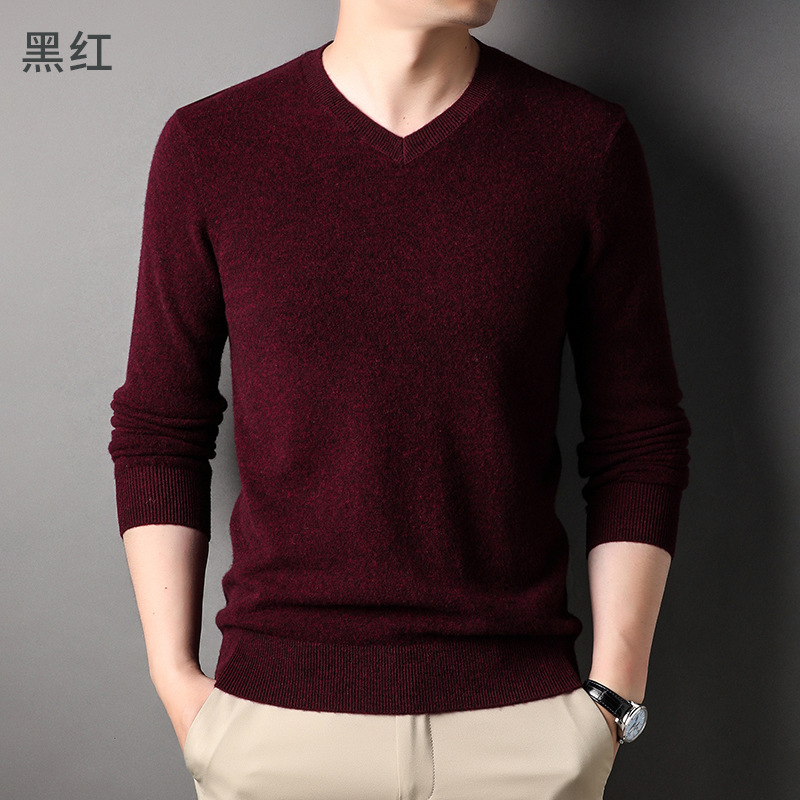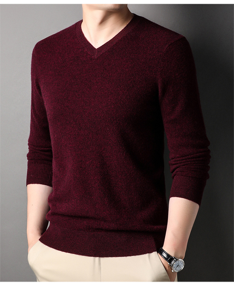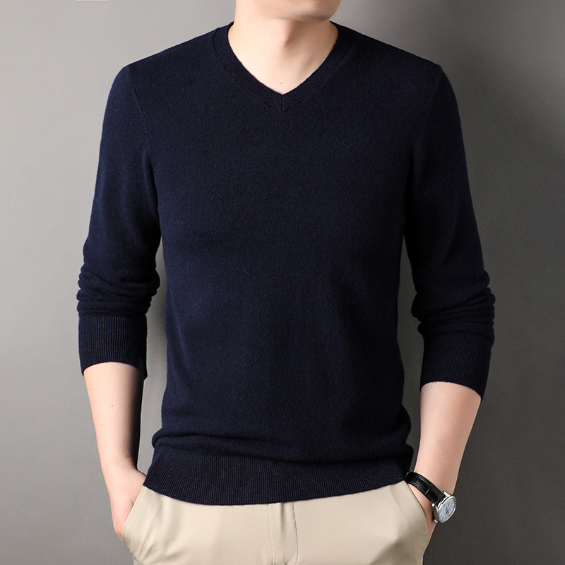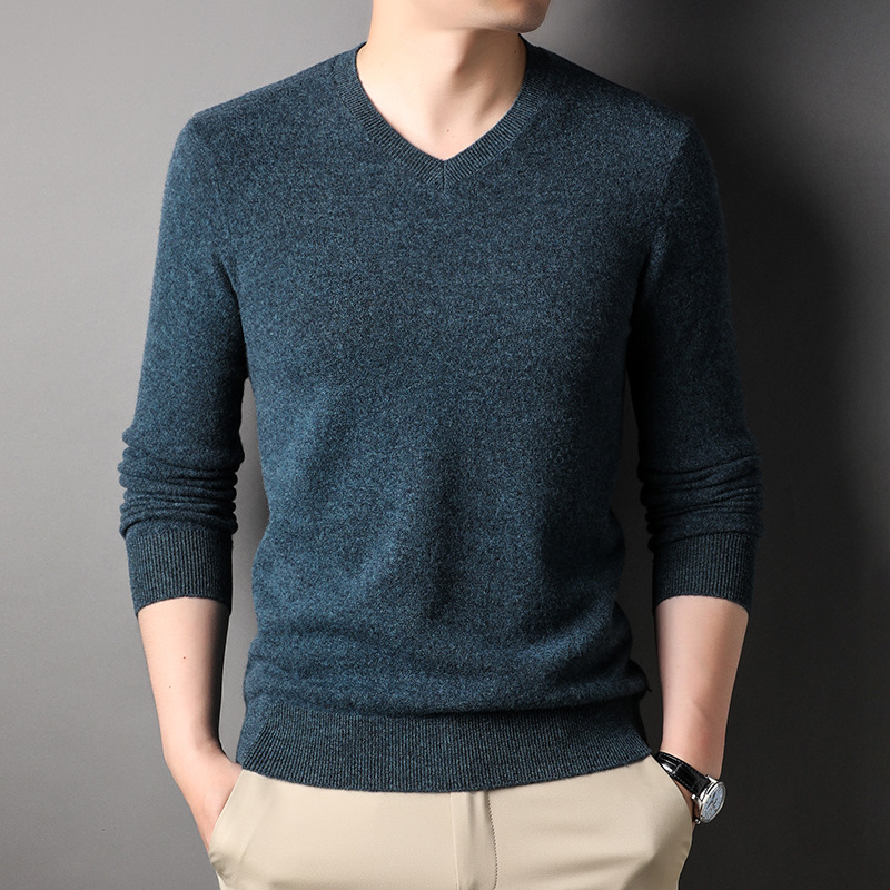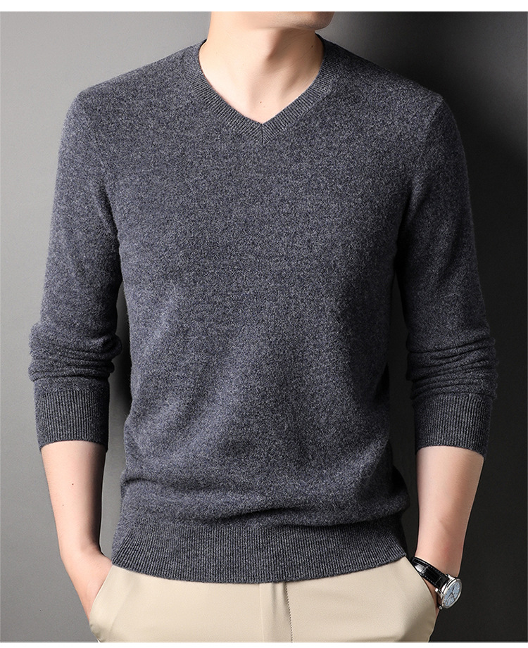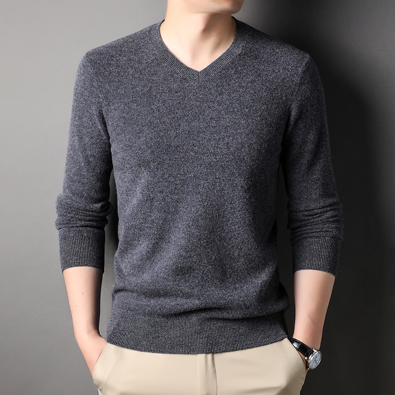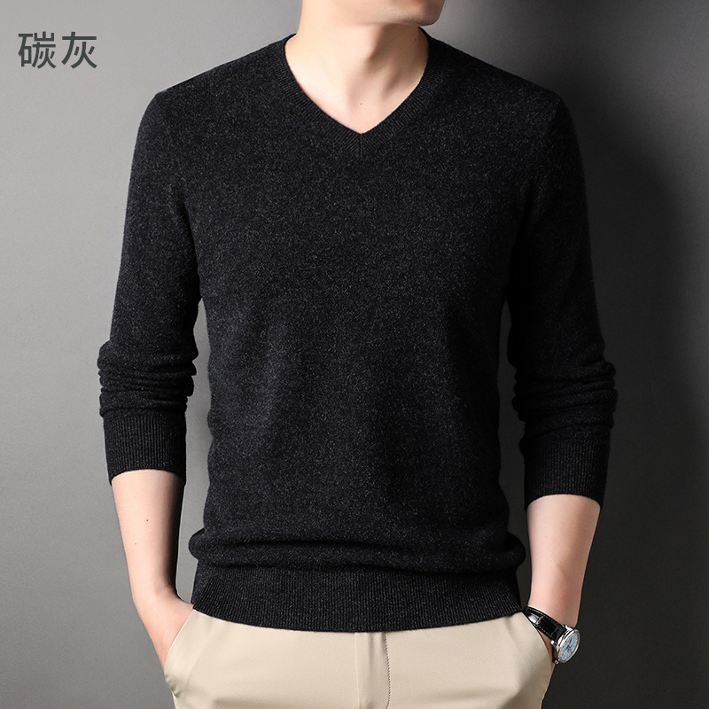 울 스웨터 브이넥 가을 겨울 100% 순모 남성용 단색 따뜻한 카디건 니트 캐시미어 상의스토어 가기