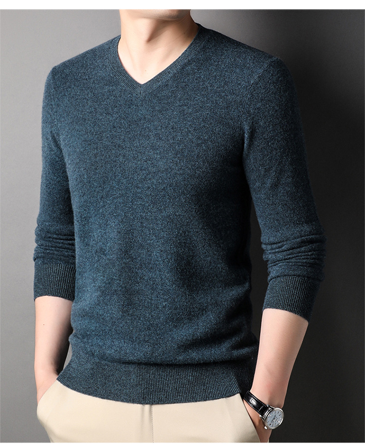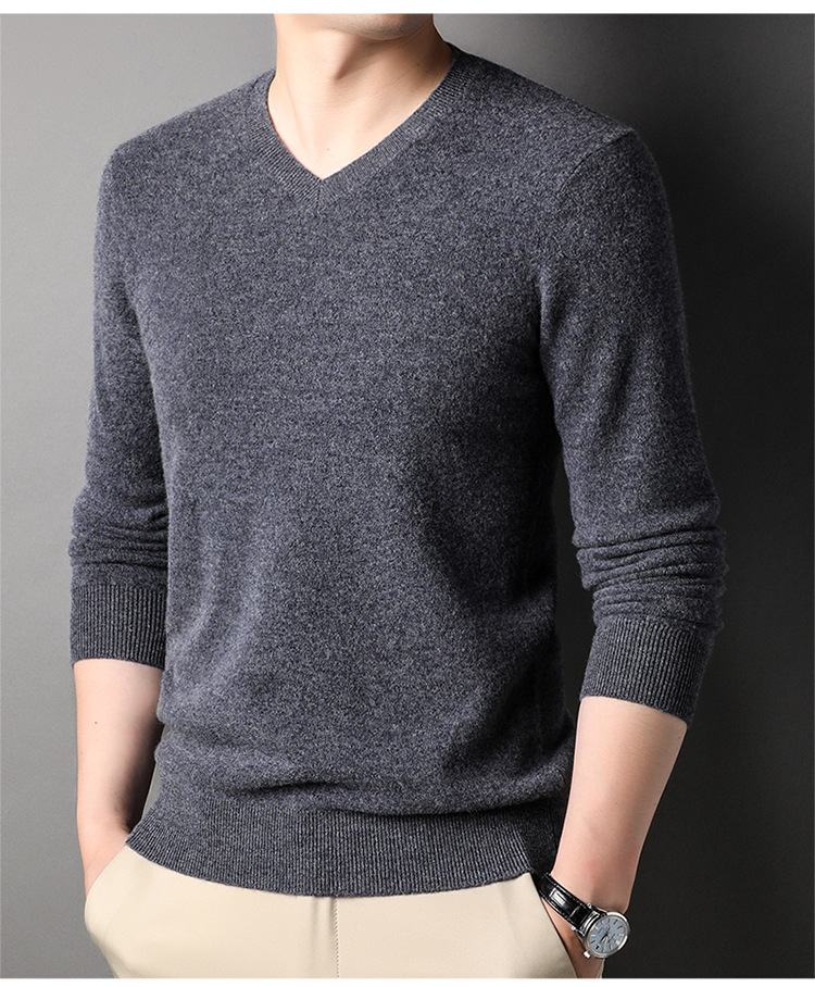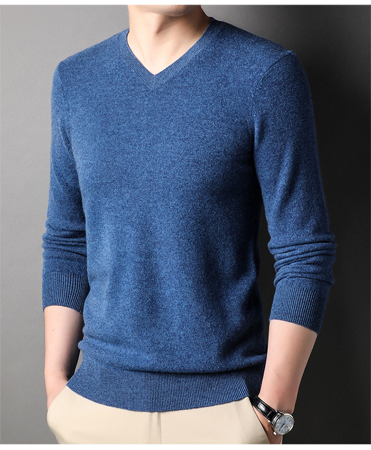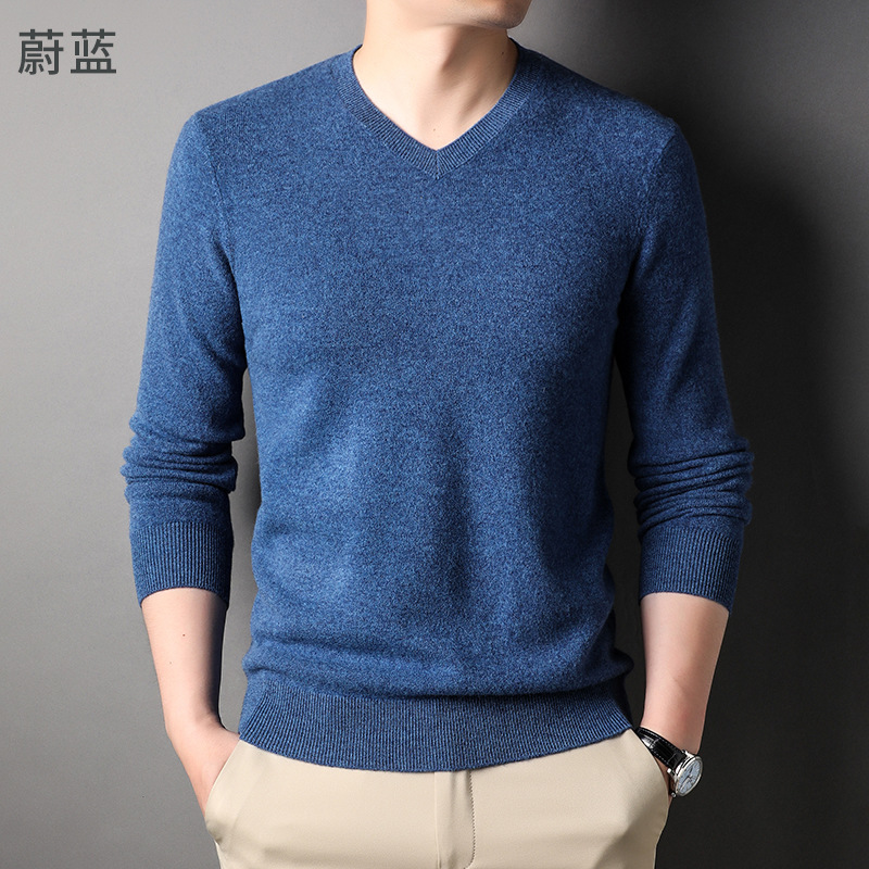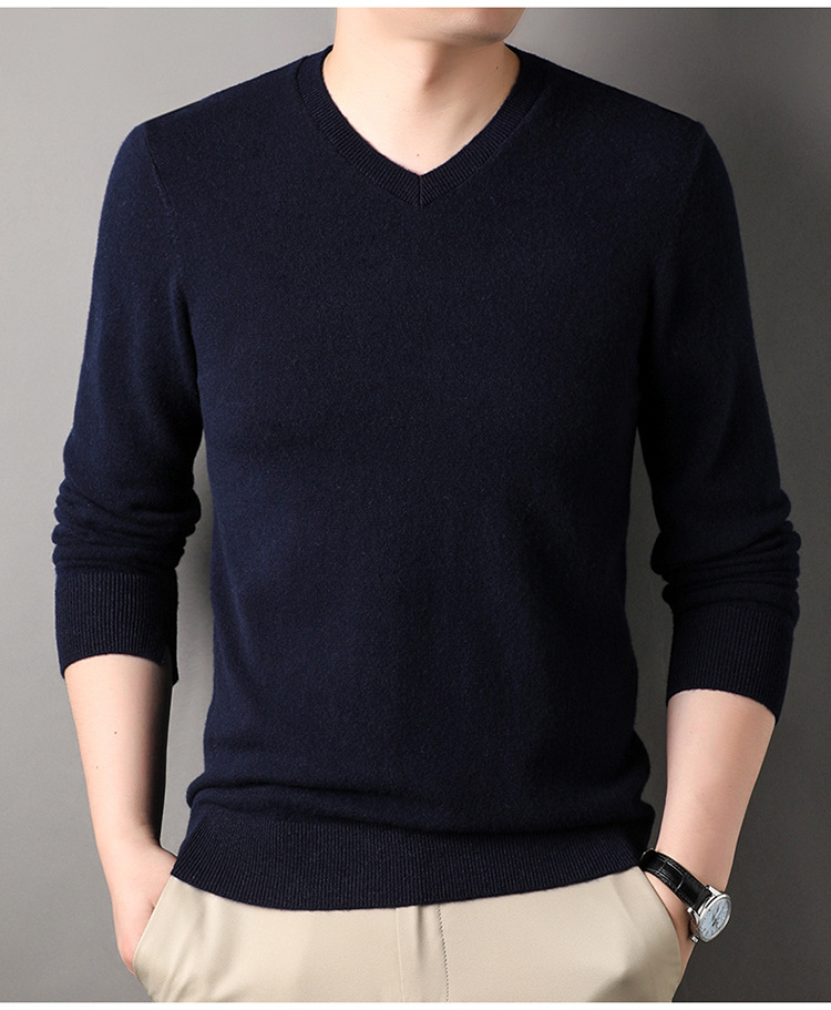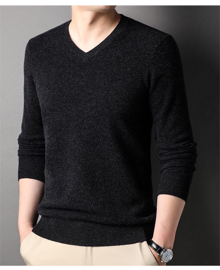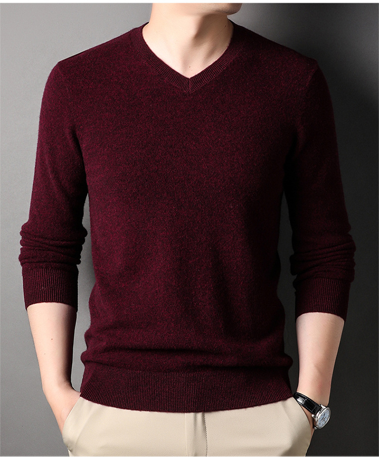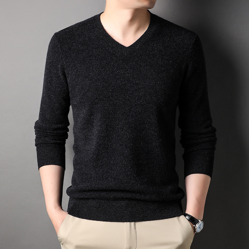 울 스웨터 브이넥 가을 겨울 100% 순모 남성용 단색 따뜻한 카디건 니트 캐시미어 상의스토어 가기