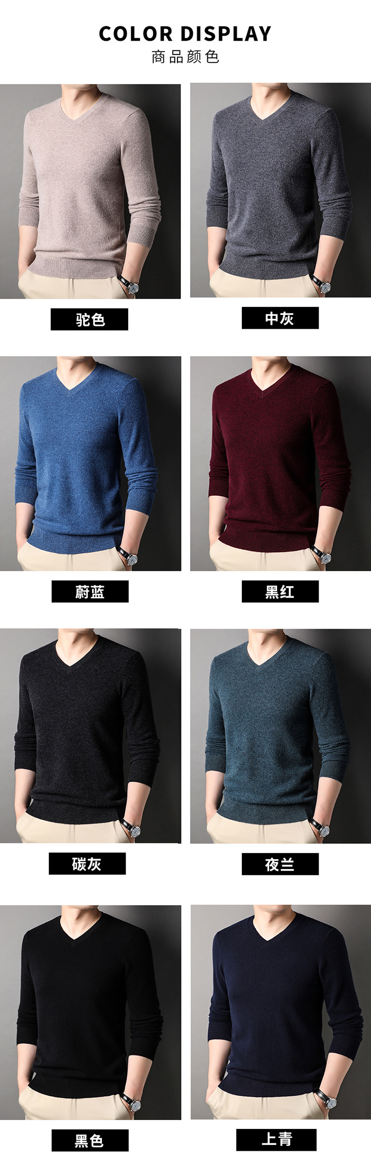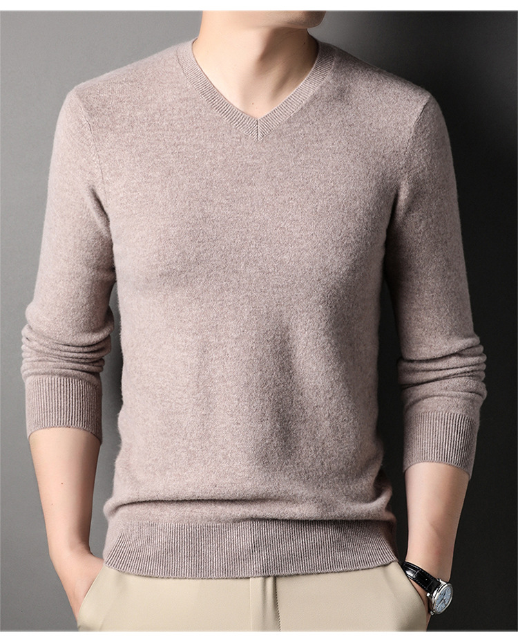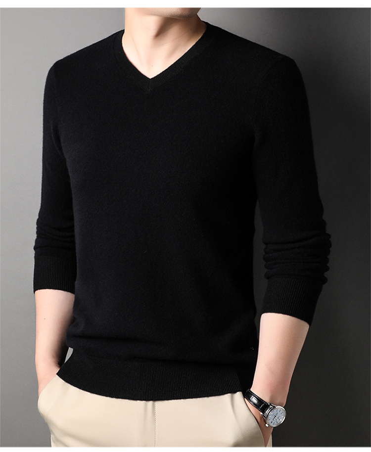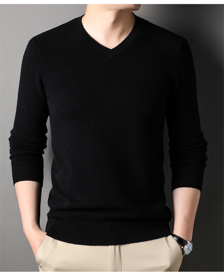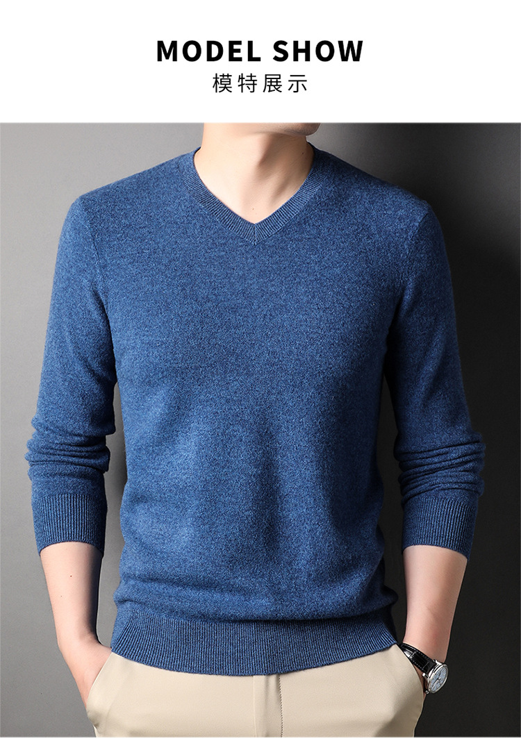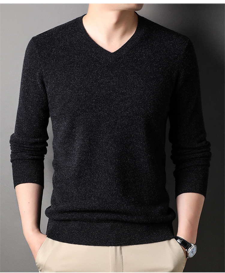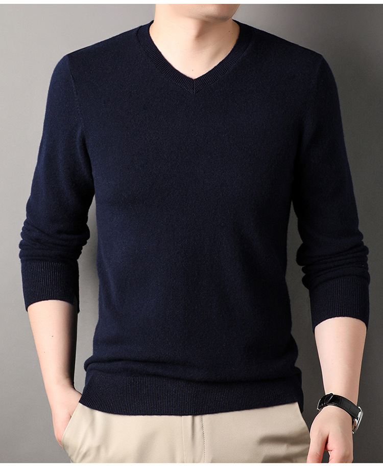 울 스웨터 브이넥 가을 겨울 100% 순모 남성용 단색 따뜻한 카디건 니트 캐시미어 상의스토어 가기