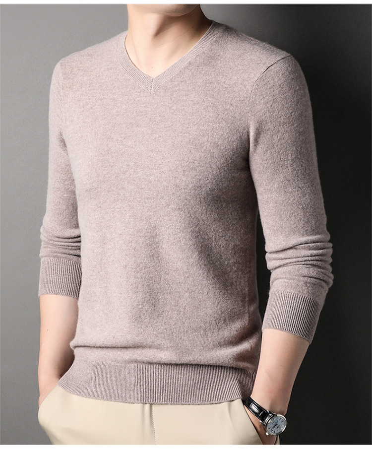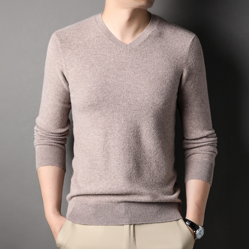 울 스웨터 브이넥 가을 겨울 100% 순모 남성용 단색 따뜻한 카디건 니트 캐시미어 상의