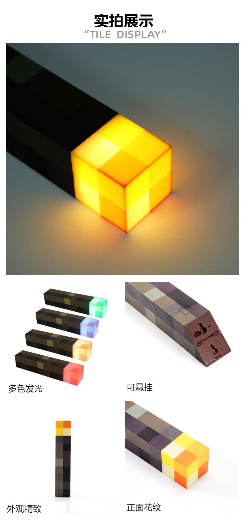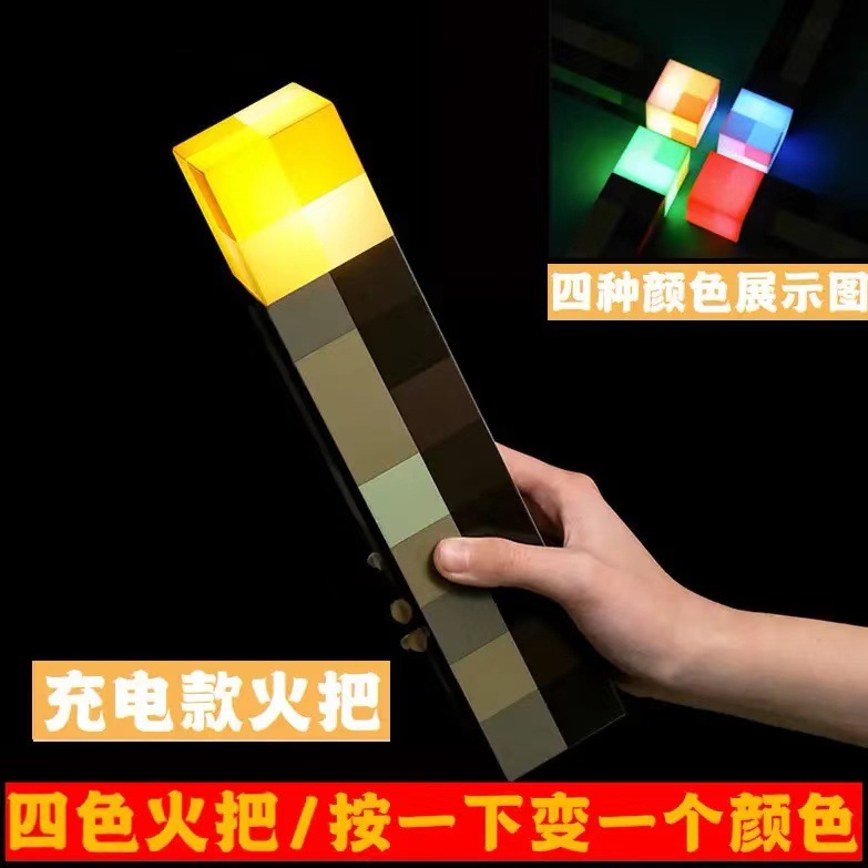 내 세계 주변 토치 다색 마인 크래프트 토치 사운드 컨트롤 라이트 충전식 야간 조명 할로윈