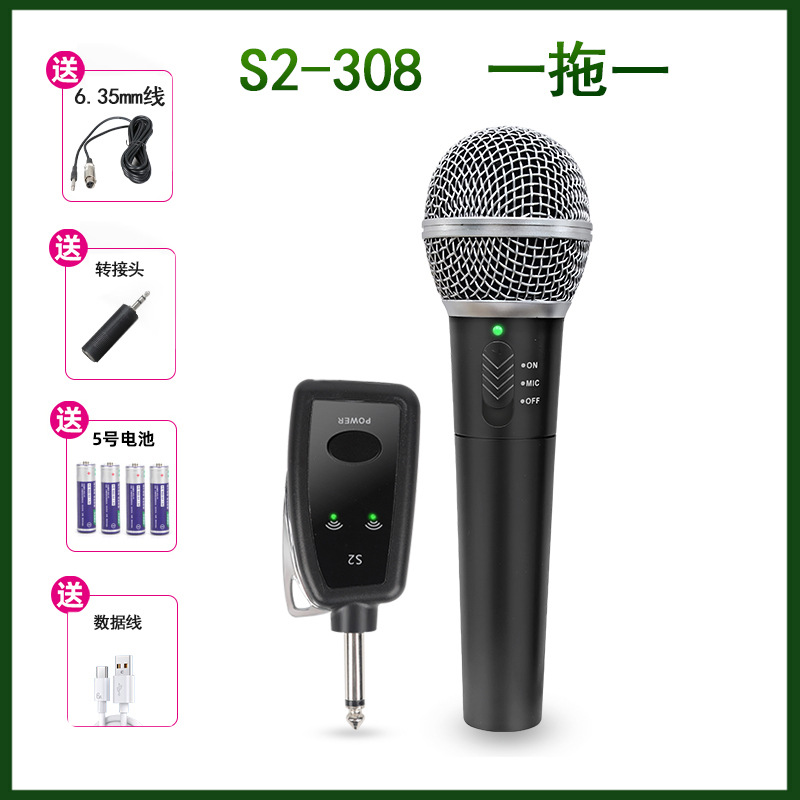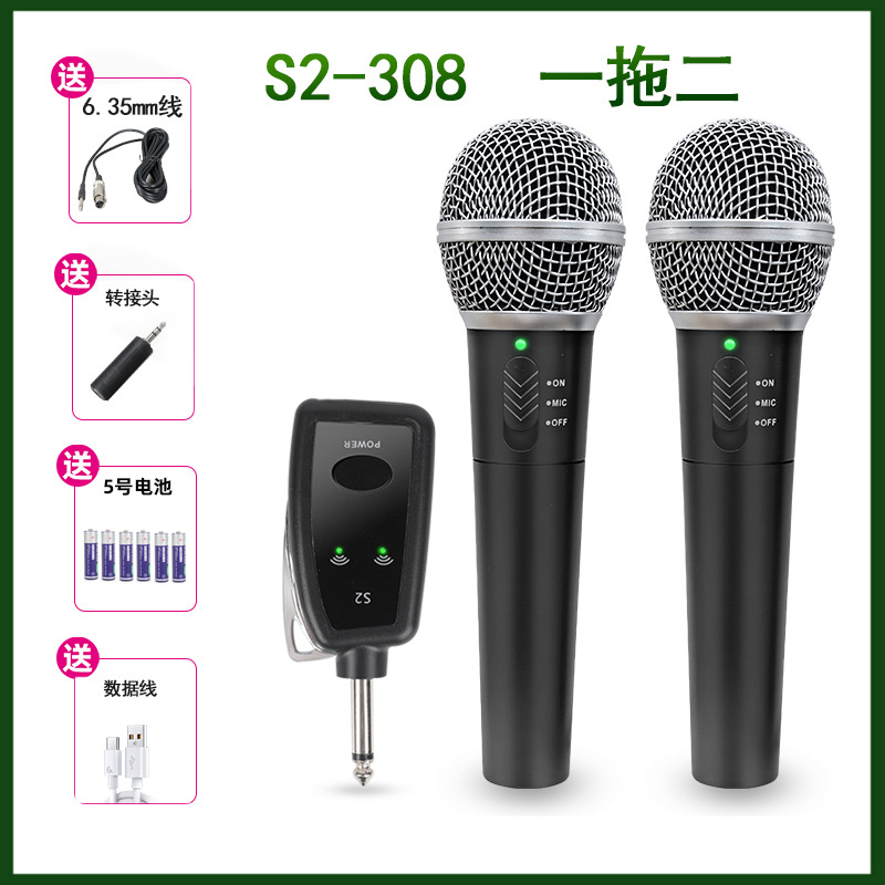 S2-308 유선 및 무선 이중 목적 동적 마이크 플라스틱 튜브 바디 금속 메쉬 헤드 크로스 테두리 드래그 2