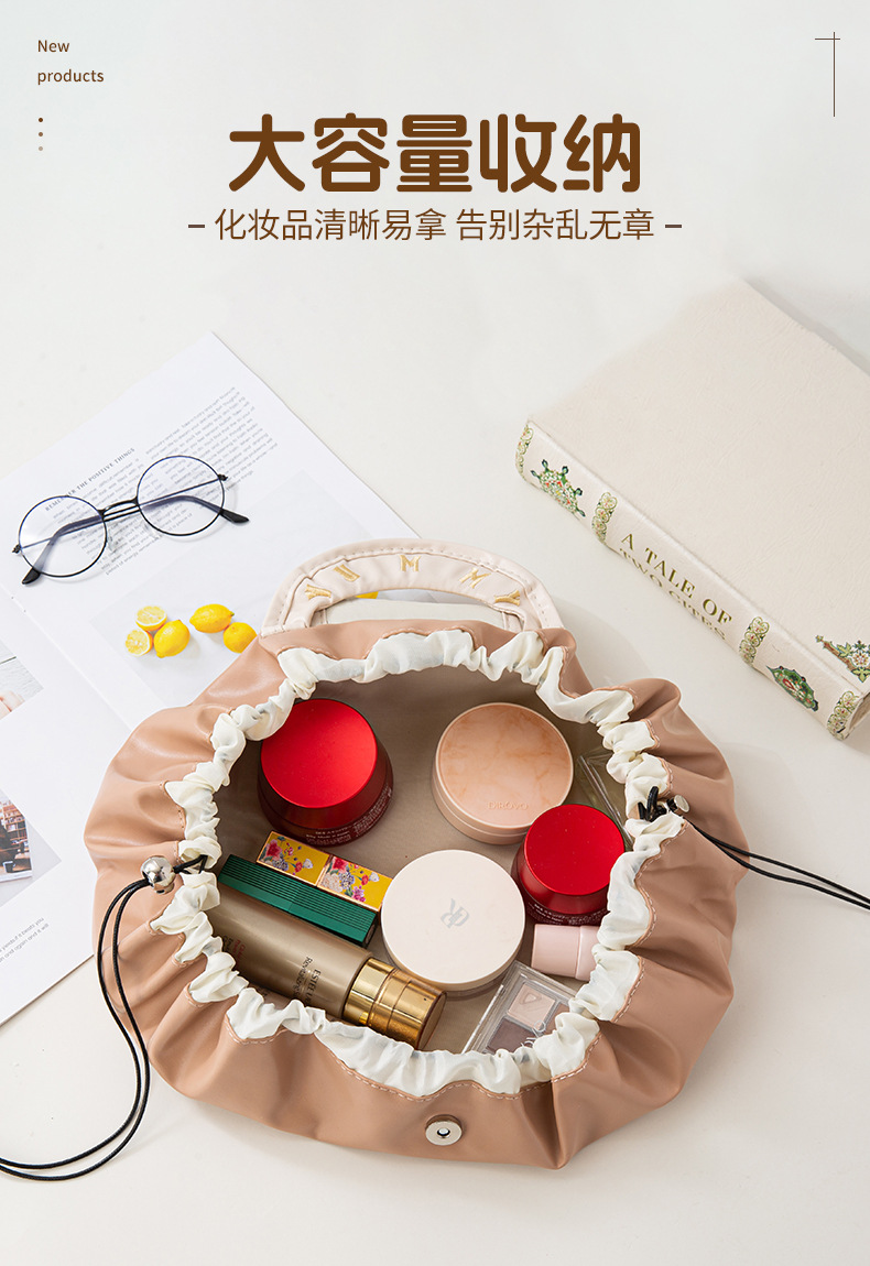 새로운 게으른 서랍 화장품 가방 여성용 휴대용 방수 PU 여행 세척 가방 휴대용 저장 가방 상자 고급 케이스