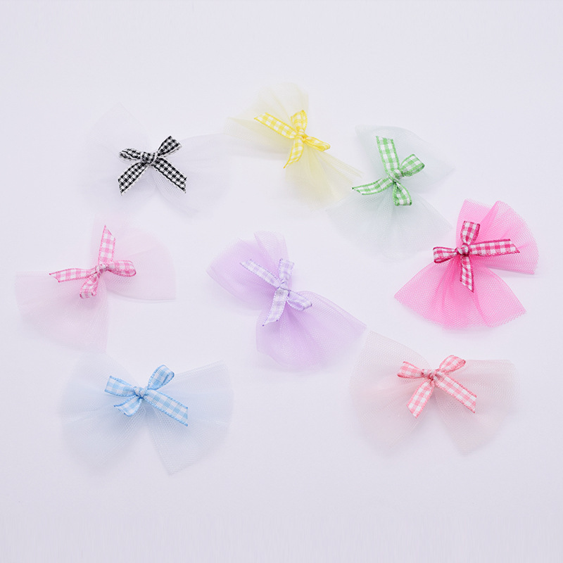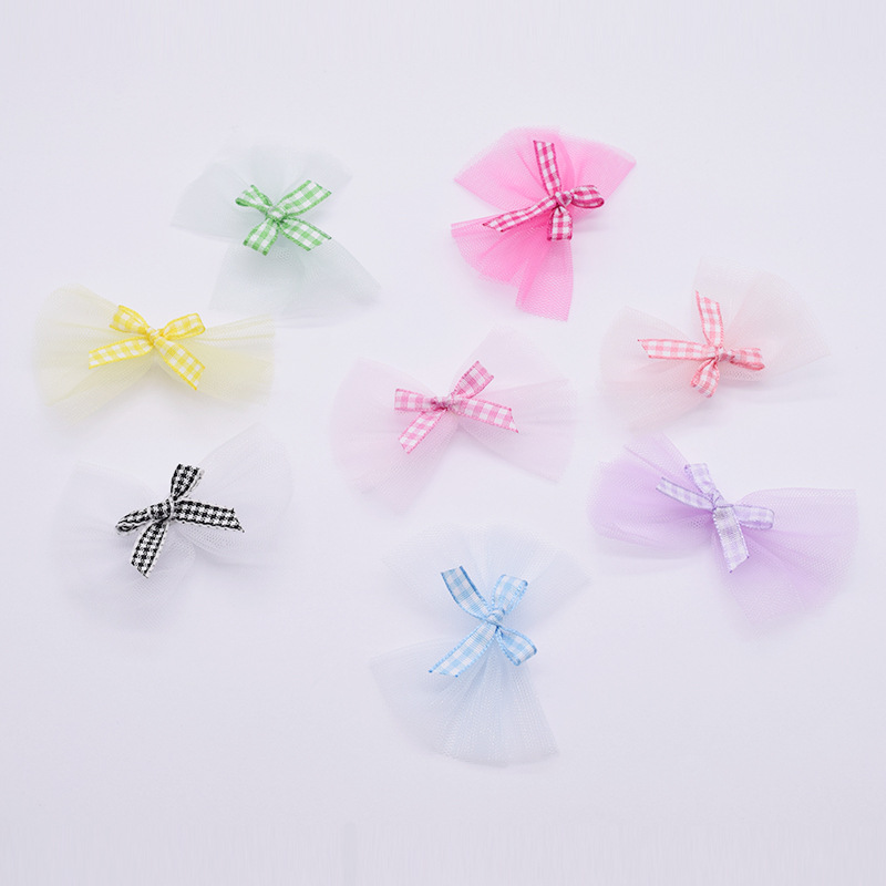 격자 무늬 메쉬 스티칭 Bowknot 액세서리 애완 동물 용품 수제 반제품 재료 어린이 의류 신발 가방 액세서리