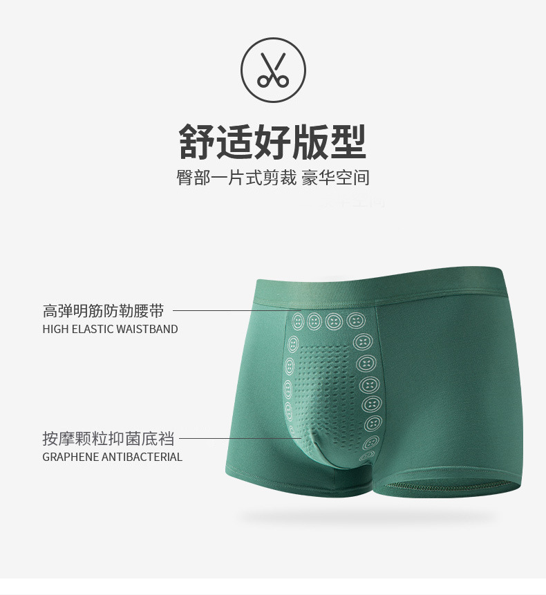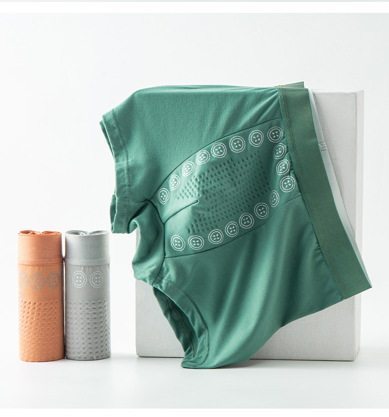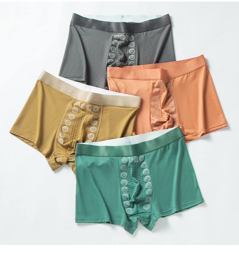 남성 속옷 마사지 Granular Boxer 통기성 하단 Crotch 중간 허리 통기성 느슨한 편안한 피부 친화적 인 4 개의 코너 바지 남성용