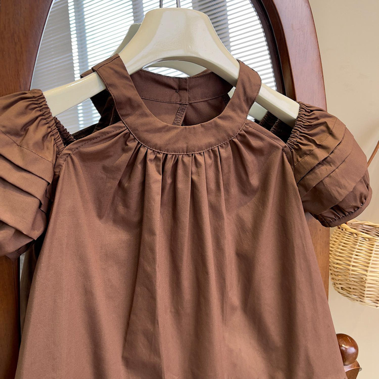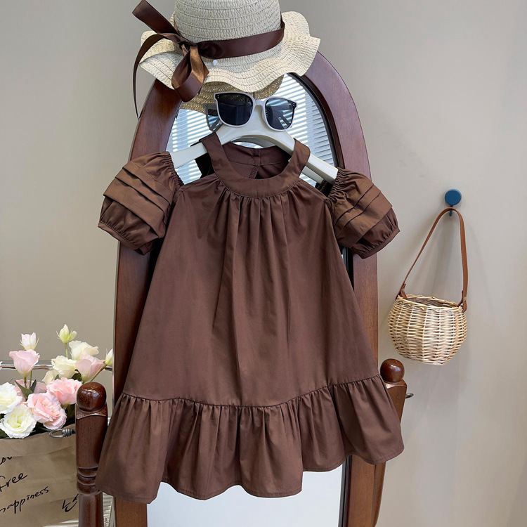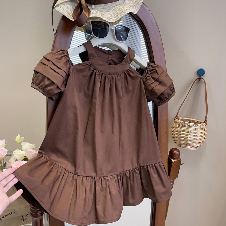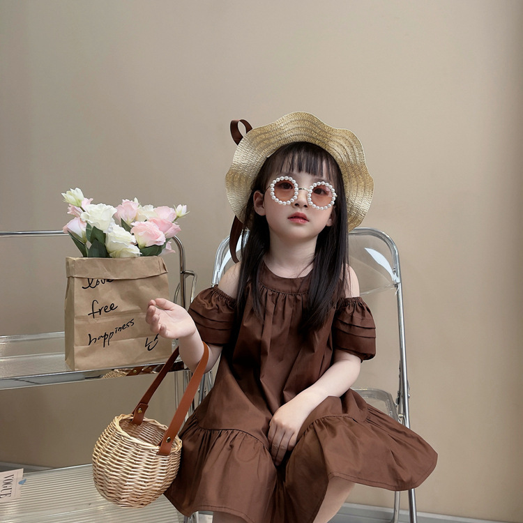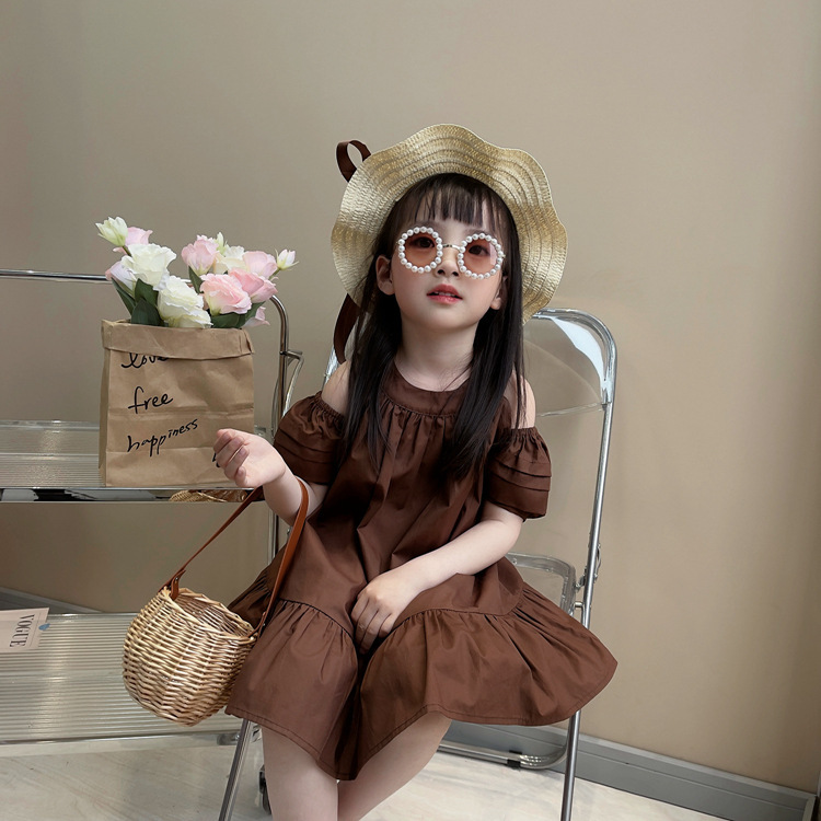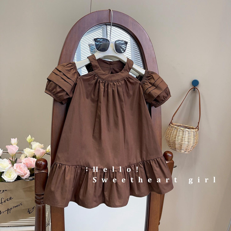 아마존 걸스 원피스 공주 원피스 여름 반팔 어깨 2024 새로운 어린이 서양식 원피스 헤어스토어 가기