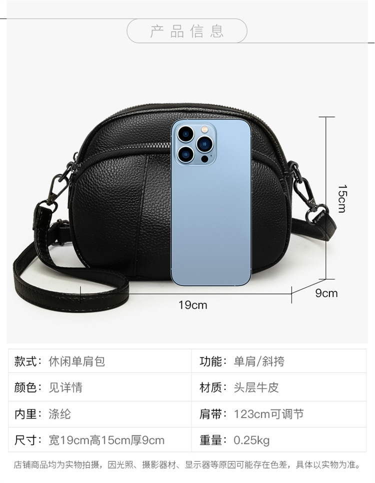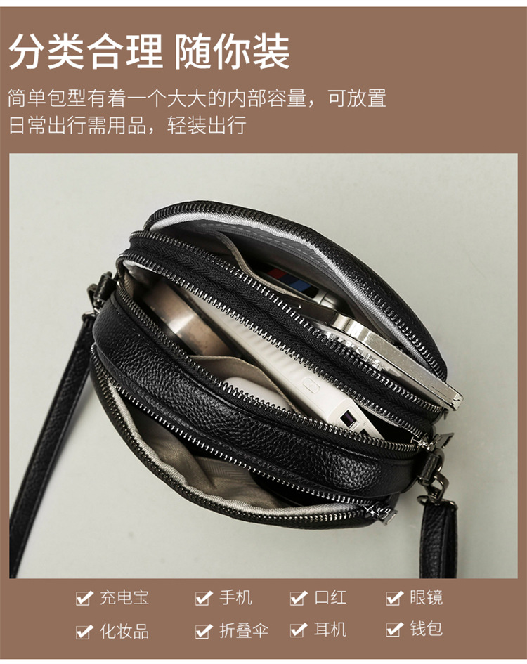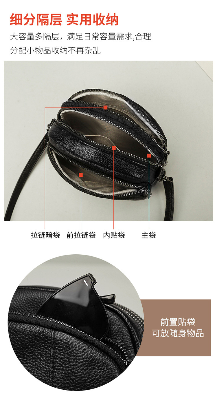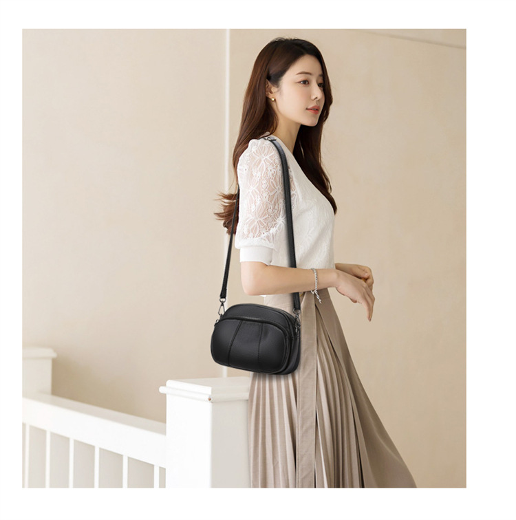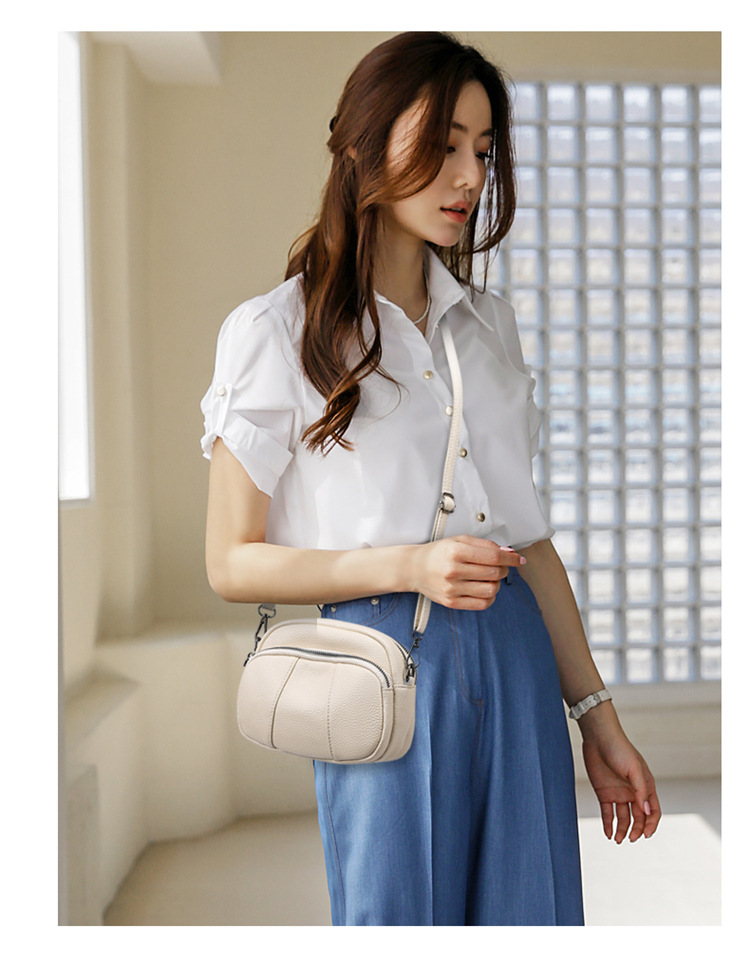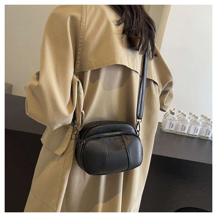 여성용 1층 소가죽 가방, 3단 지퍼, 2026년 신상 패션 가죽 숄더백, 크로스백, 캐주얼 소형 가방스토어 가기