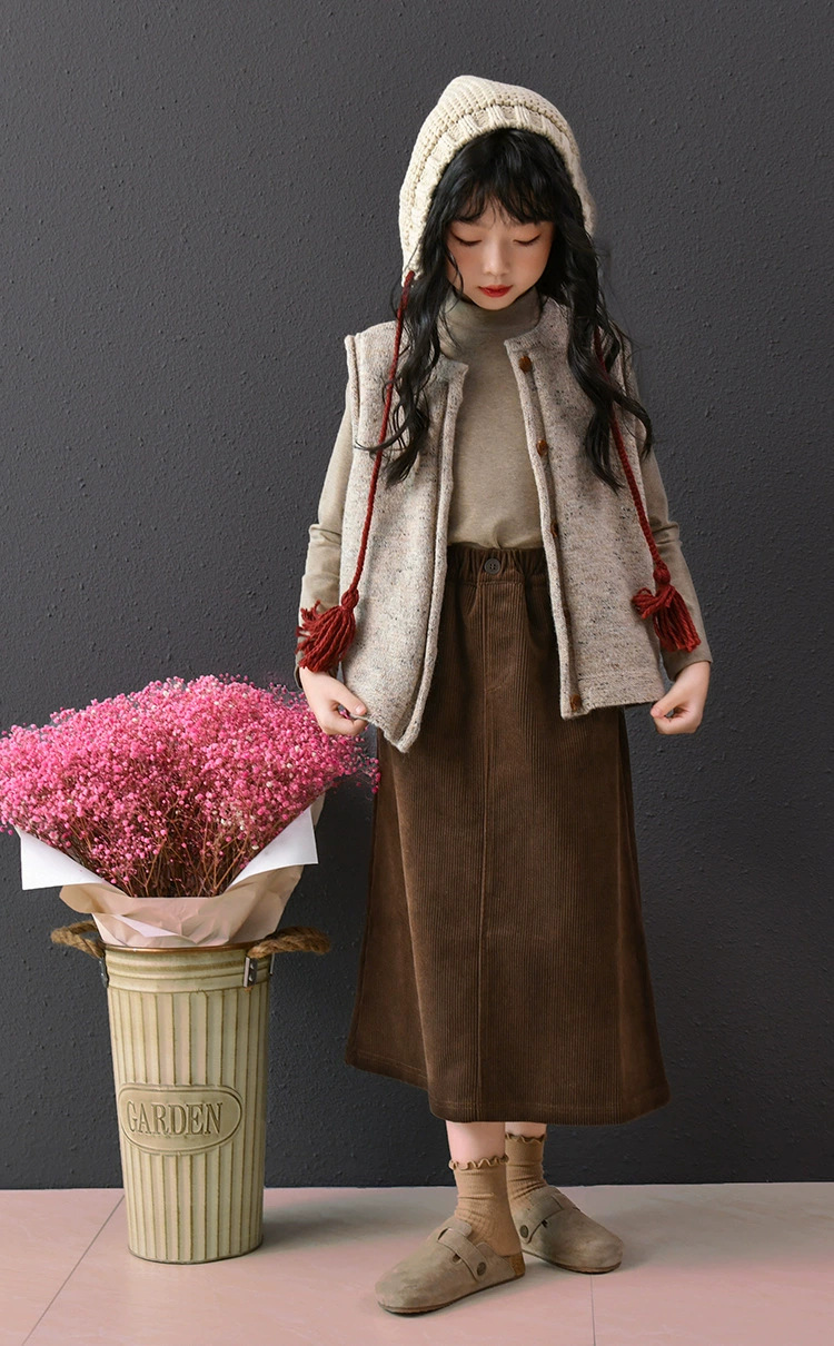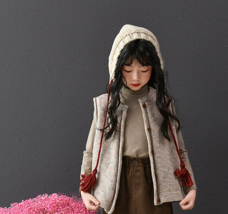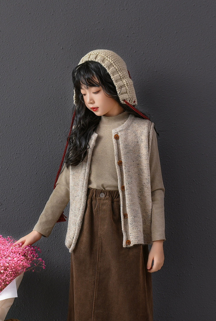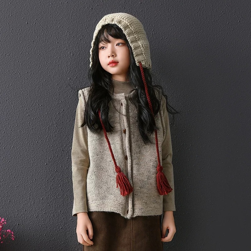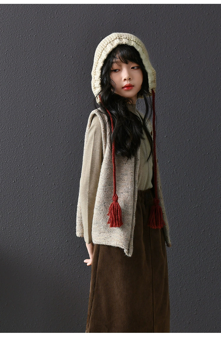 어린이 따뜻한 가을과 겨울 예술적 복고풍 니트 조끼 2024 가을과 겨울 소녀 쌓아 민소매 조끼 스웨터 코트스토어 가기