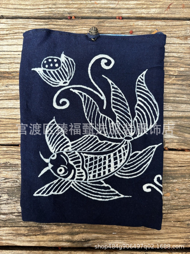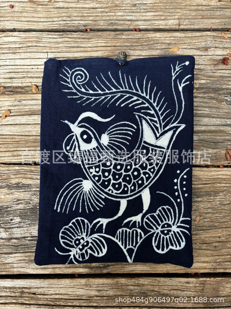바틱 식물 염료 블루 염료 수제 그림 바틱 코튼 및 리넨 크로스 바디 백 Wenchuang 작은 가방 손 가방 선물