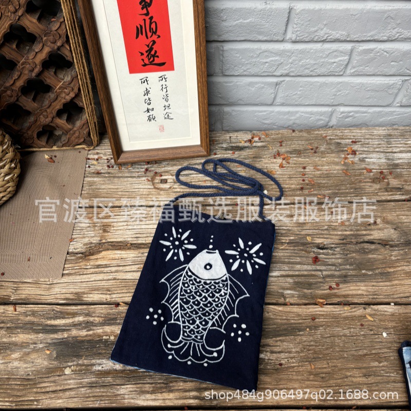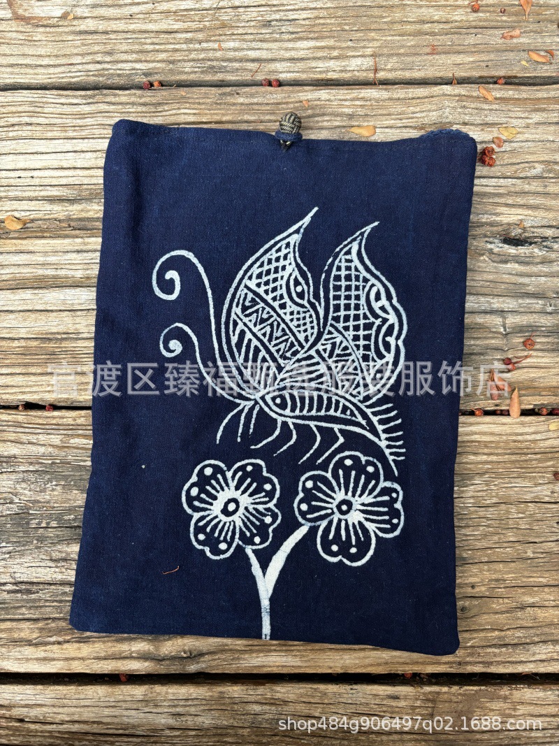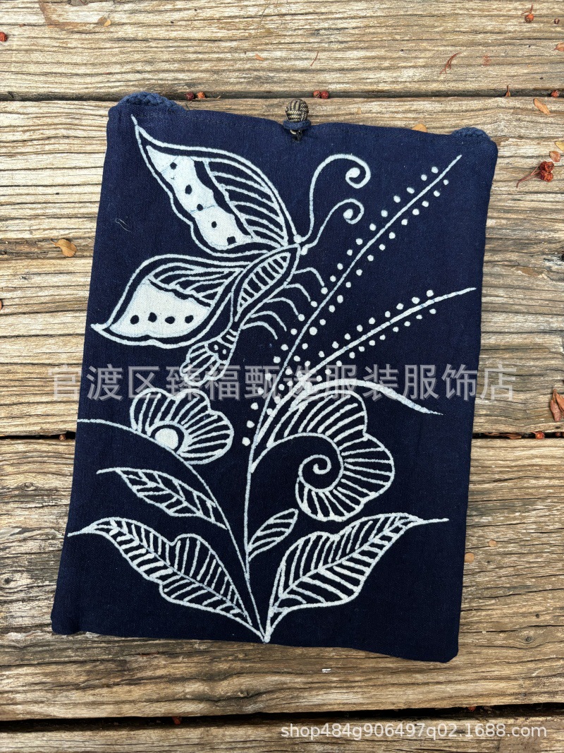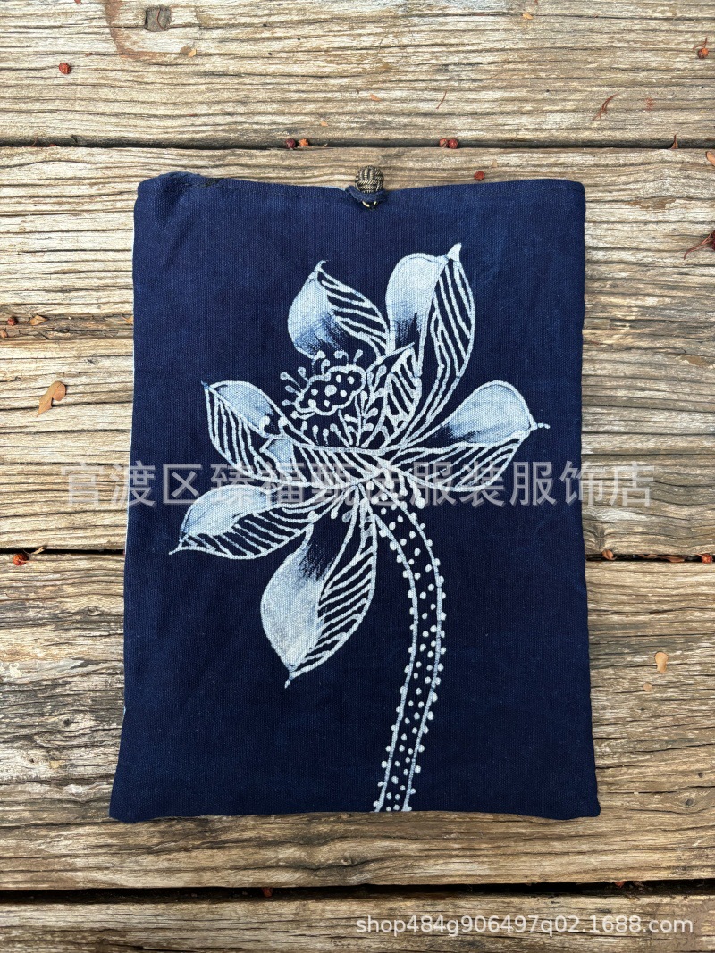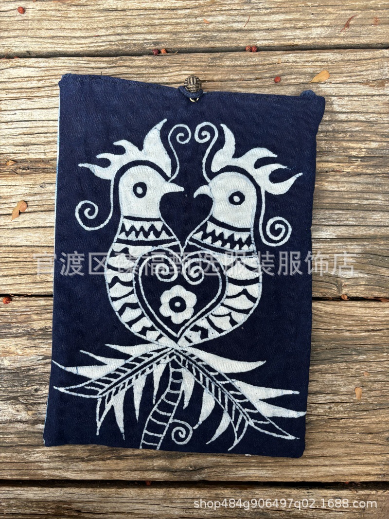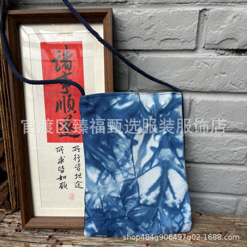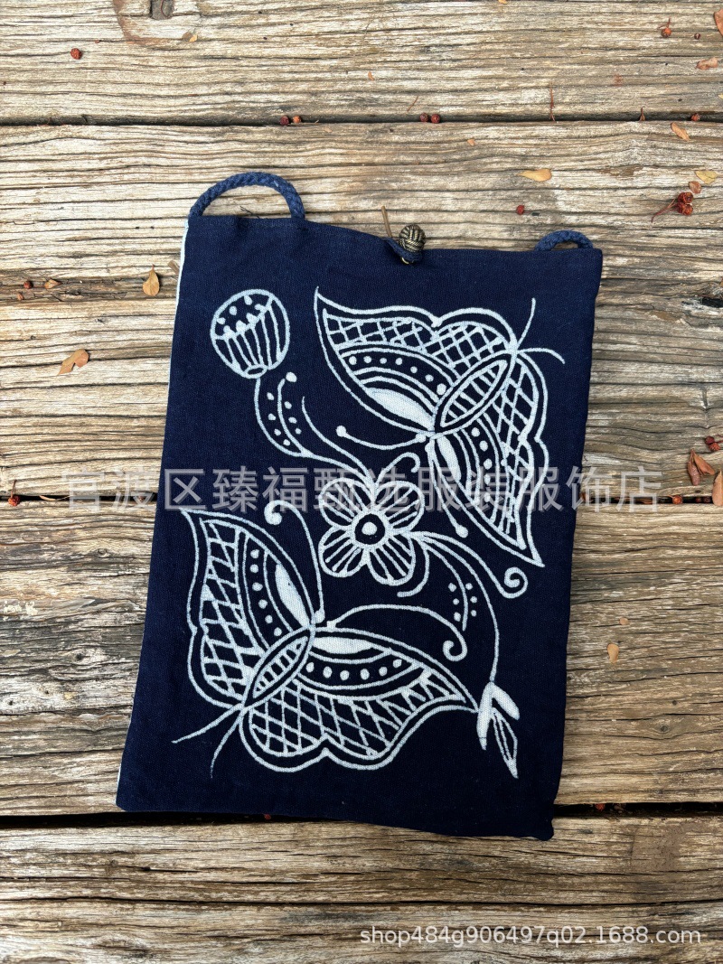 바틱 식물 염료 블루 염료 수제 그림 바틱 코튼 및 리넨 크로스 바디 백 Wenchuang 작은 가방 손 가방 선물스토어 가기