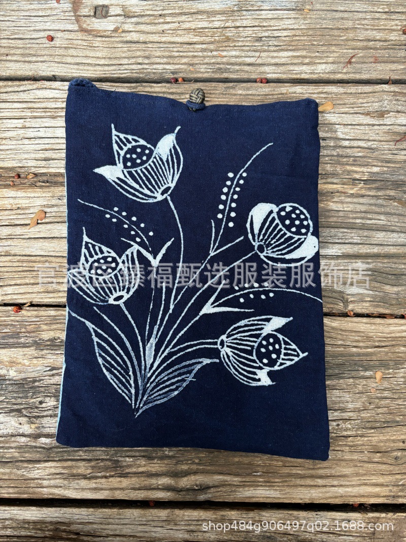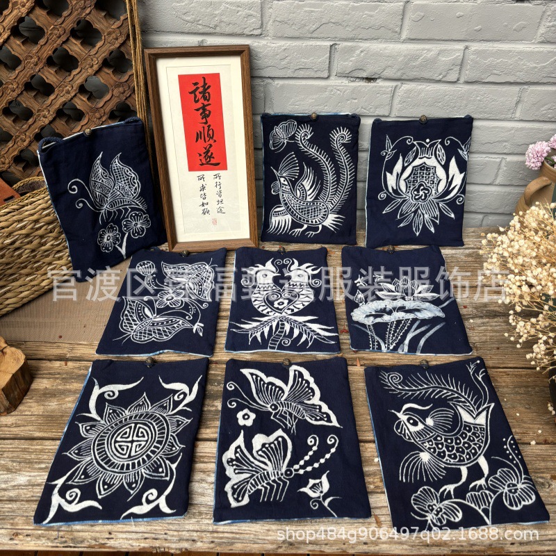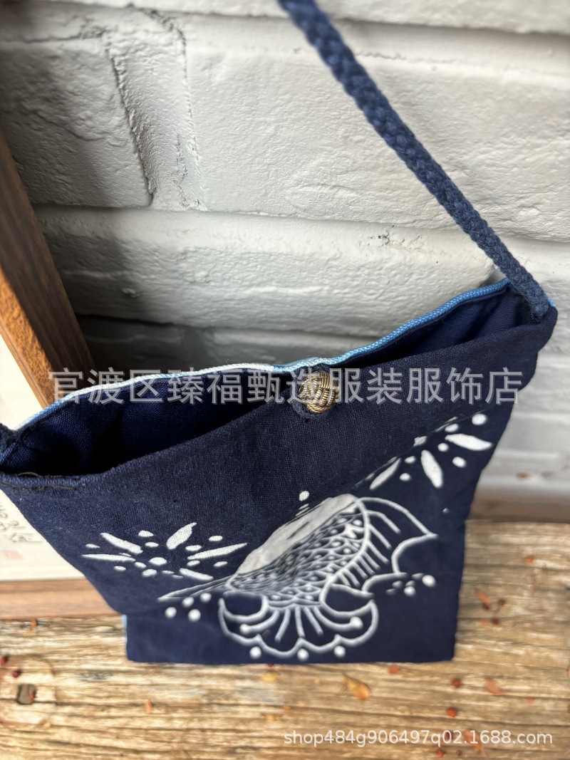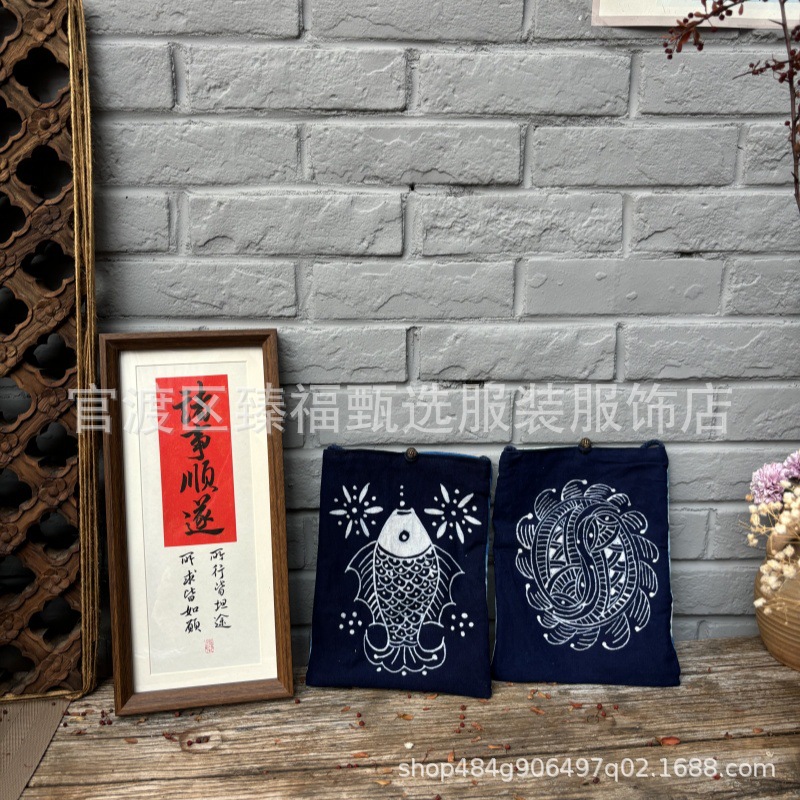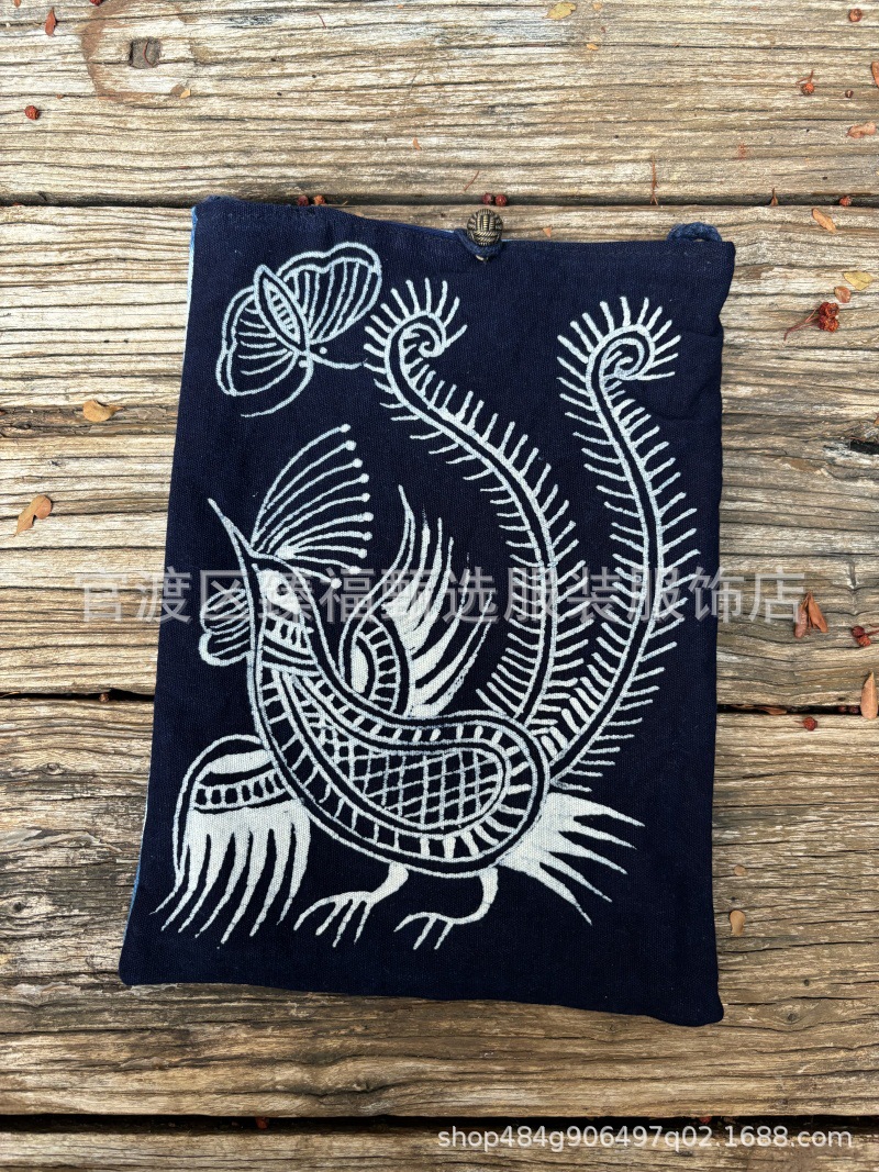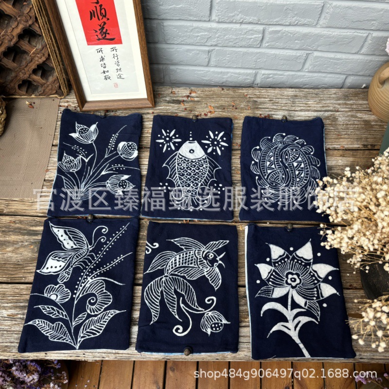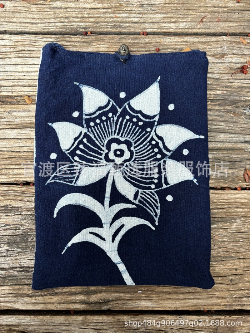 바틱 식물 염료 블루 염료 수제 그림 바틱 코튼 및 리넨 크로스 바디 백 Wenchuang 작은 가방 손 가방 선물스토어 가기