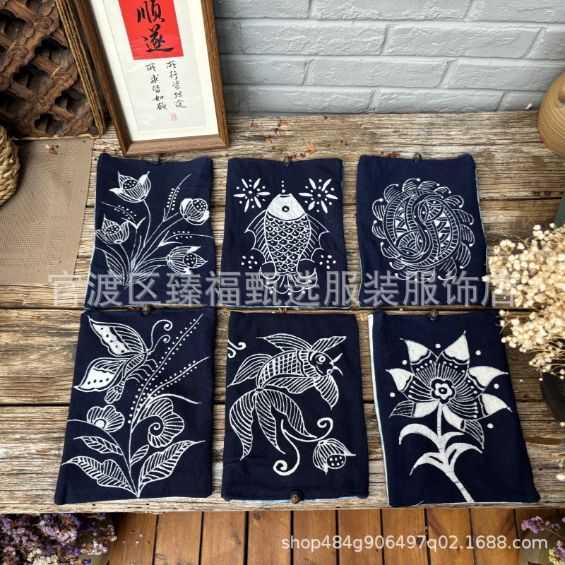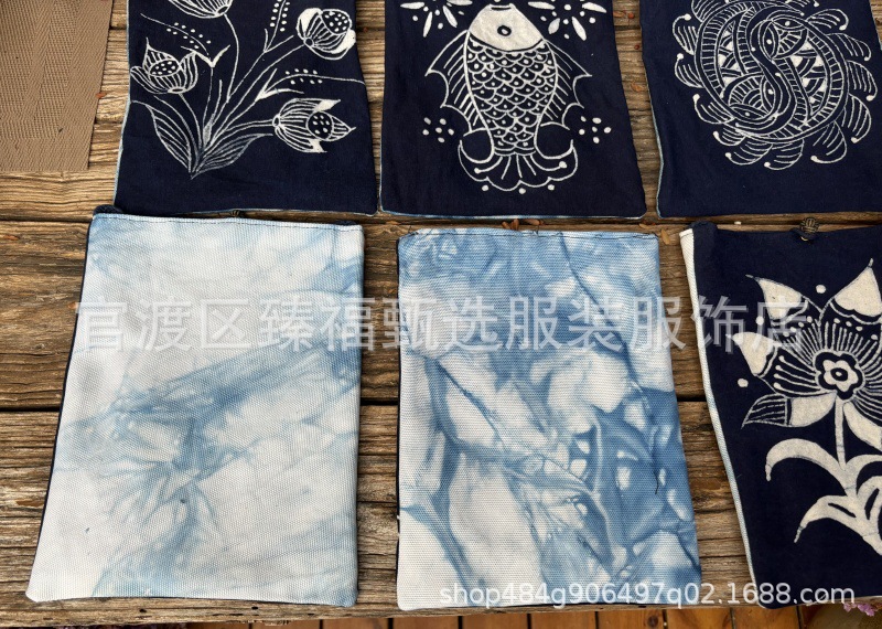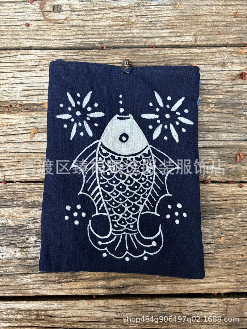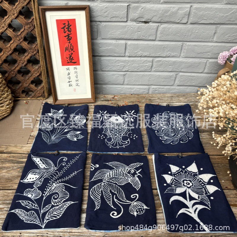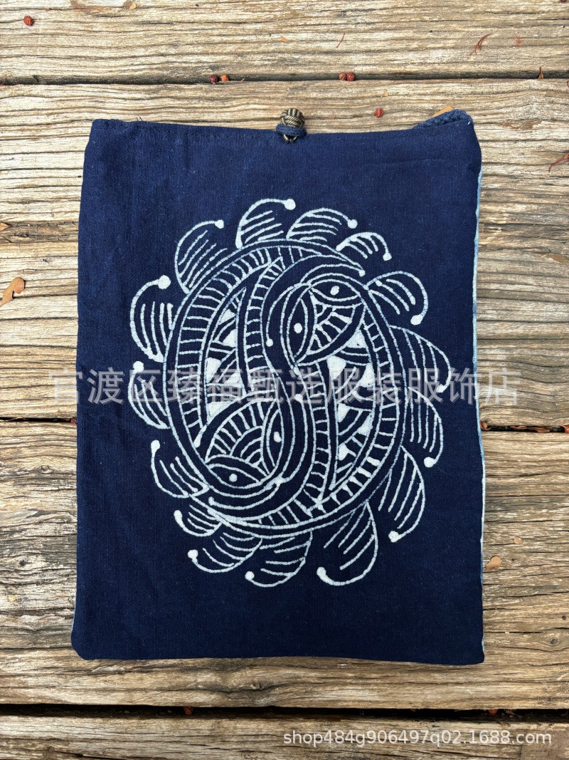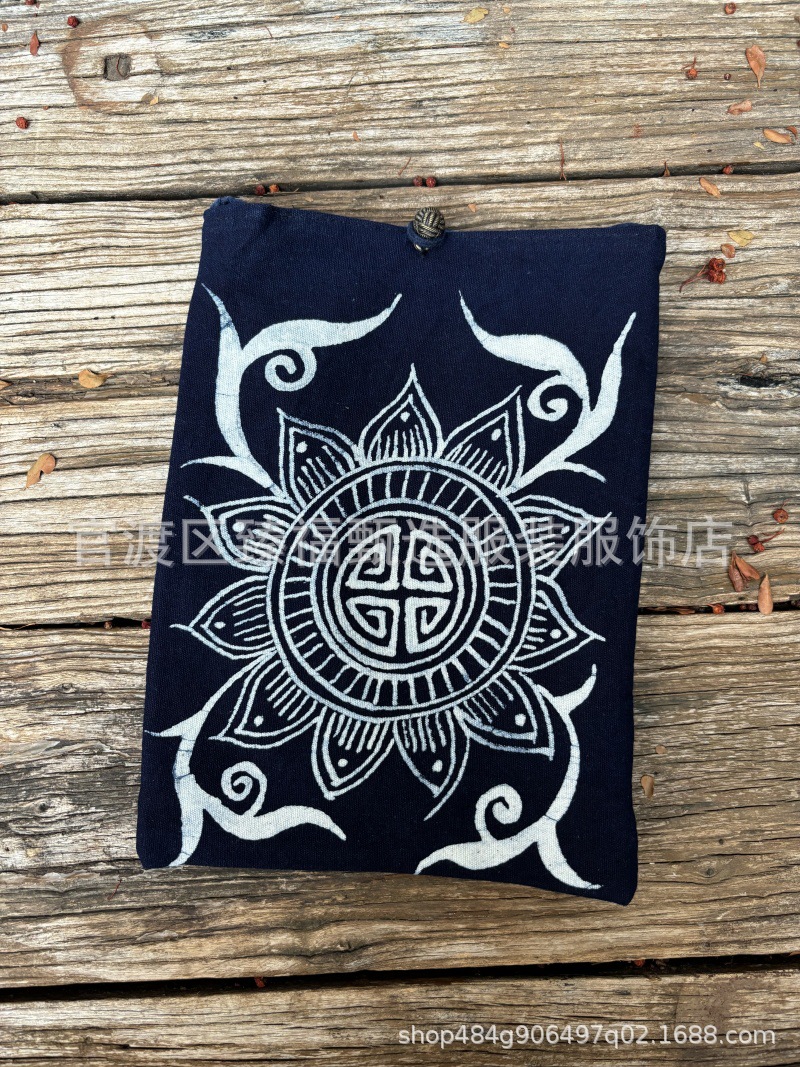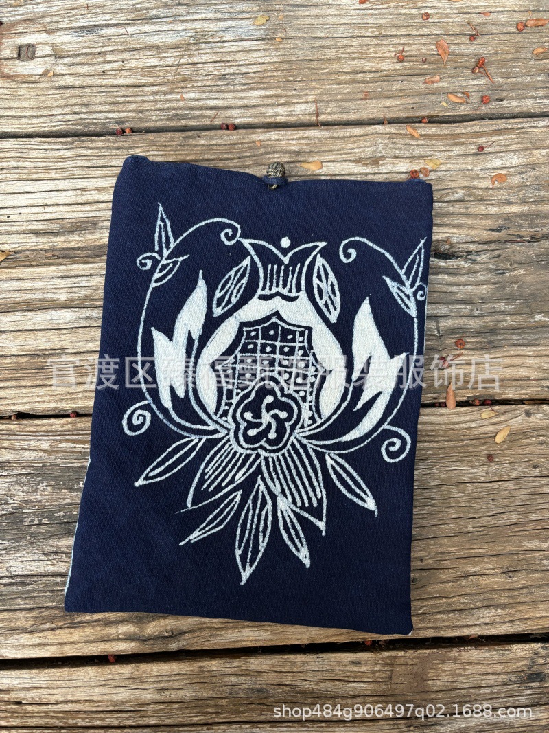바틱 식물 염료 블루 염료 수제 그림 바틱 코튼 및 리넨 크로스 바디 백 Wenchuang 작은 가방 손 가방 선물스토어 가기