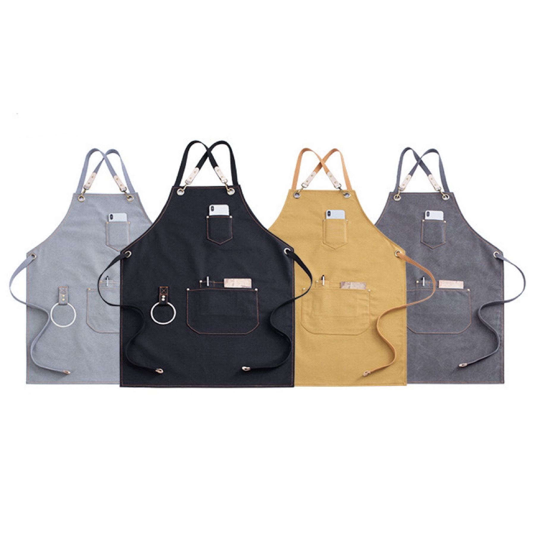 데님 앞치마 한국 스타일 미용 커피 우유 차 가게 웨이터 작업 옷 남녀 고정 맞춤 인쇄 로고 자수스토어 가기