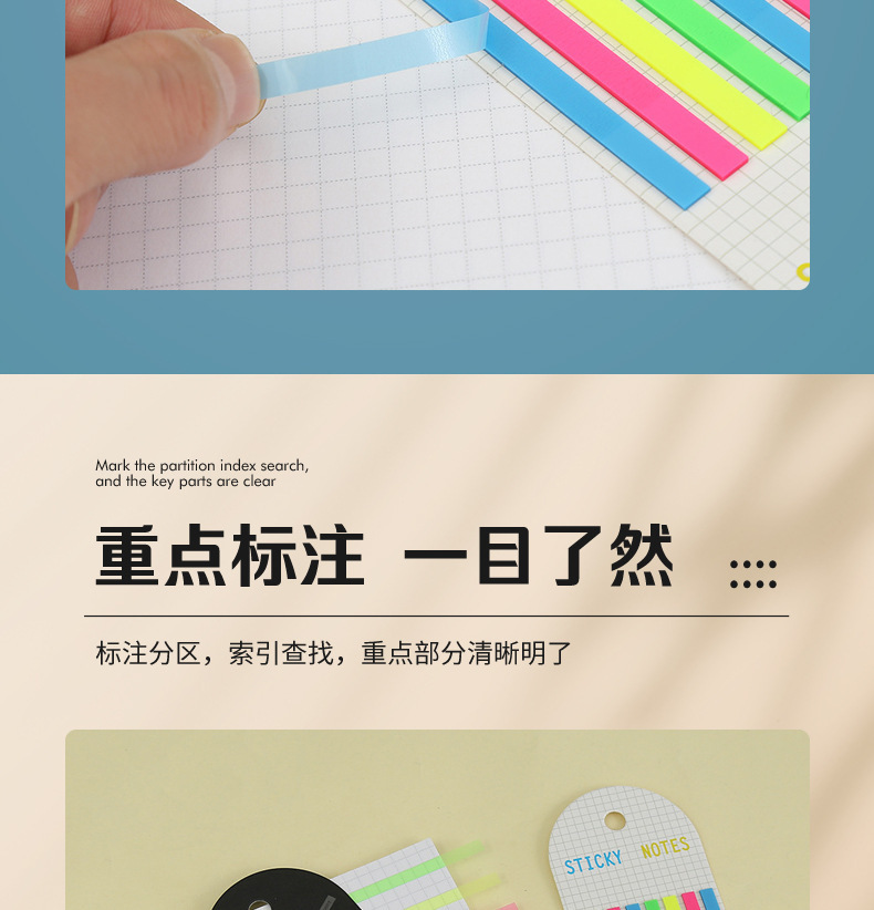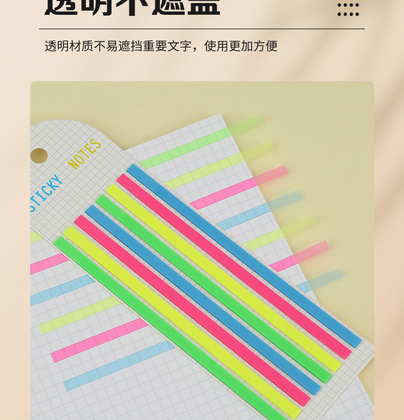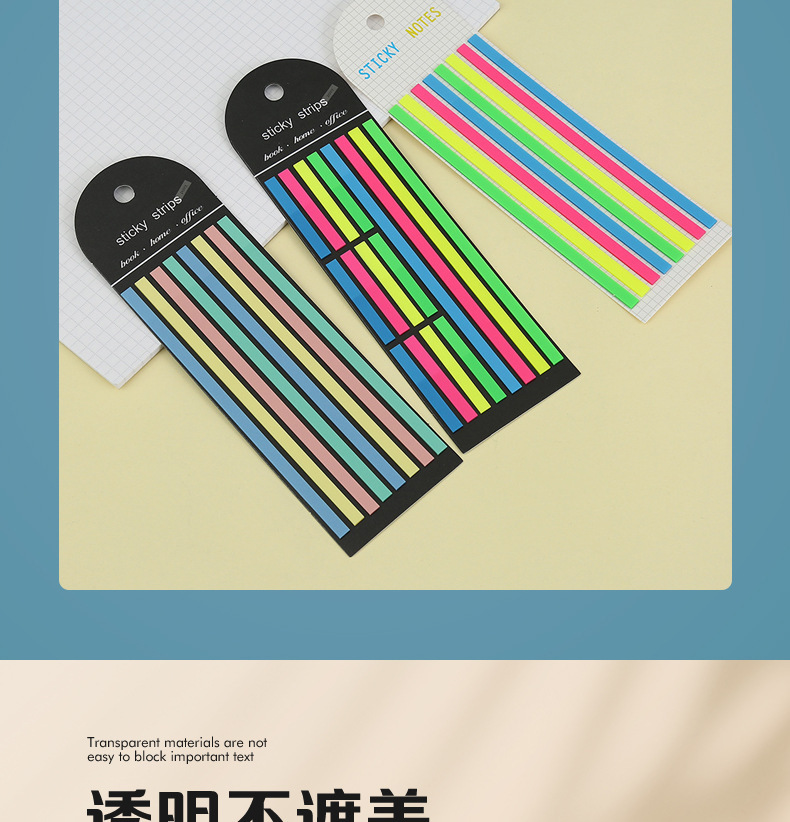 PET 스트립 세그먼트 인덱스 스티커 컬러 형광 방수 포스트잇 노트 반투명 강조 마커 스티커
