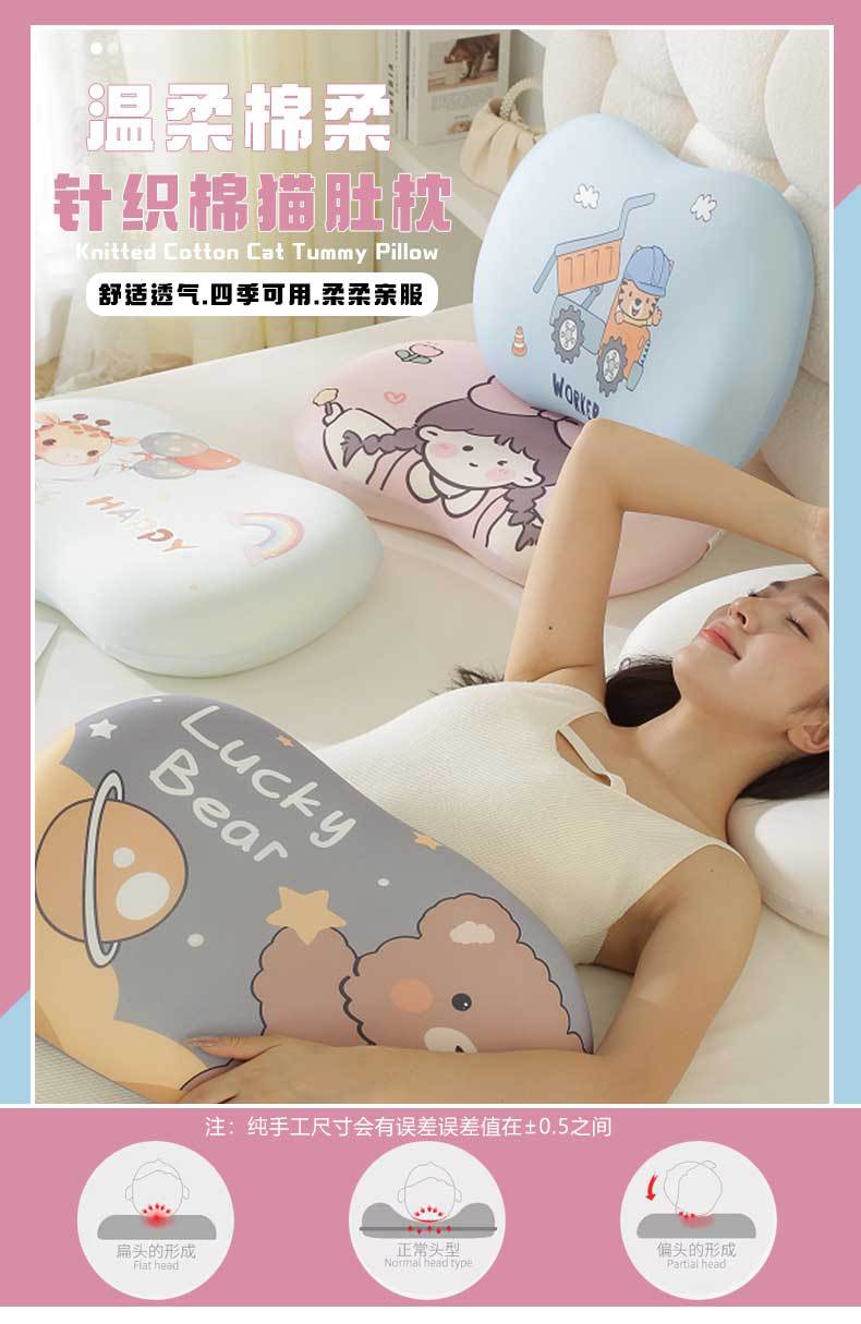 2024 새로운 클래스 아기 등급 어린이 베개 아기 고양이 배 베개 만화 니트 면화 피부 베개 도매스토어 가기