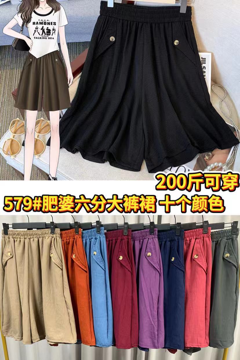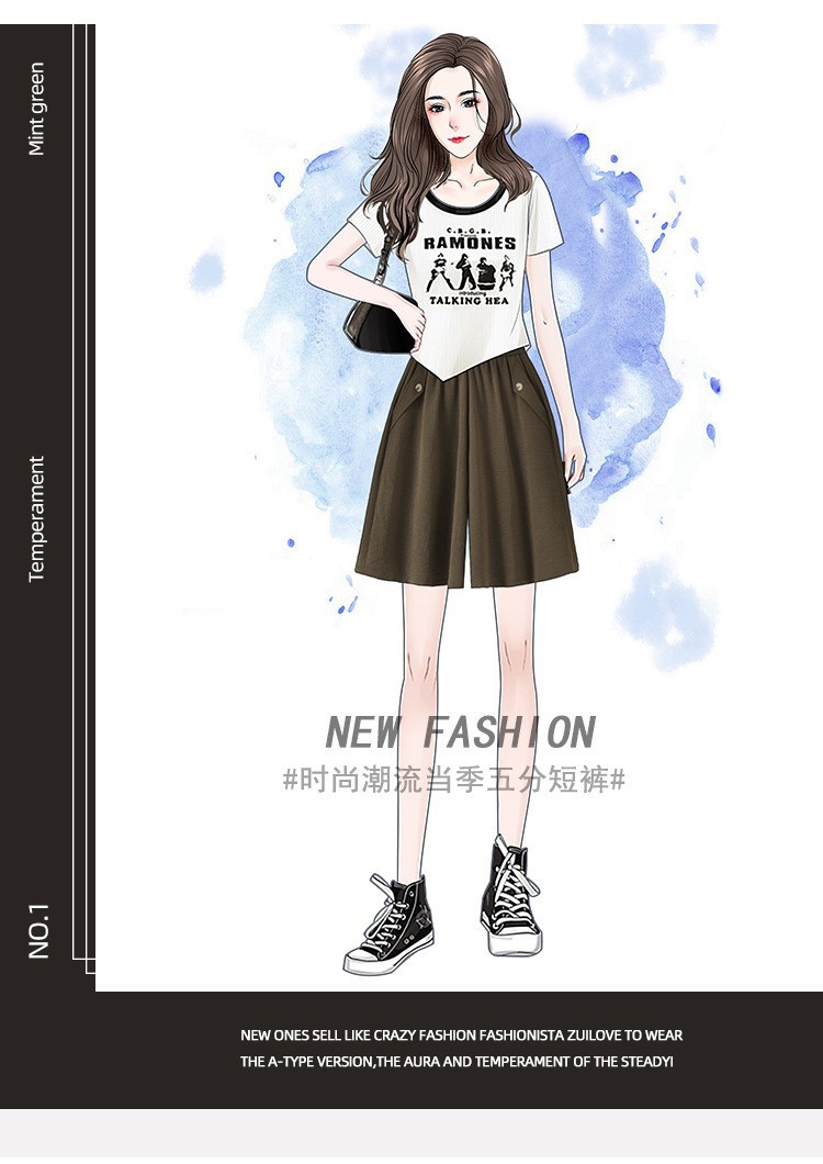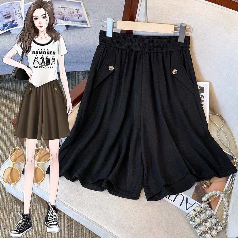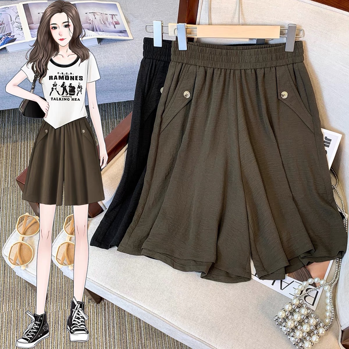 한국식 유행 캐주얼 바지 여성 여름 얇은 배 모양의 몸 느슨한 슬리밍 펜던트 와이드 레그 반바지스토어 가기