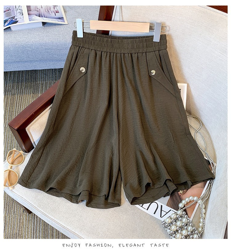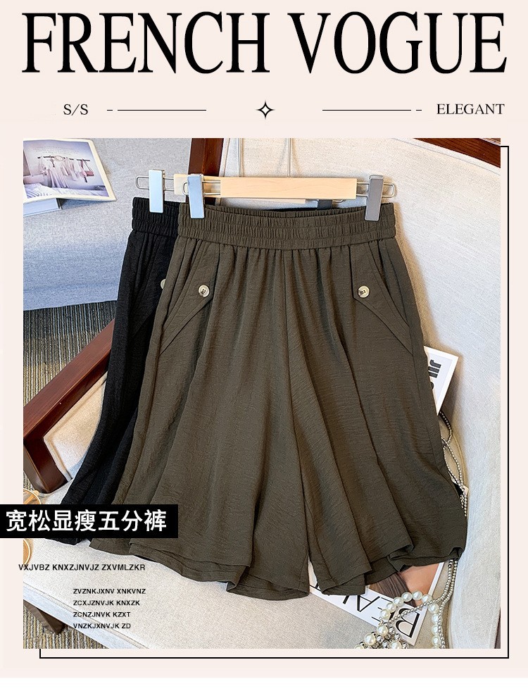 한국식 유행 캐주얼 바지 여성 여름 얇은 배 모양의 몸 느슨한 슬리밍 펜던트 와이드 레그 반바지