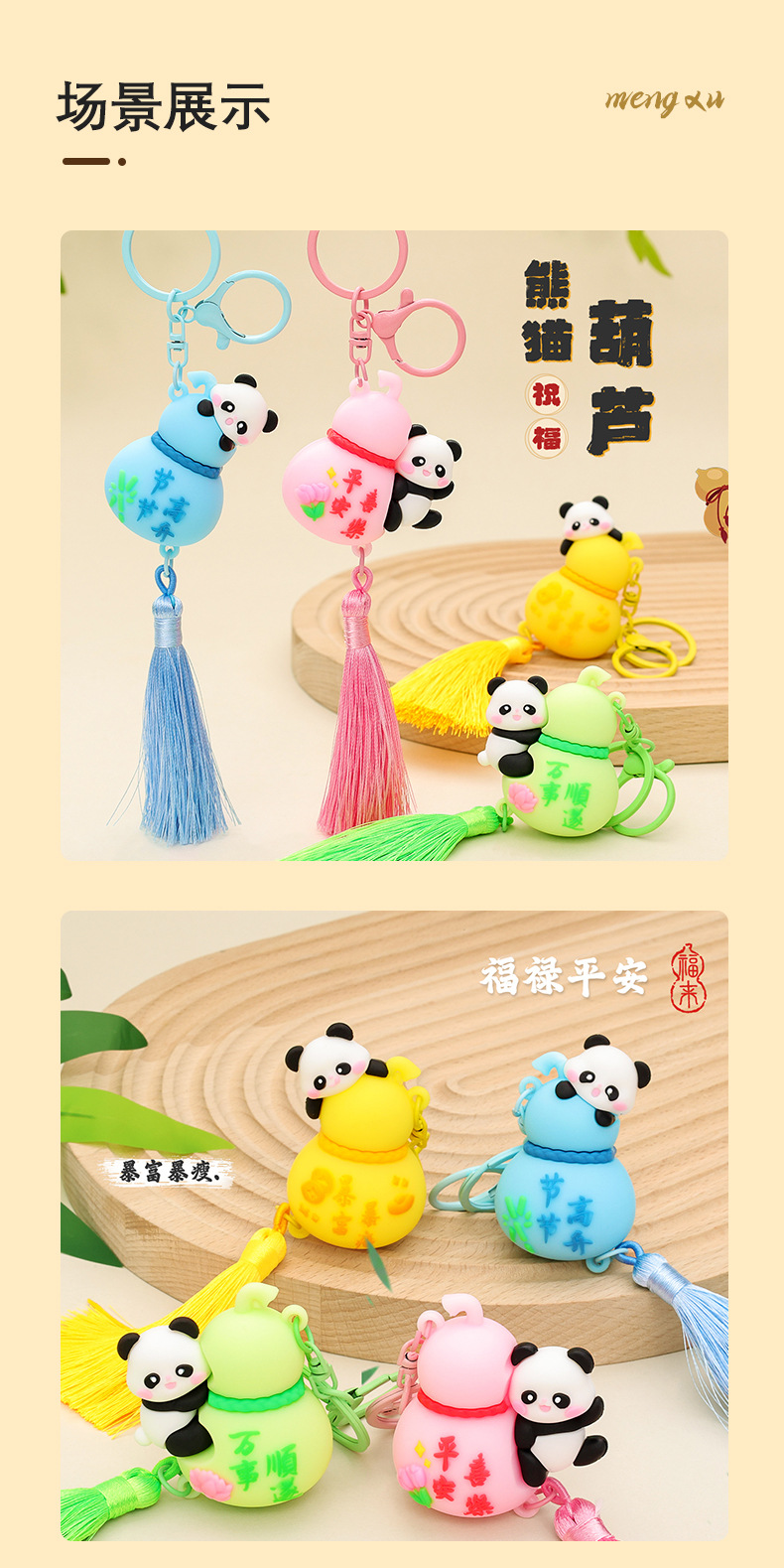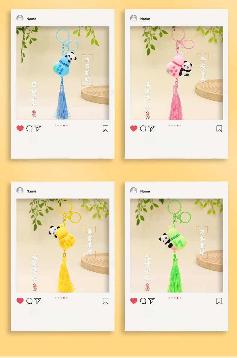 만화 조롱박 팬더 펜던트 자동차 키 체인 절묘한 인형 학생 책가방 펜던트 창조적 인 조롱박 작은 펜던트스토어 가기