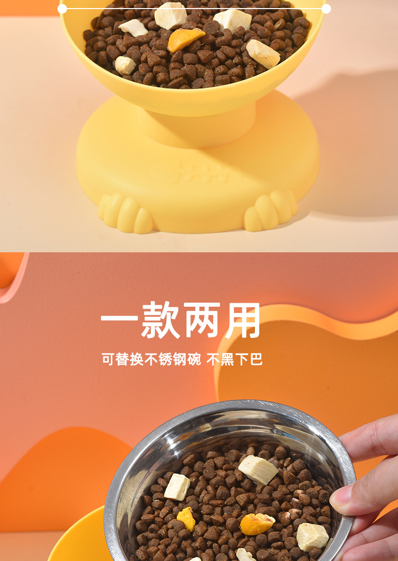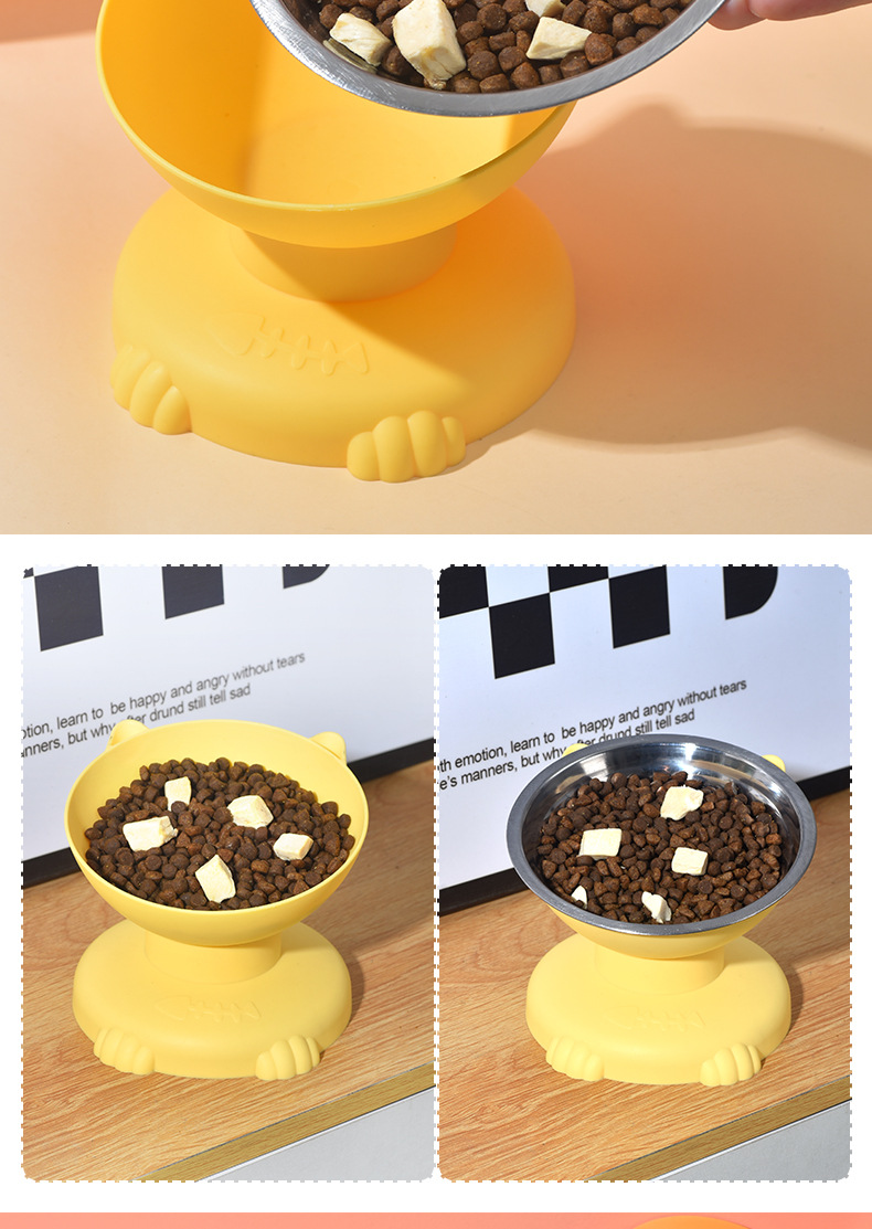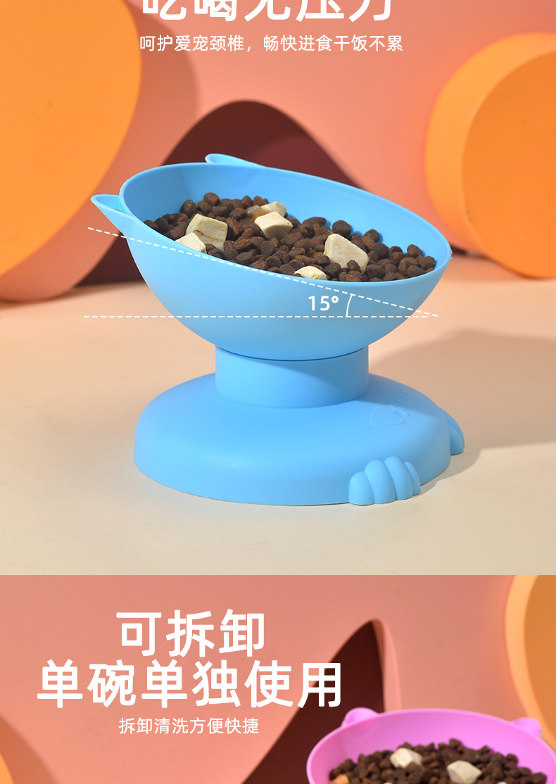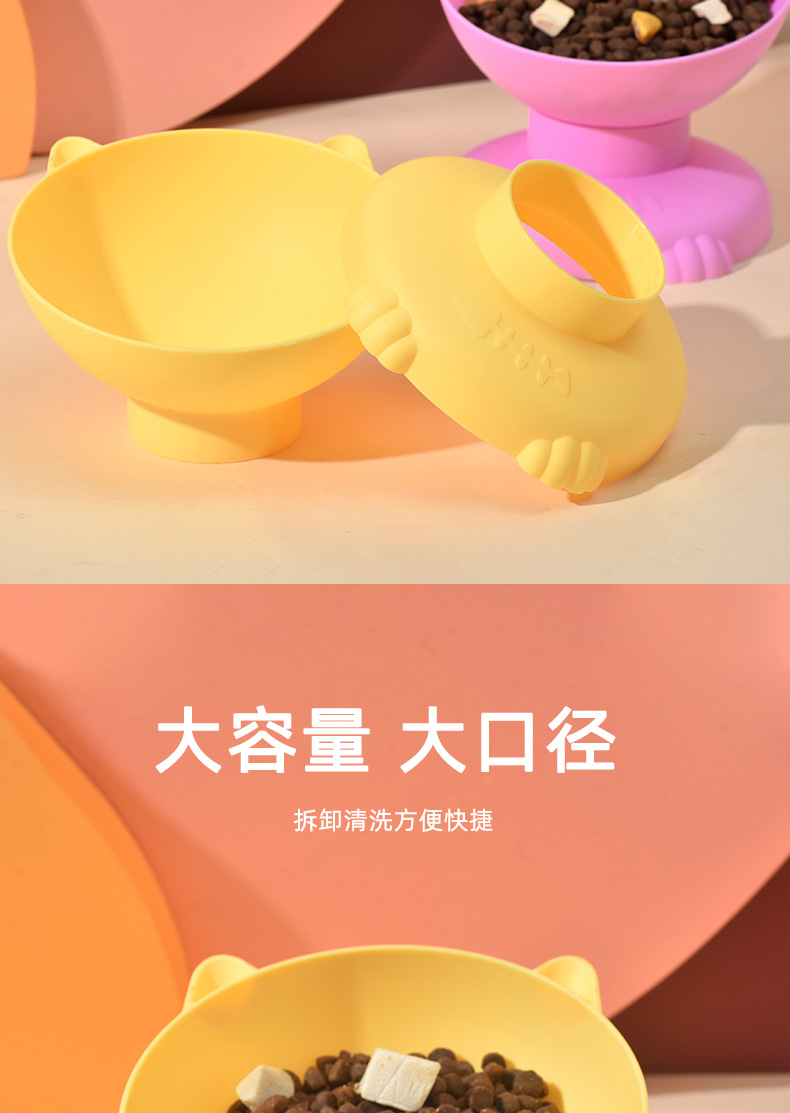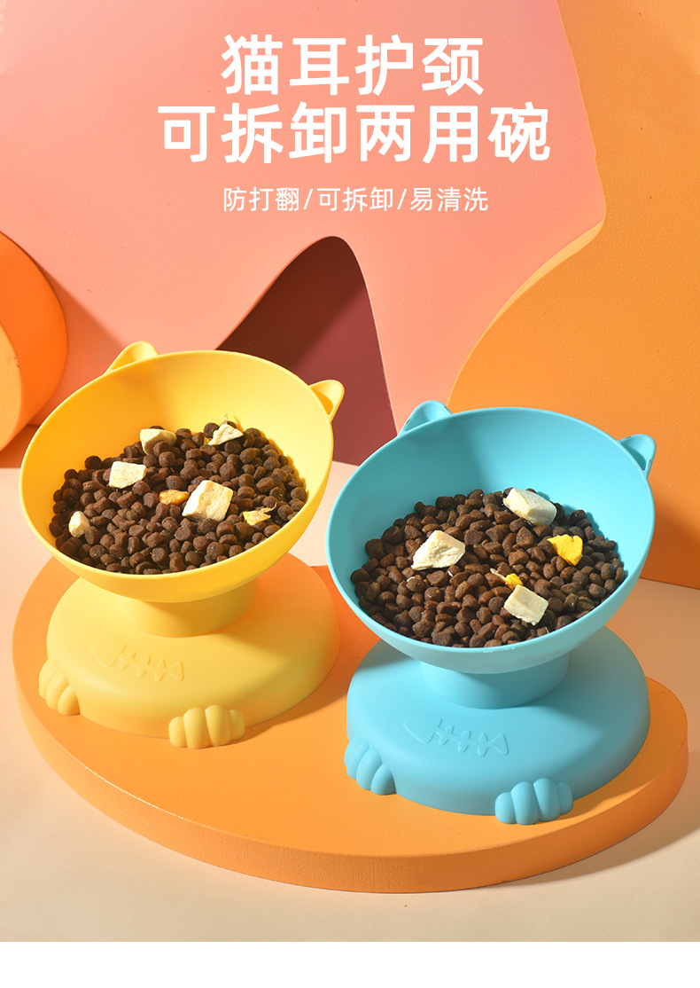 대용량 플라스틱 고양이 밥그릇, 고양이 귀 디자인, 탈부착 가능한 높은 받침대, 목 보호, 다용도 애완동물 밥그릇, 미끄럼 방지, 경사진 입구, 강아지 밥그릇