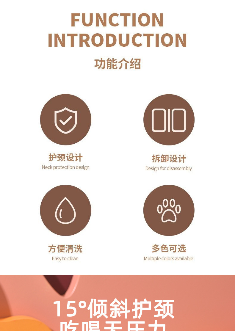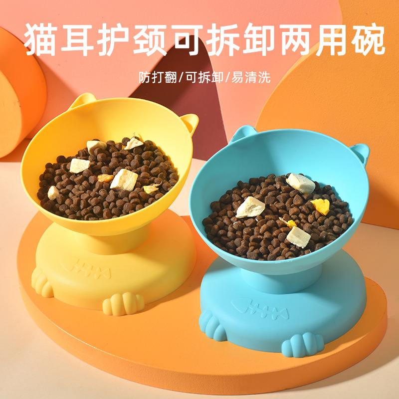 대용량 플라스틱 고양이 밥그릇, 고양이 귀 디자인, 탈부착 가능한 높은 받침대, 목 보호, 다용도 애완동물 밥그릇, 미끄럼 방지, 경사진 입구, 강아지 밥그릇스토어 가기