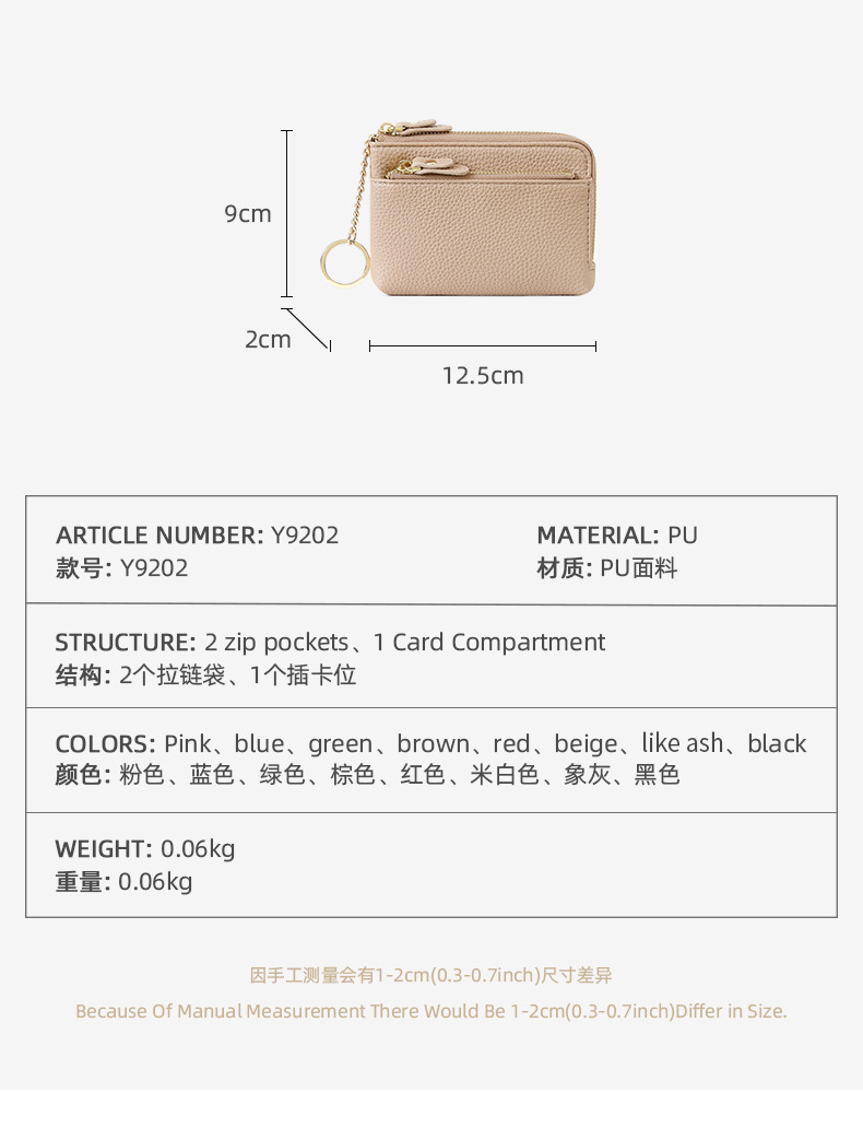 국경 간 Ins 귀여운 미니 가죽 동전 지갑 유럽과 미국 지퍼 PU 코인 키 체인 머니 백 핸드 카드 가방