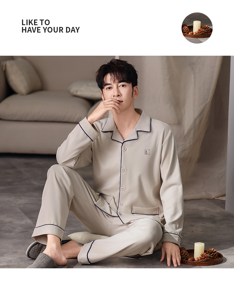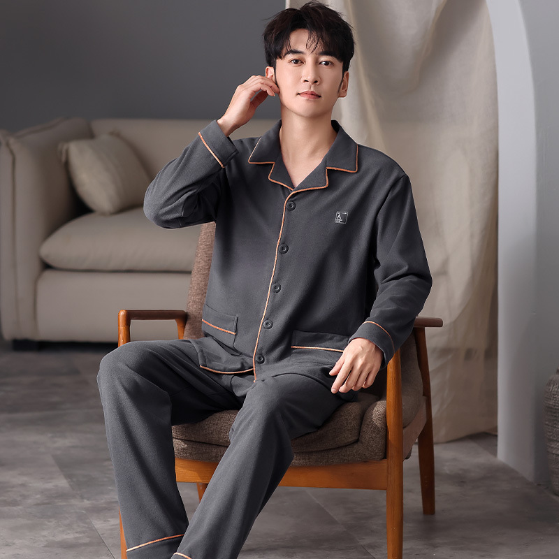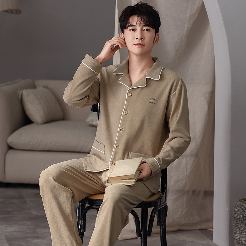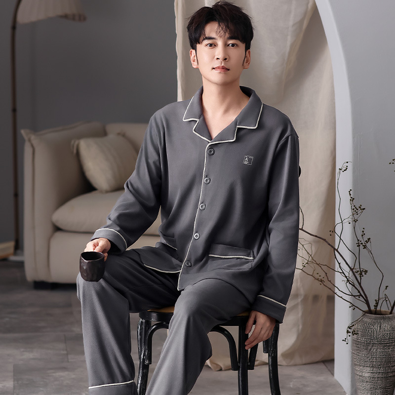 새로운 개발 잠옷 남자의 가을과 겨울 캐주얼 녹색 중년 플러스 사이즈 느슨한 옷깃 따뜻한 두꺼운 가정 옷 세트스토어 가기