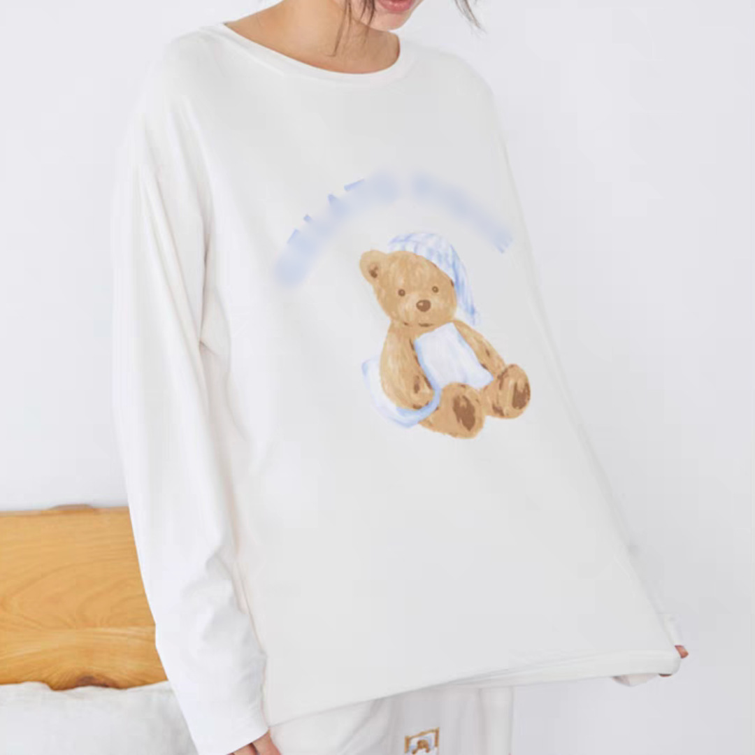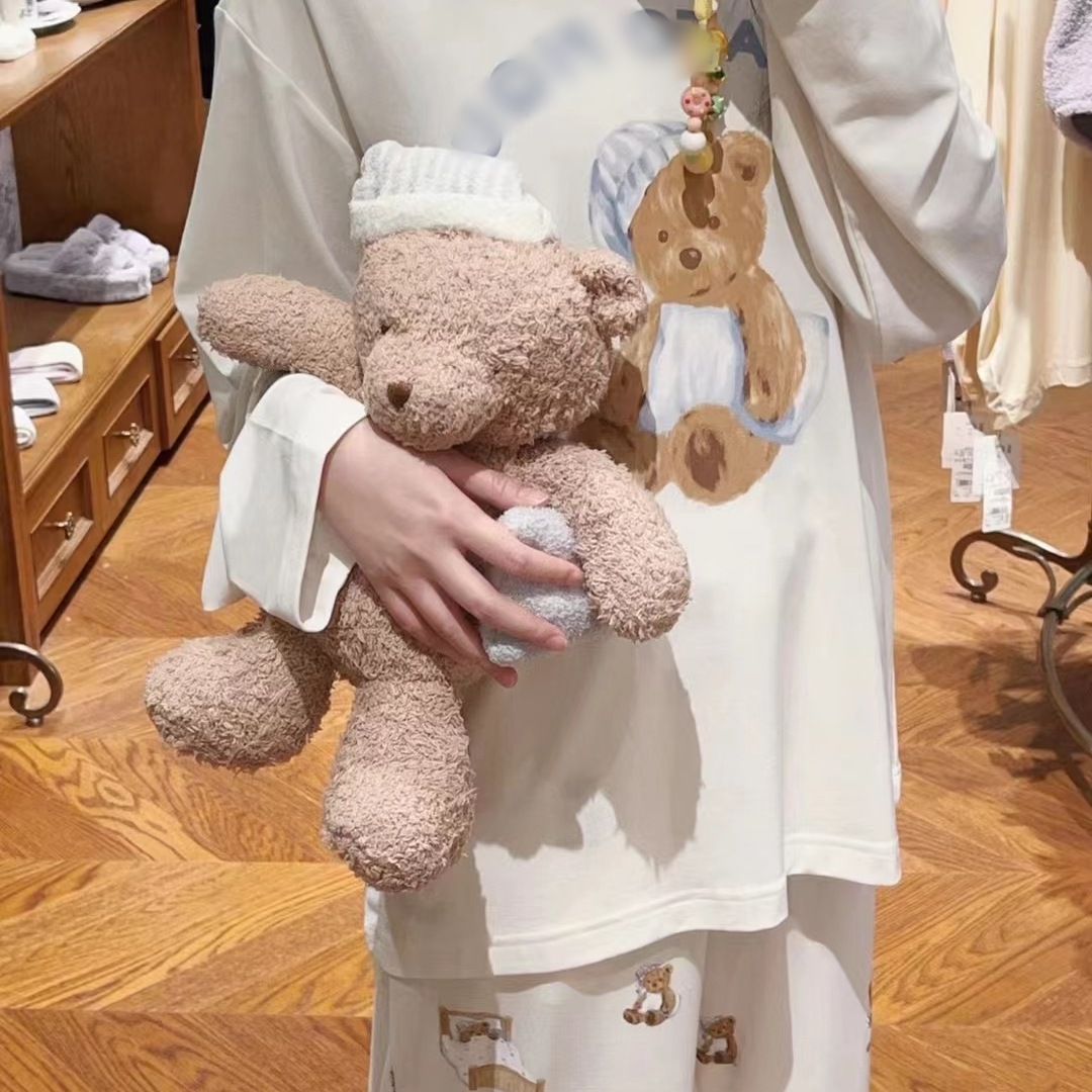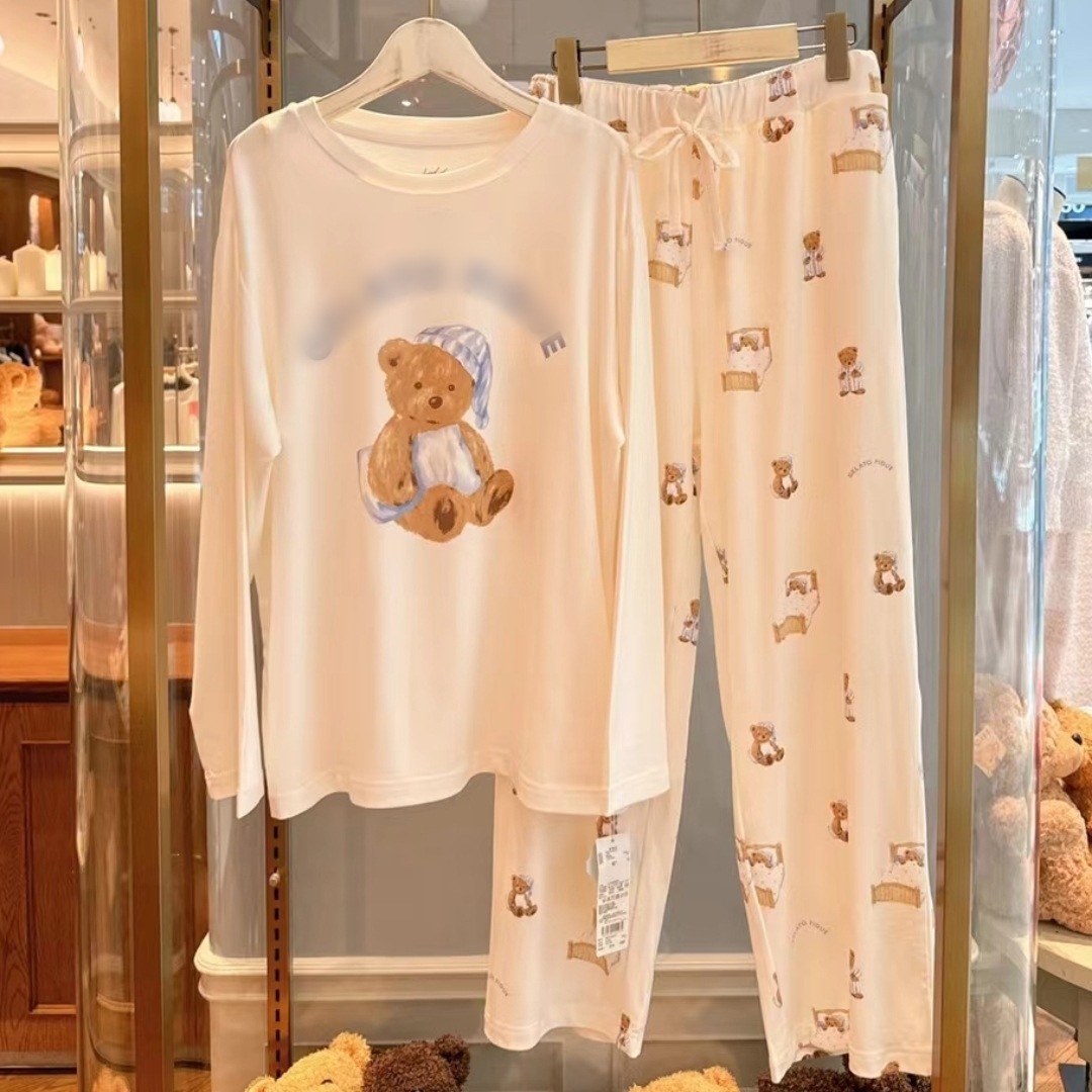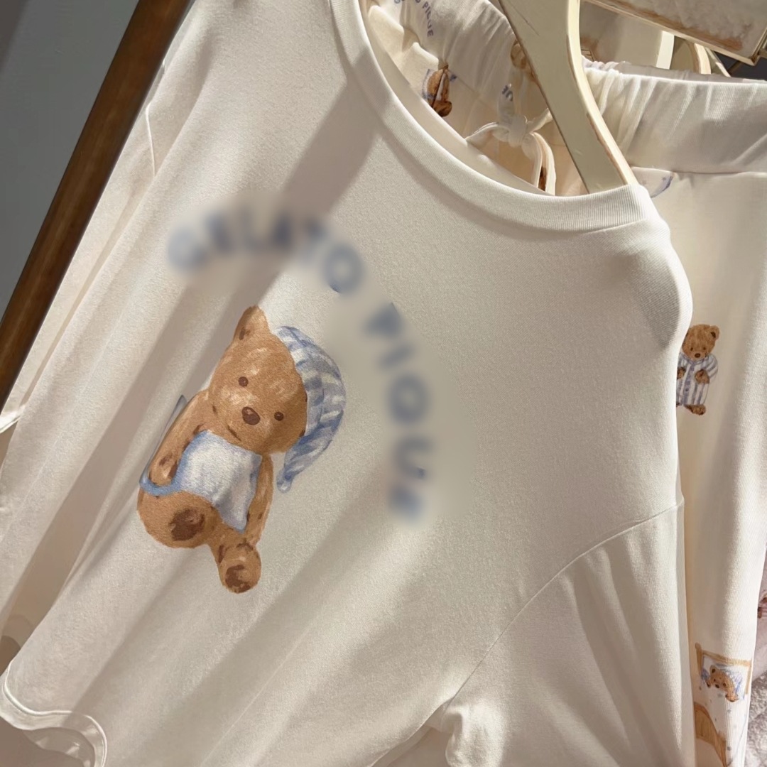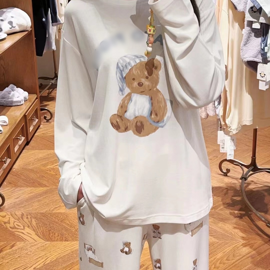 gp 잠옷 라벨 없는 부드러운 아이스크림 남성용 만화 곰 프린트 라운드넥 긴바지 세트 남성용 잠옷 홈웨어스토어 가기