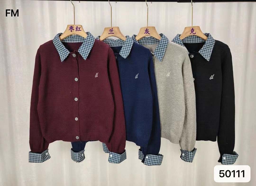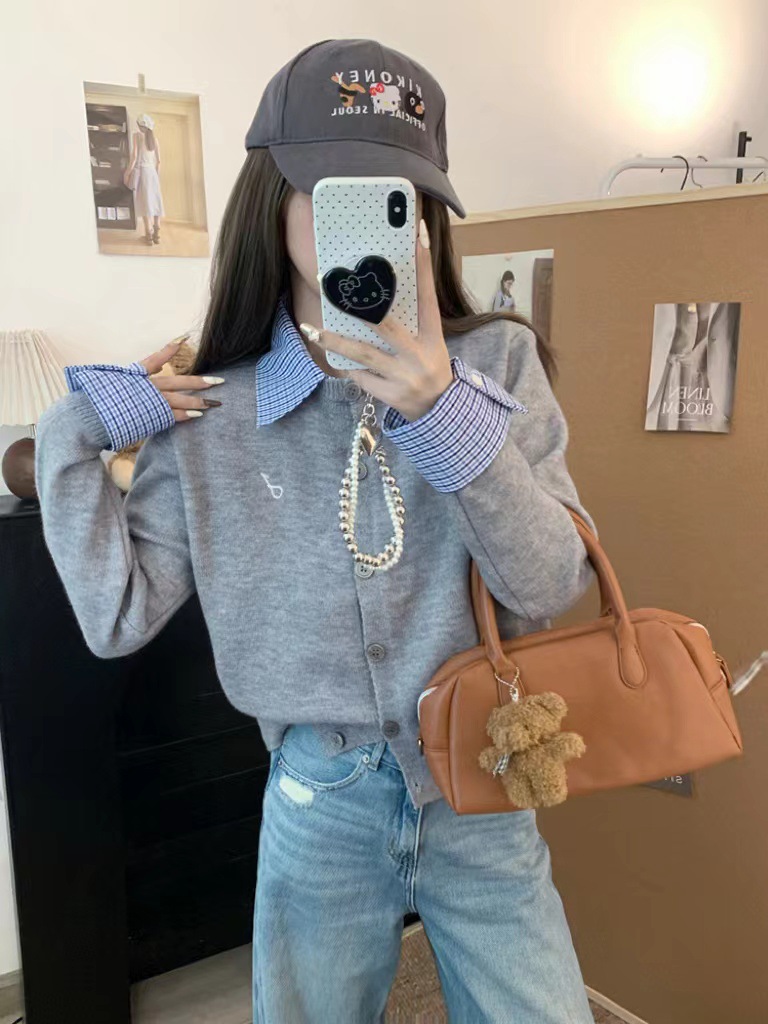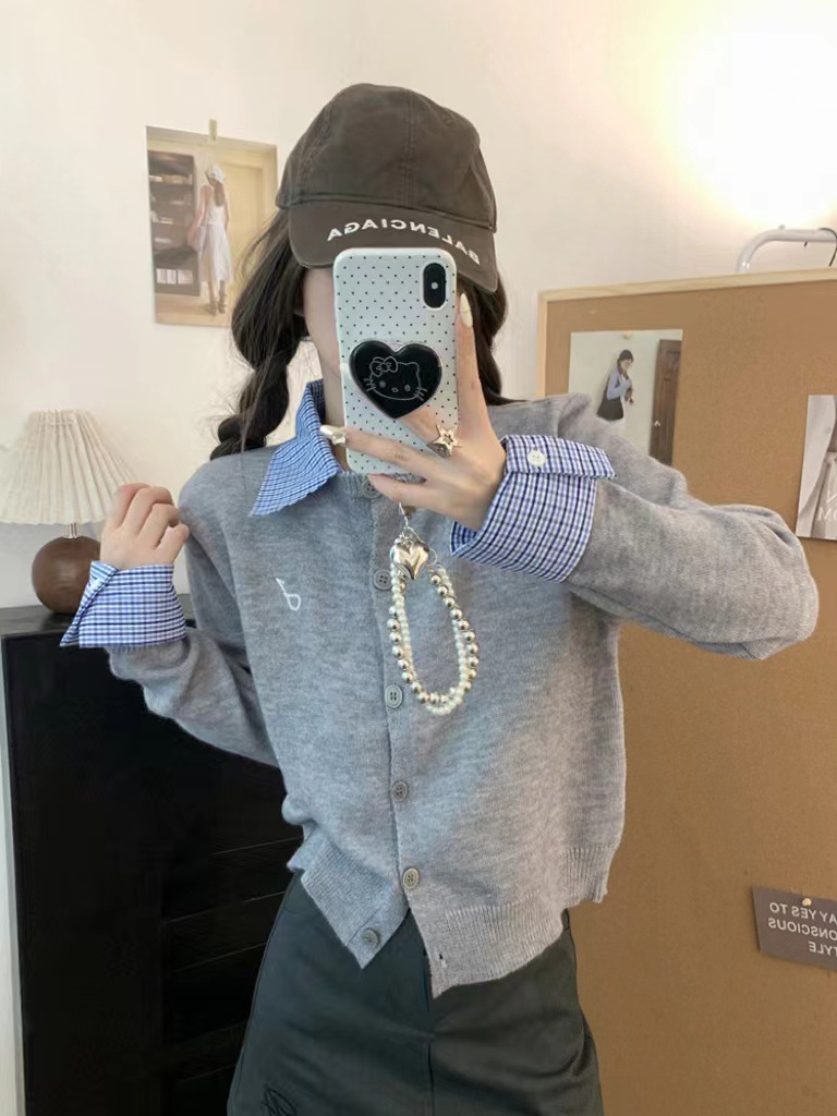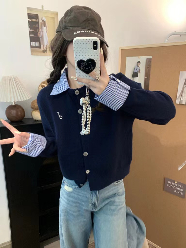 대학 스타일 가짜 투피스 통근 카디건 코트 여성 뜨거운 소녀 이른 가을 새 한국 스타일 아름다운 짧은 탑 착용