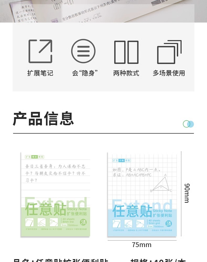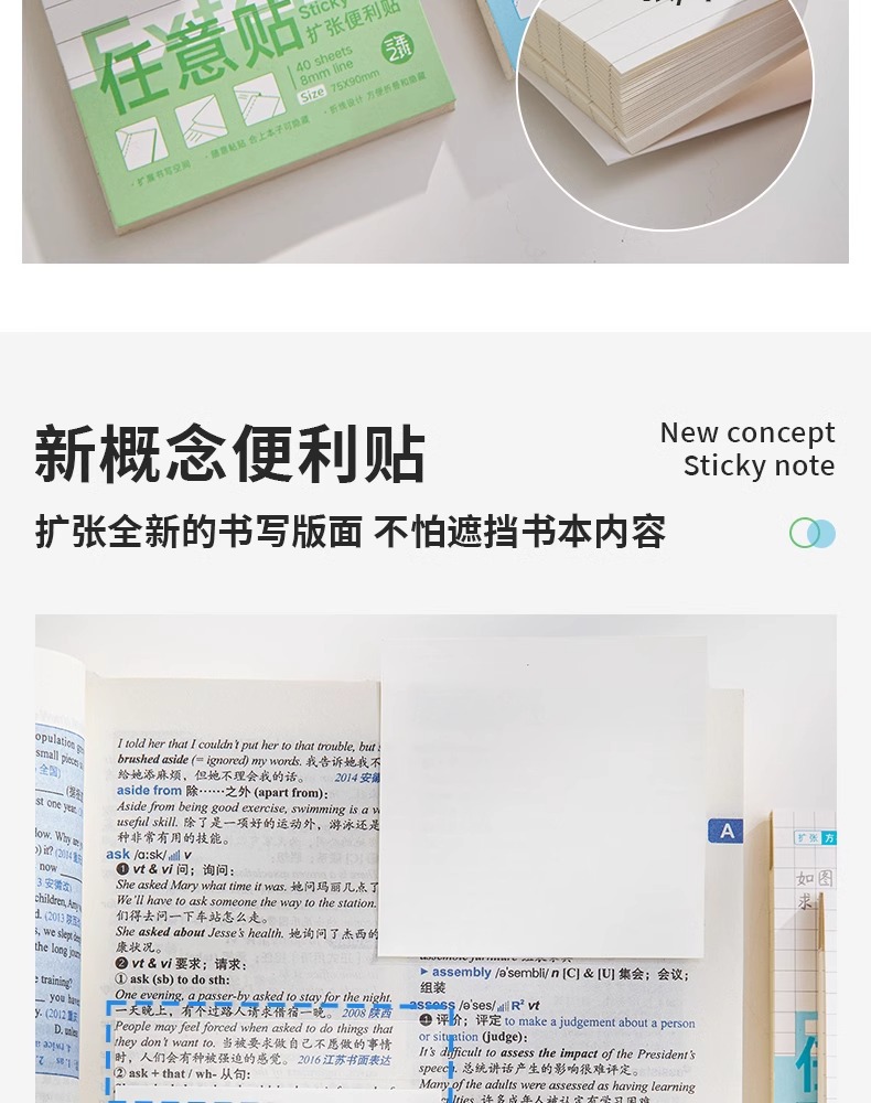 확장 포스트잇 노트 접이식 스티커 확장 스티커 학생 펜 쓰기 빠른 건조 잘못된 노트 스티커스토어 가기
