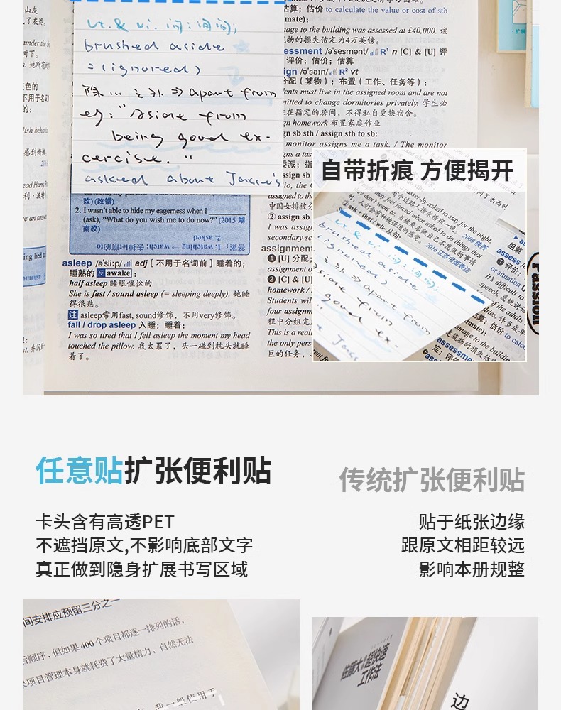 확장 포스트잇 노트 접이식 스티커 확장 스티커 학생 펜 쓰기 빠른 건조 잘못된 노트 스티커