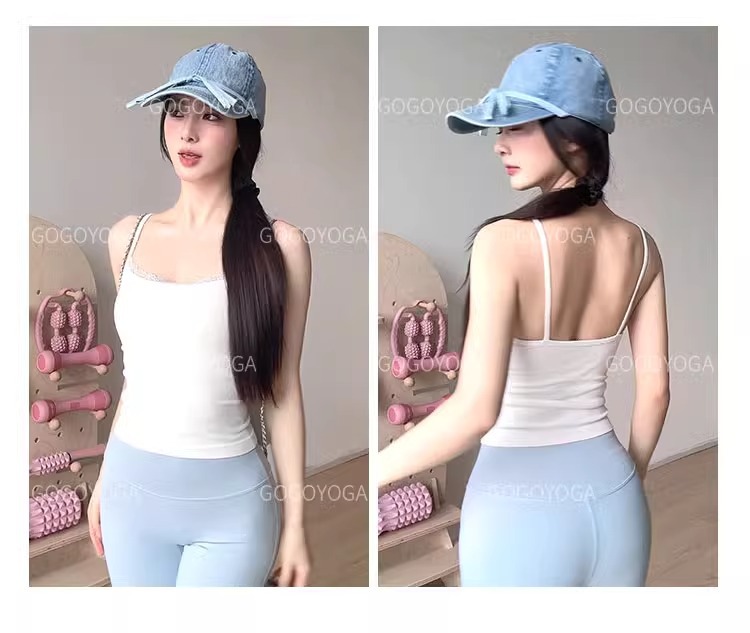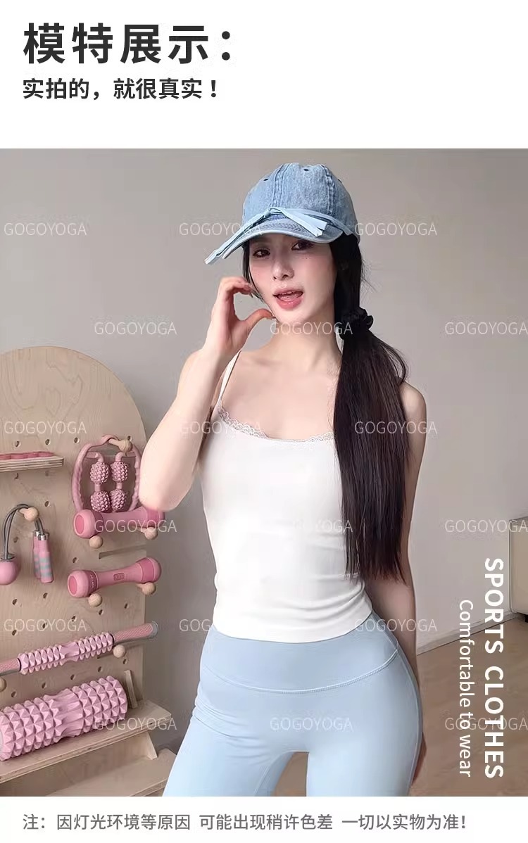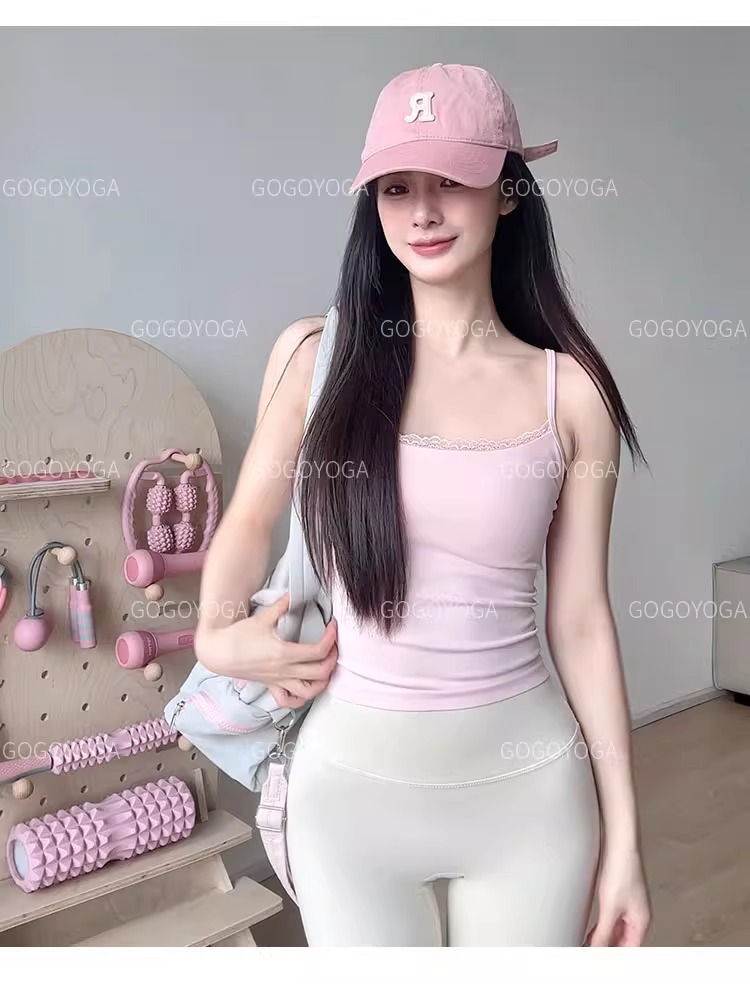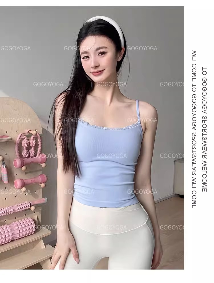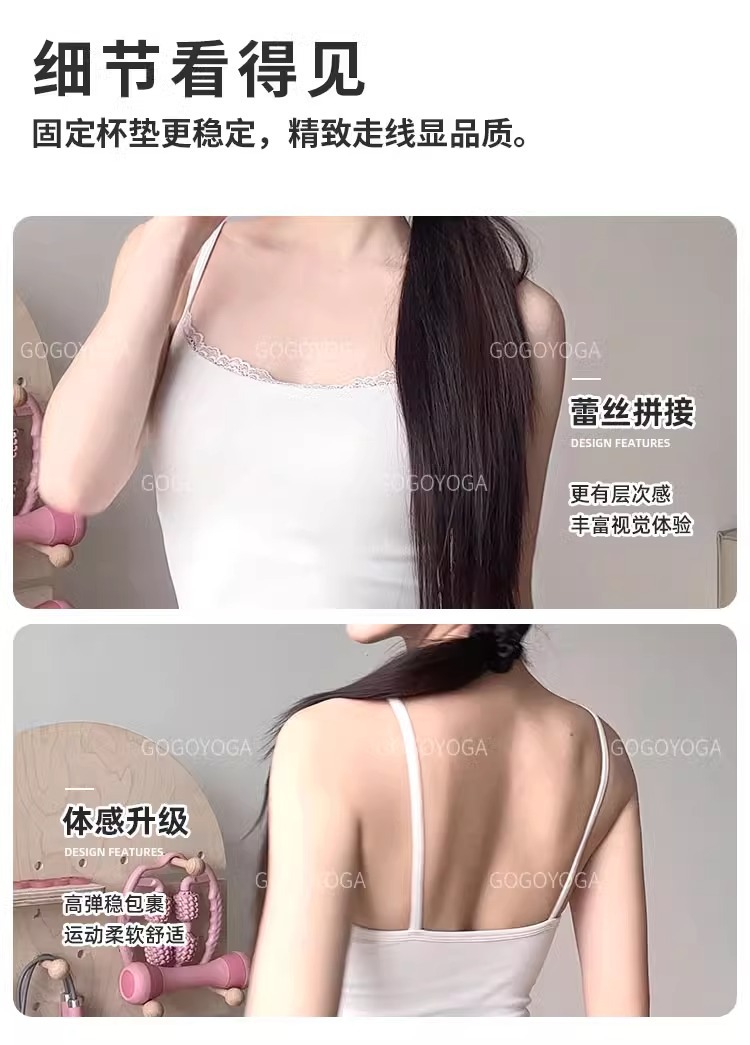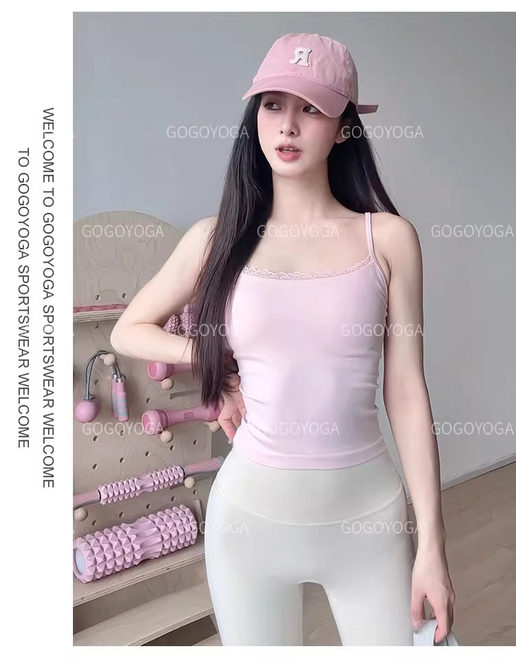 레이스 바느질 요가 조끼 여성의 얇은 어깨 벨트 통합 가슴 패드 속옷 슬링 원활한 스포츠 피트니스 요가 브래지어