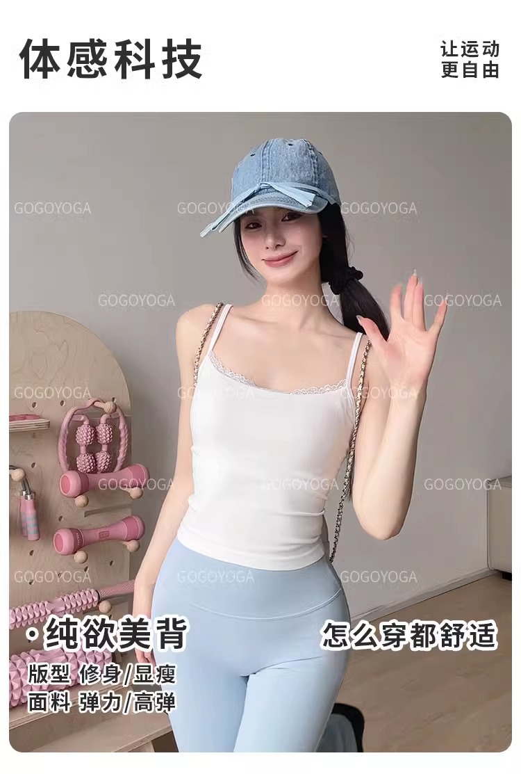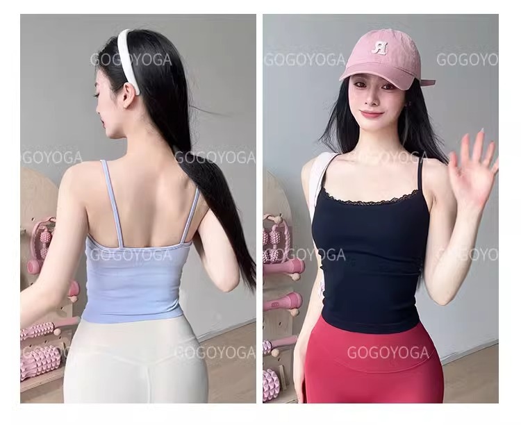 레이스 바느질 요가 조끼 여성의 얇은 어깨 벨트 통합 가슴 패드 속옷 슬링 원활한 스포츠 피트니스 요가 브래지어스토어 가기