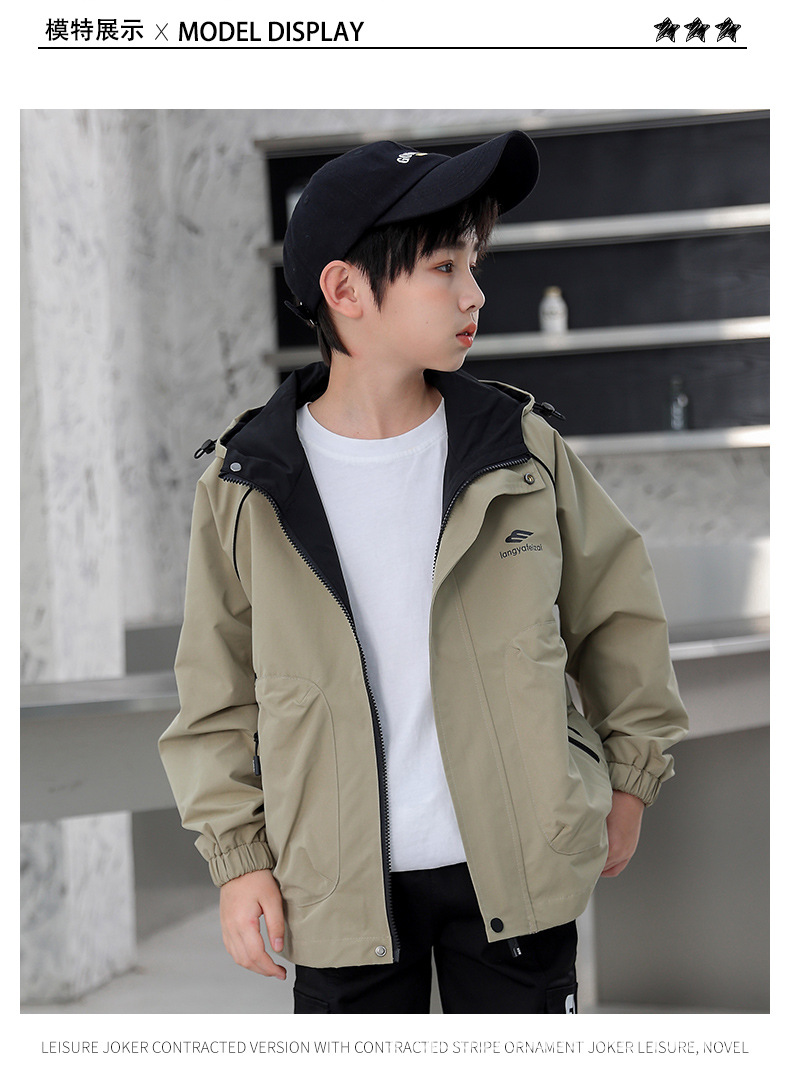 소년 코트 2025 봄 신작 아동 코트 남성 후드 재킷 중대형 아동 인기 윈드 브레이커 탑
