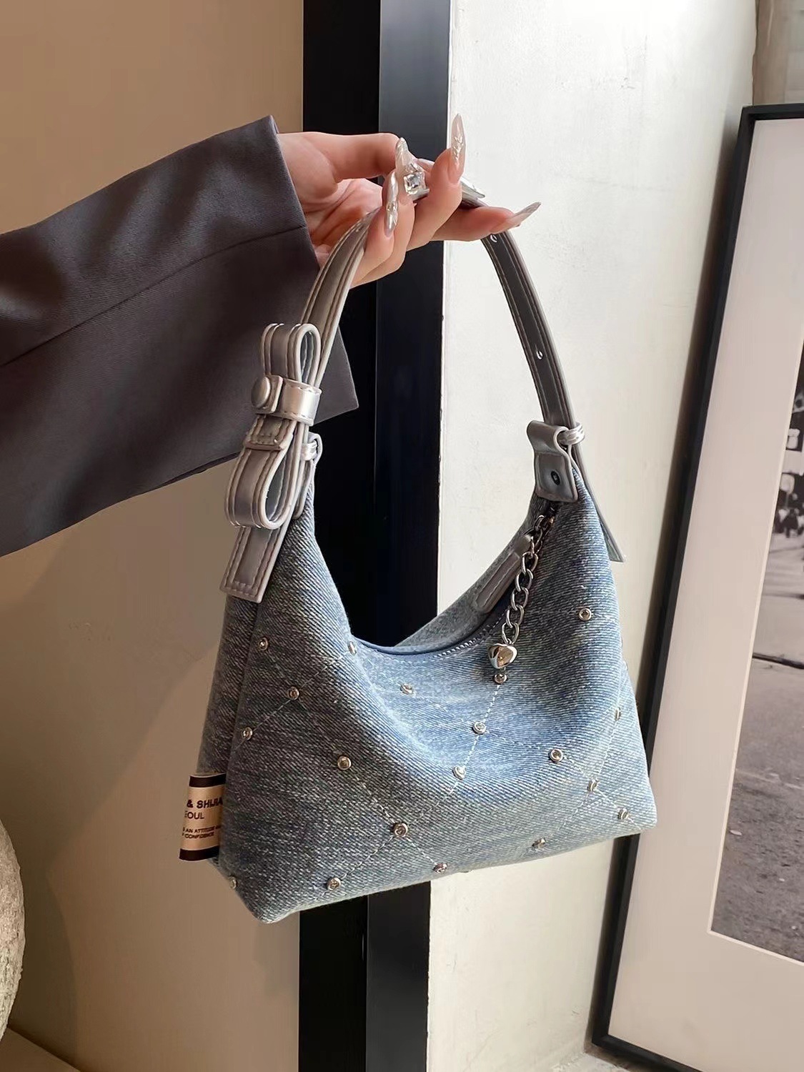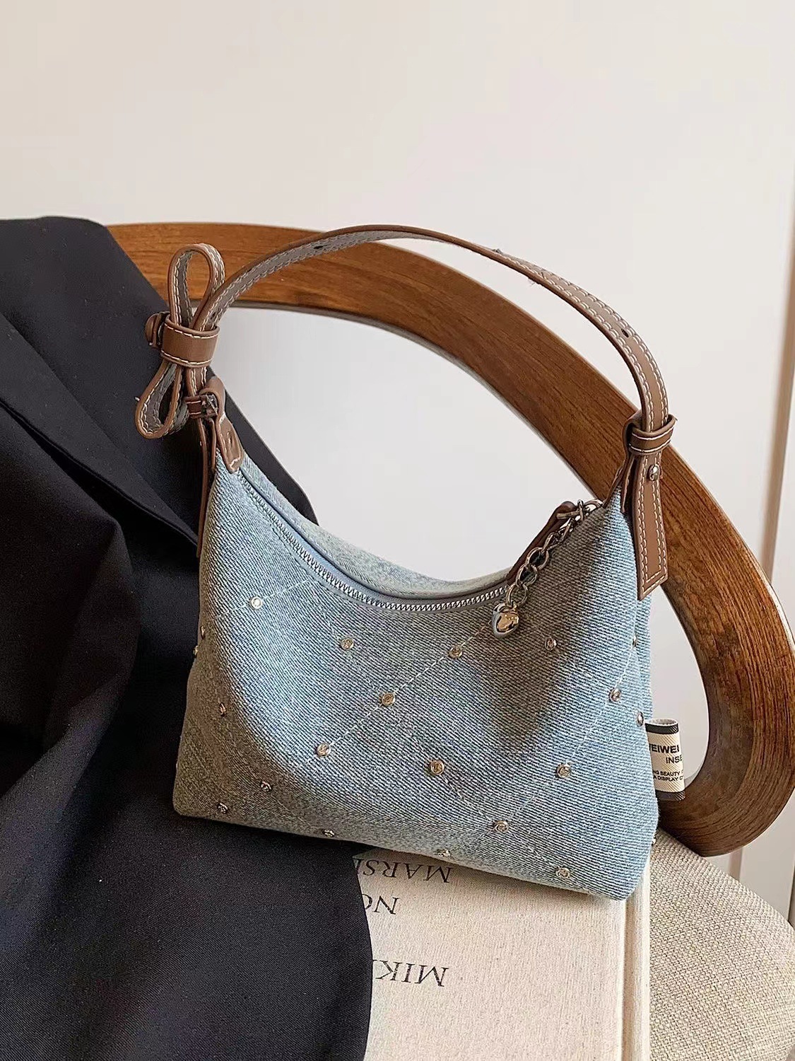 여성을 위한 틈새 디자인 데님 겨드랑이 가방 2025 새로운 트렌디 패션 다용도 싱글 숄더 하이엔드 휴대용 버킷 백스토어 가기