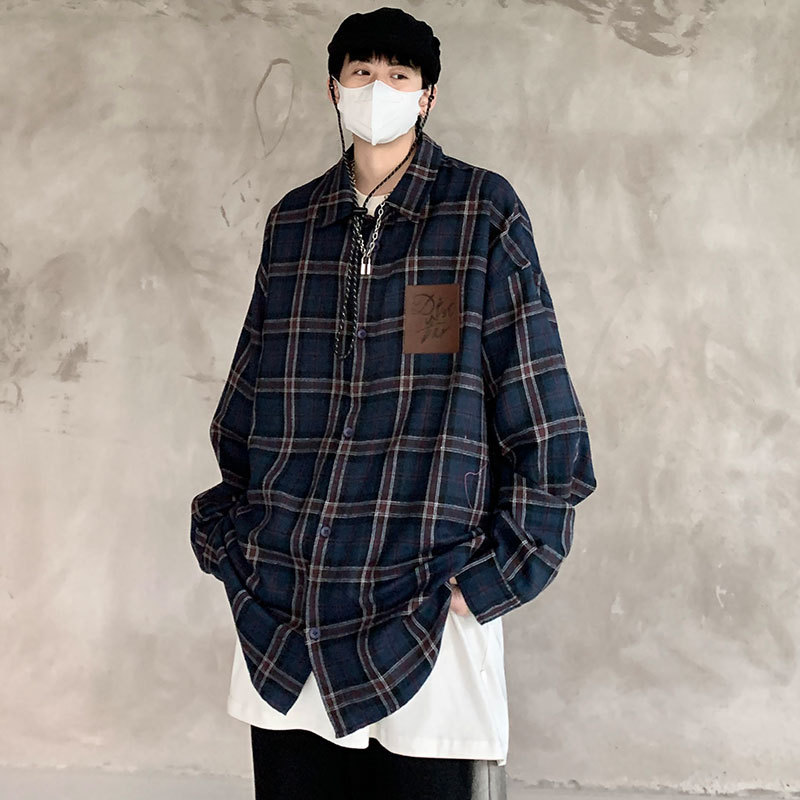 격자 무늬 셔츠 남성 봄 일본 하이 스트리트 인 트렌디 브랜드 캐주얼 심플 레트로 다용도 라펠 셔츠 카디건스토어 가기