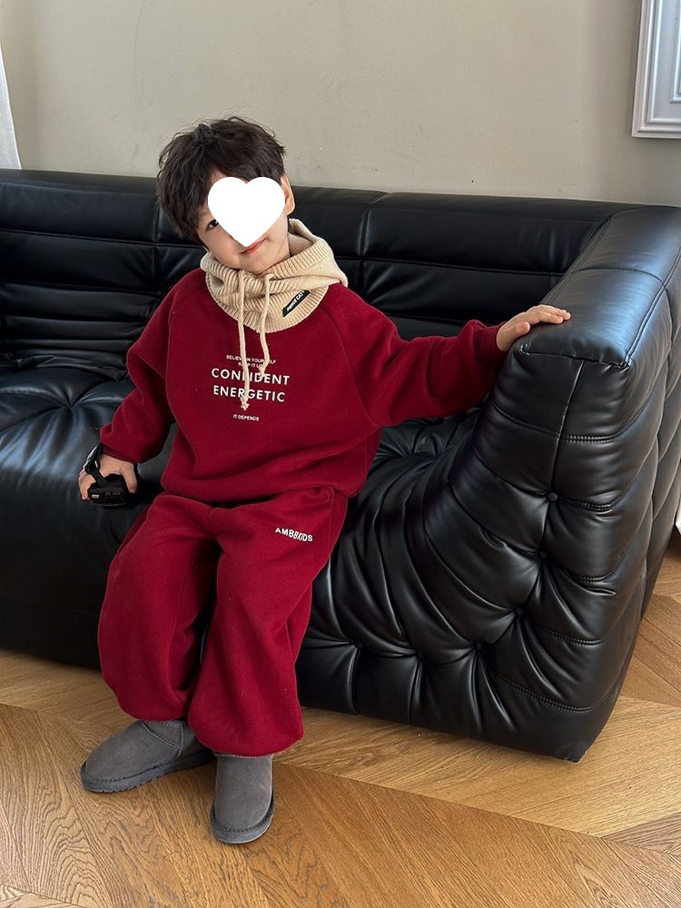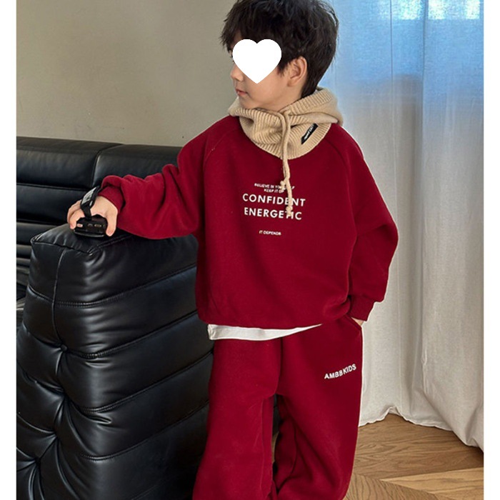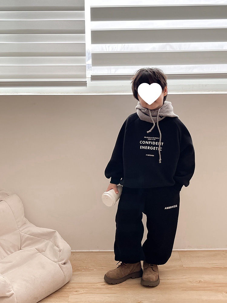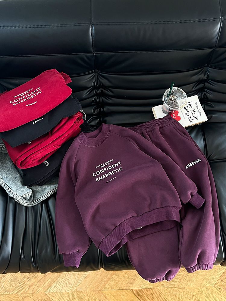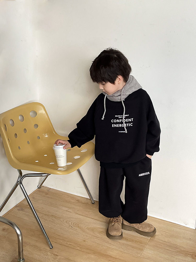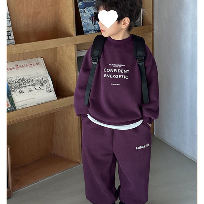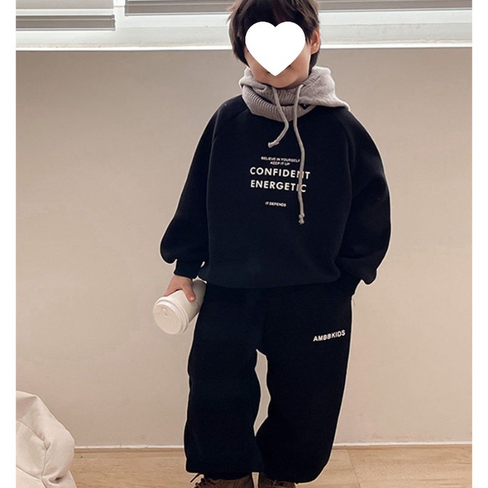 남학생 기모 두꺼운 편지 중 · 대학생을위한 스포츠 세트 가을 새로운 솔리드 컬러 올 매치 패션 땀 투피스 세트