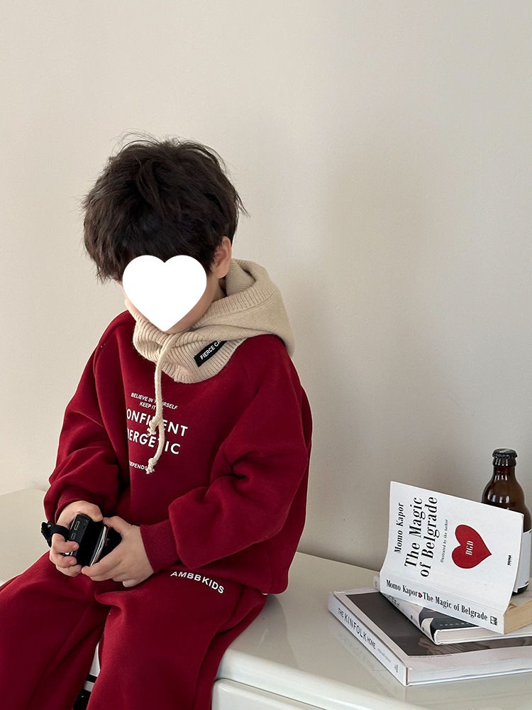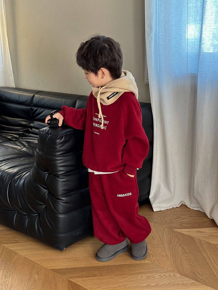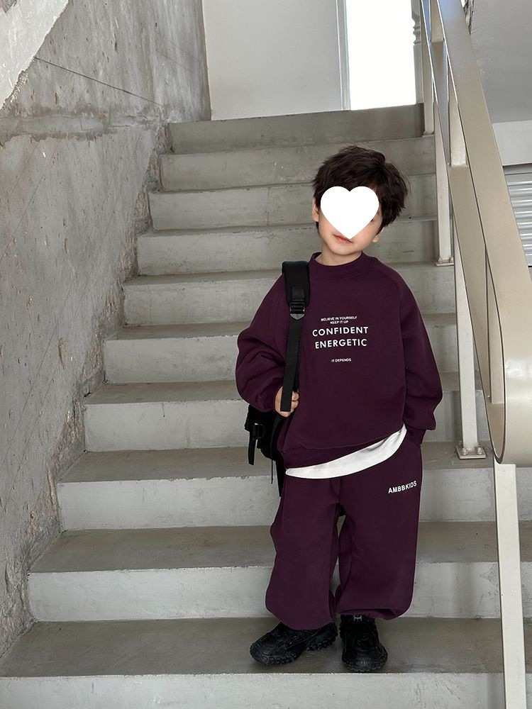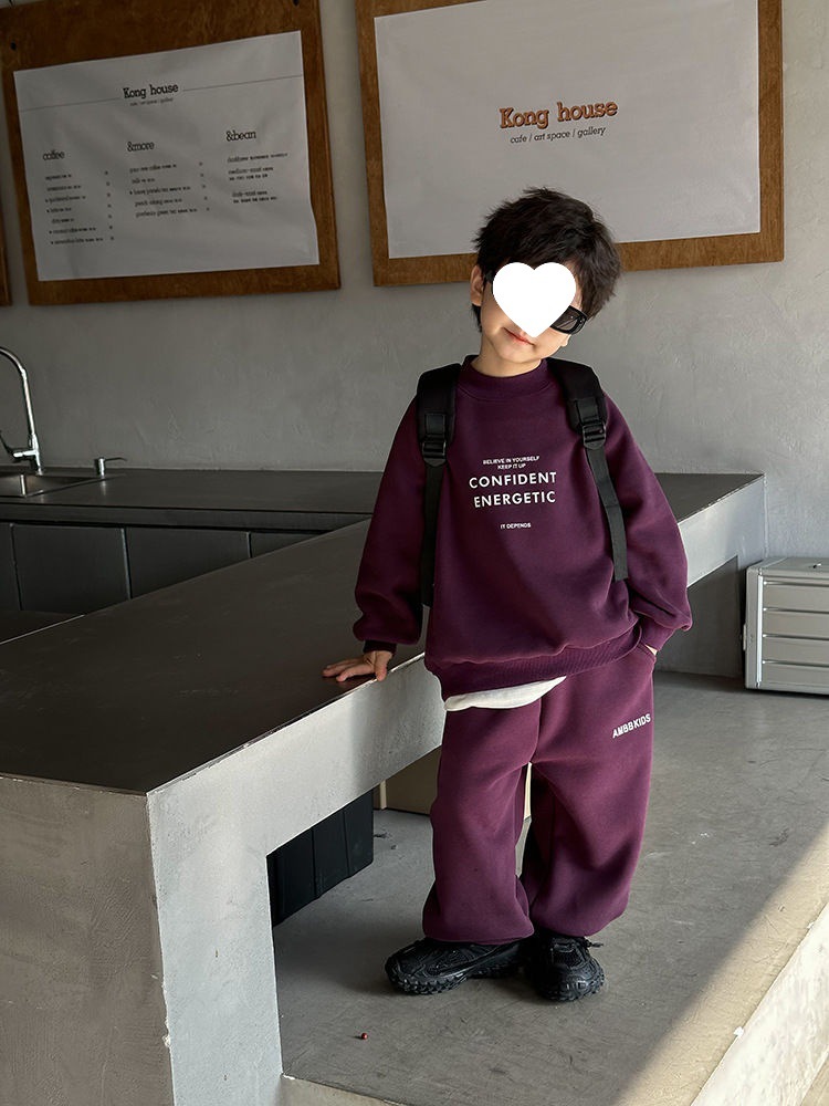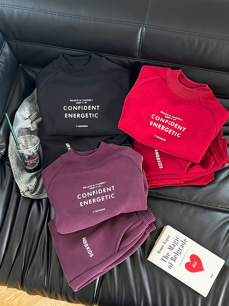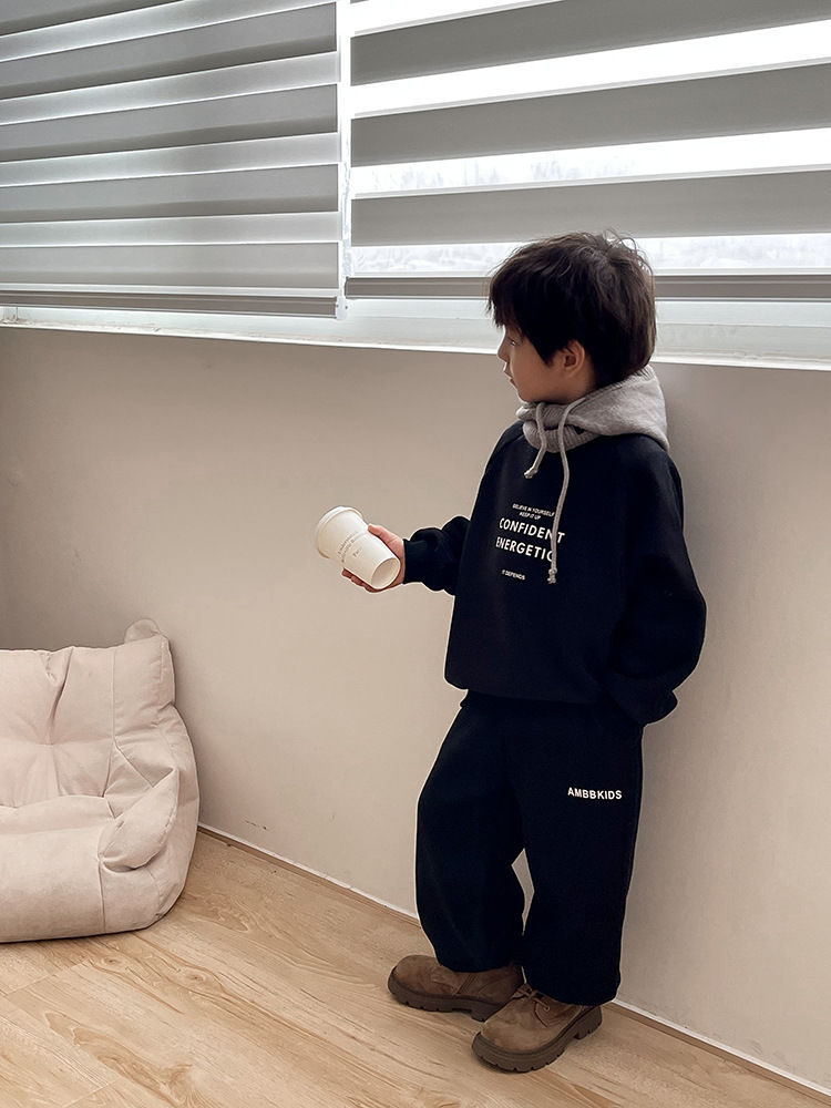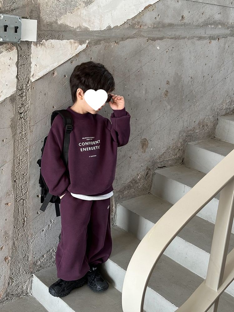 남학생 기모 두꺼운 편지 중 · 대학생을위한 스포츠 세트 가을 새로운 솔리드 컬러 올 매치 패션 땀 투피스 세트