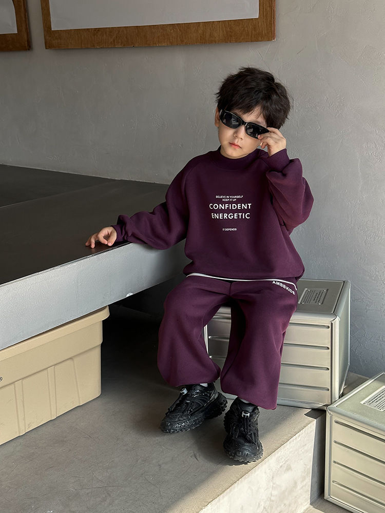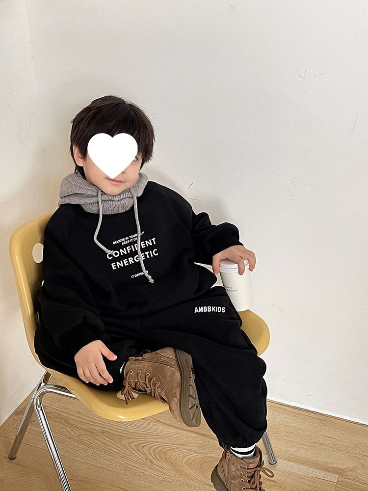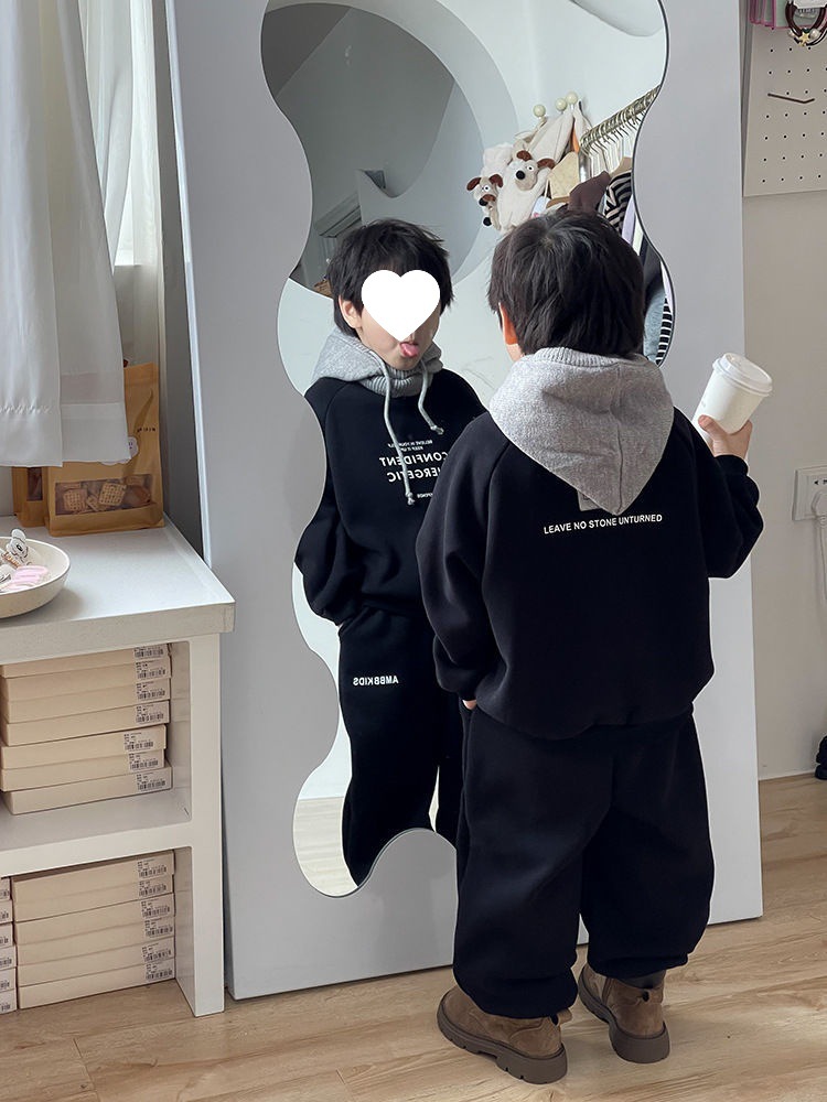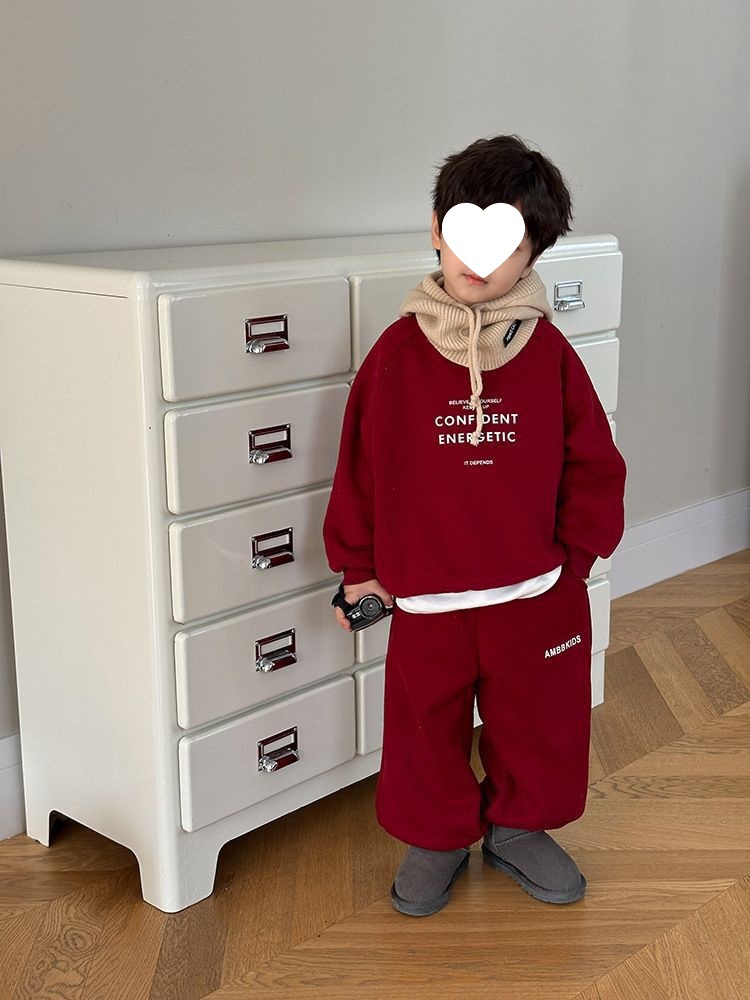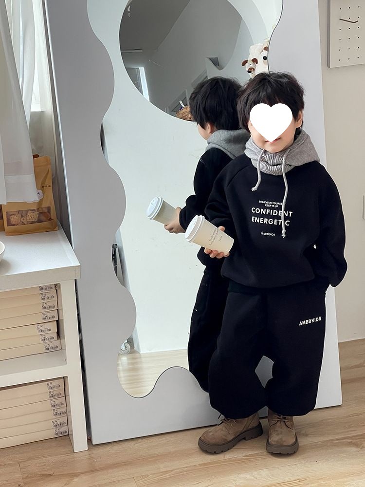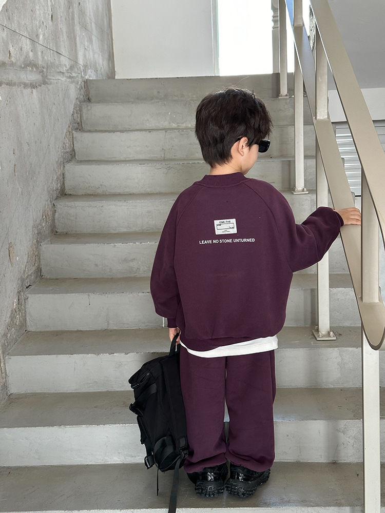 남학생 기모 두꺼운 편지 중 · 대학생을위한 스포츠 세트 가을 새로운 솔리드 컬러 올 매치 패션 땀 투피스 세트